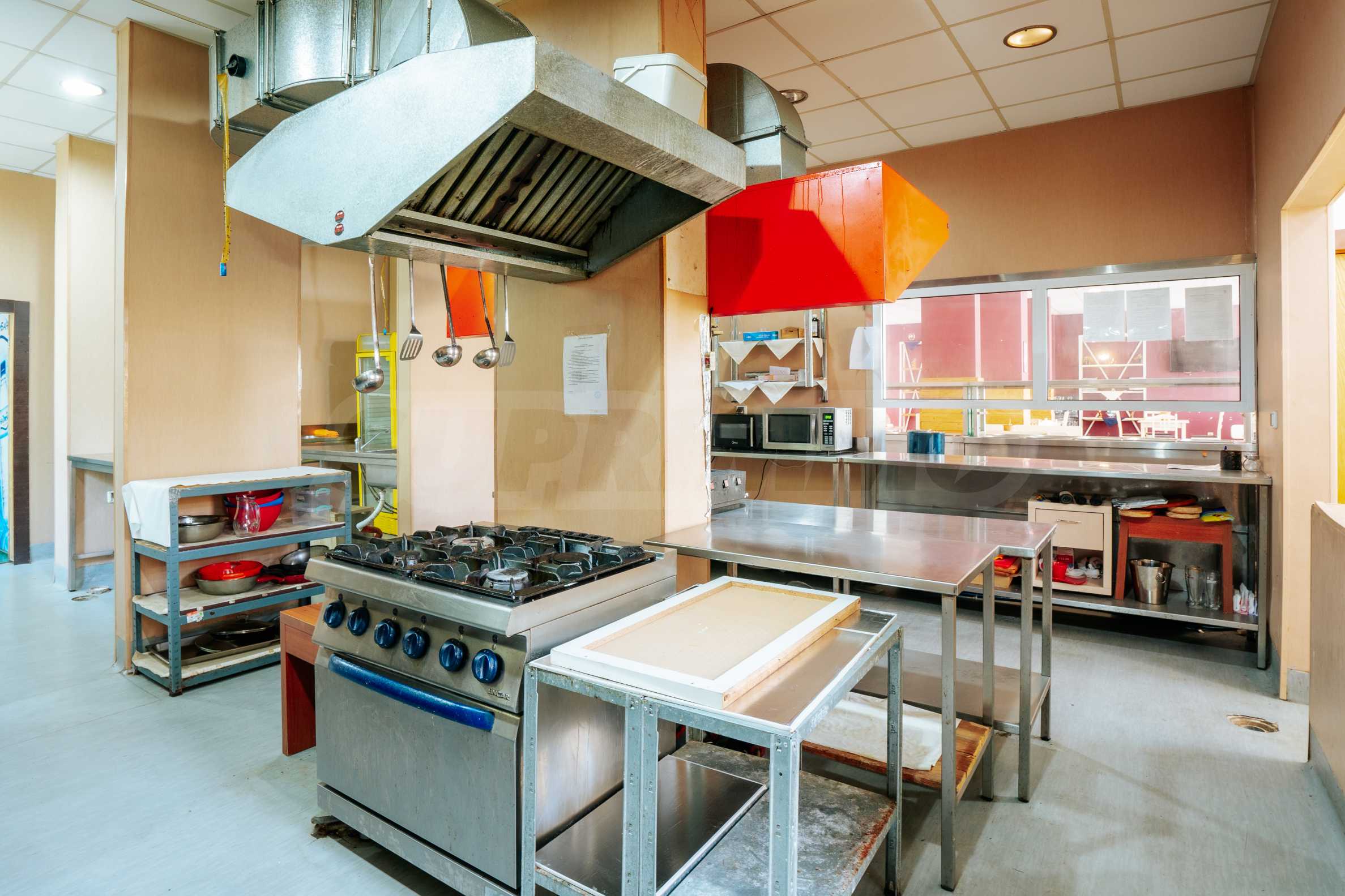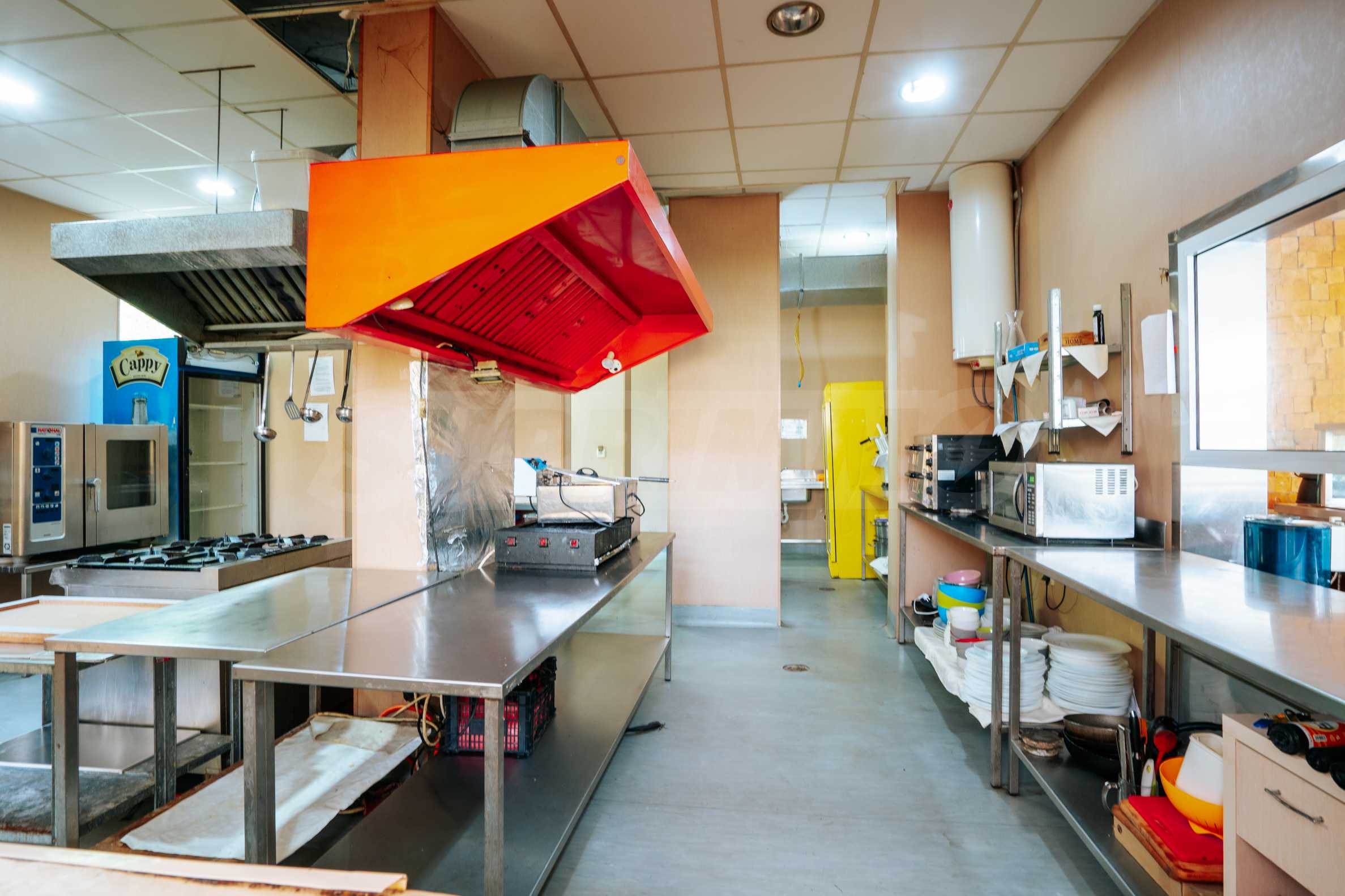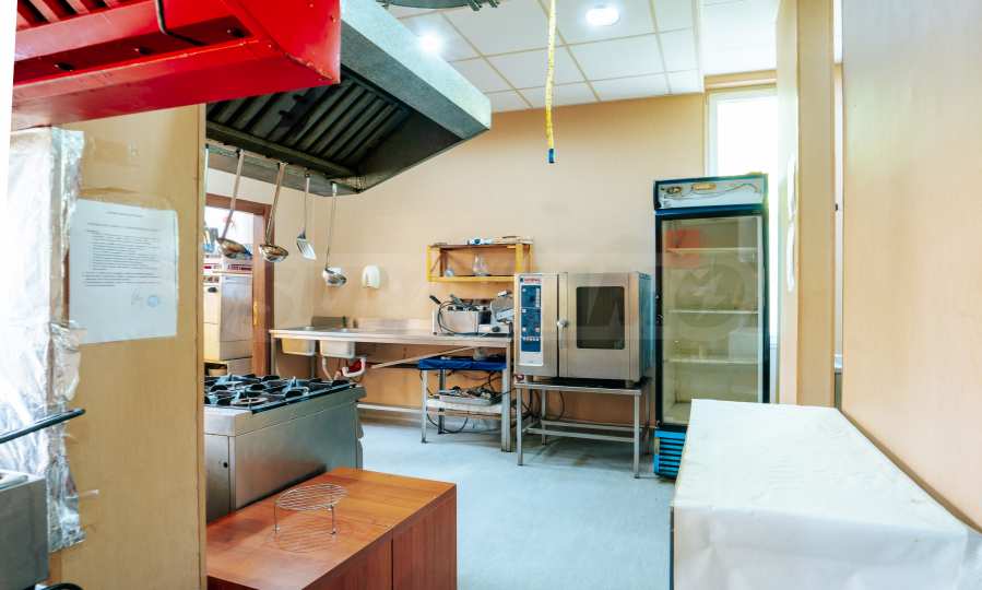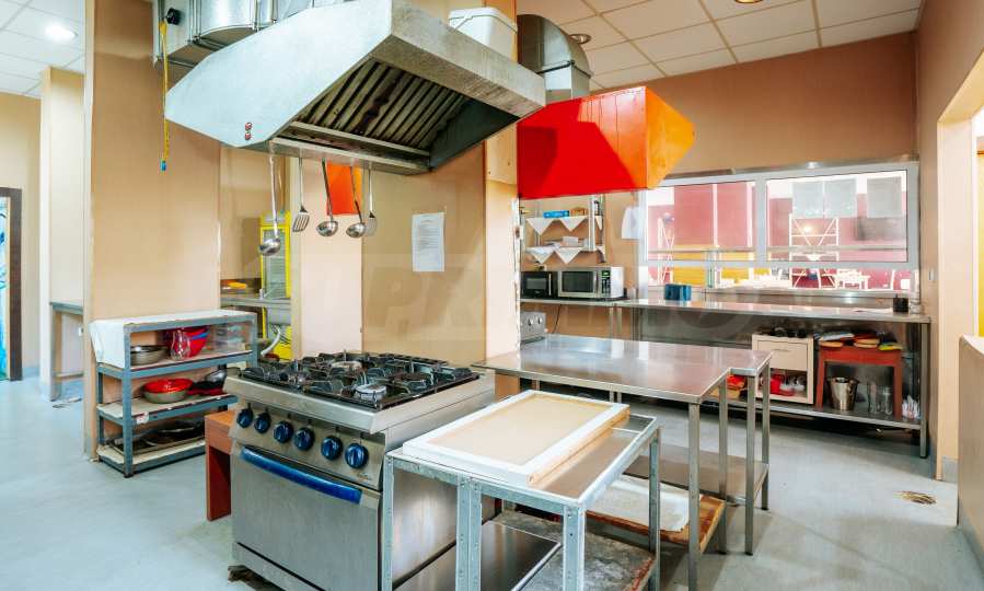 В ресторане есть кухня и служебные помещения площадью 307,28 м2, и это без учета террас и открытых площадей для использования - сад площадью 100 м2, покрытый беседкой.