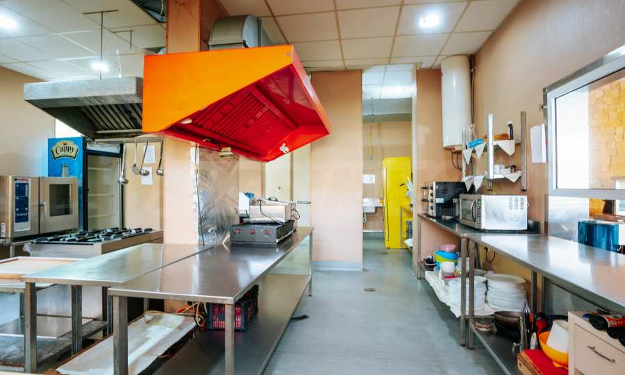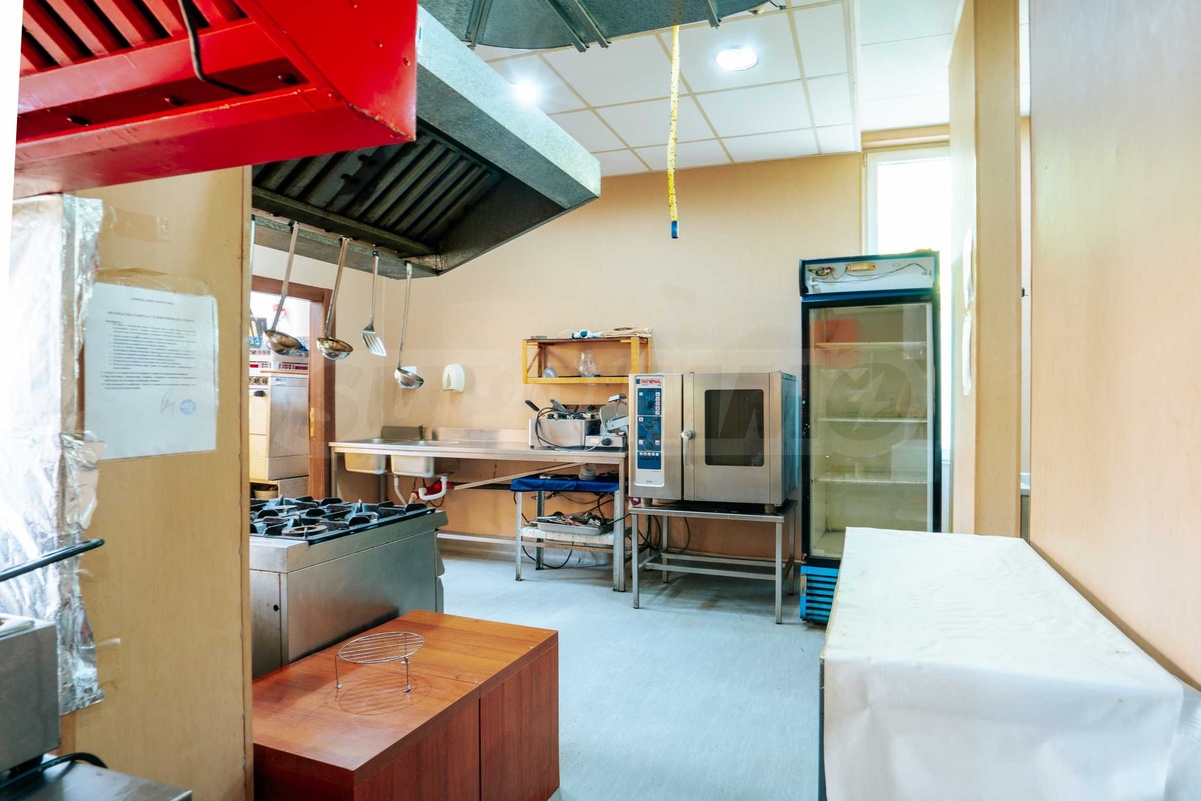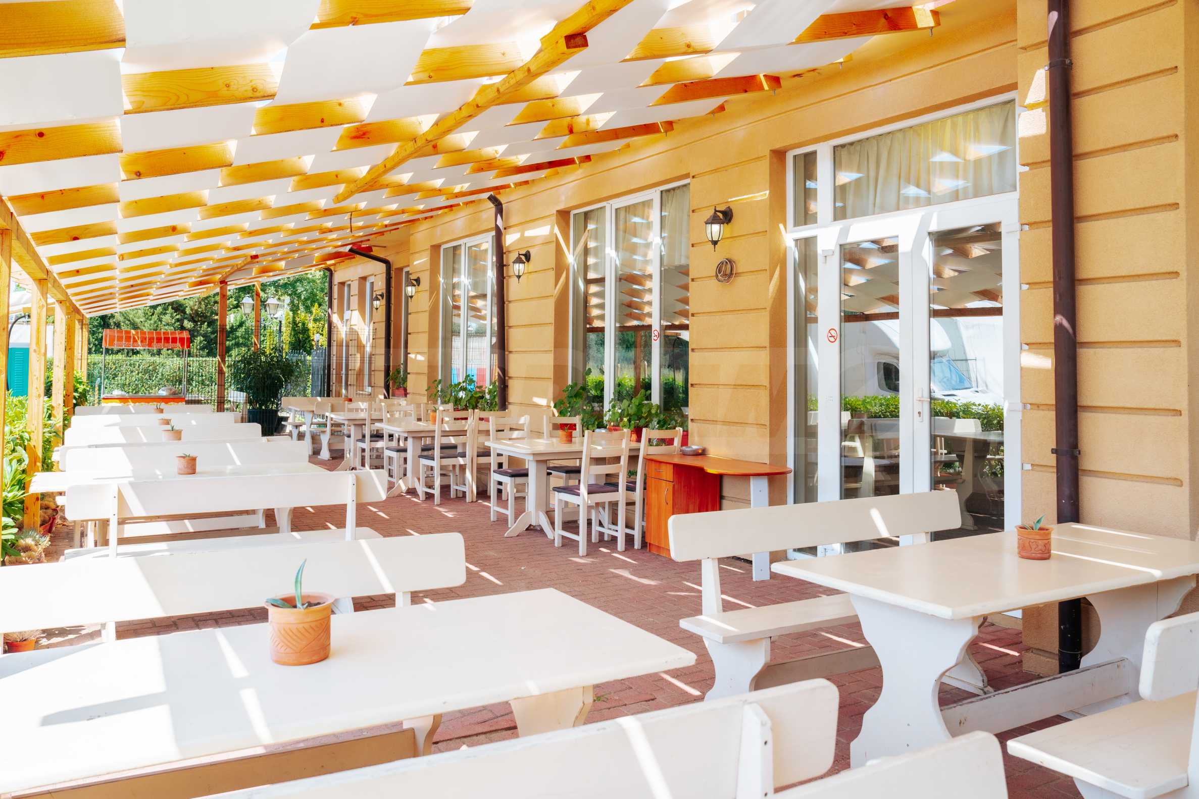 В ресторане есть кухня и служебные помещения площадью 307,28 м2, и это без учета террас и открытых площадей для использования - сад площадью 100 м2, покрытый беседкой.