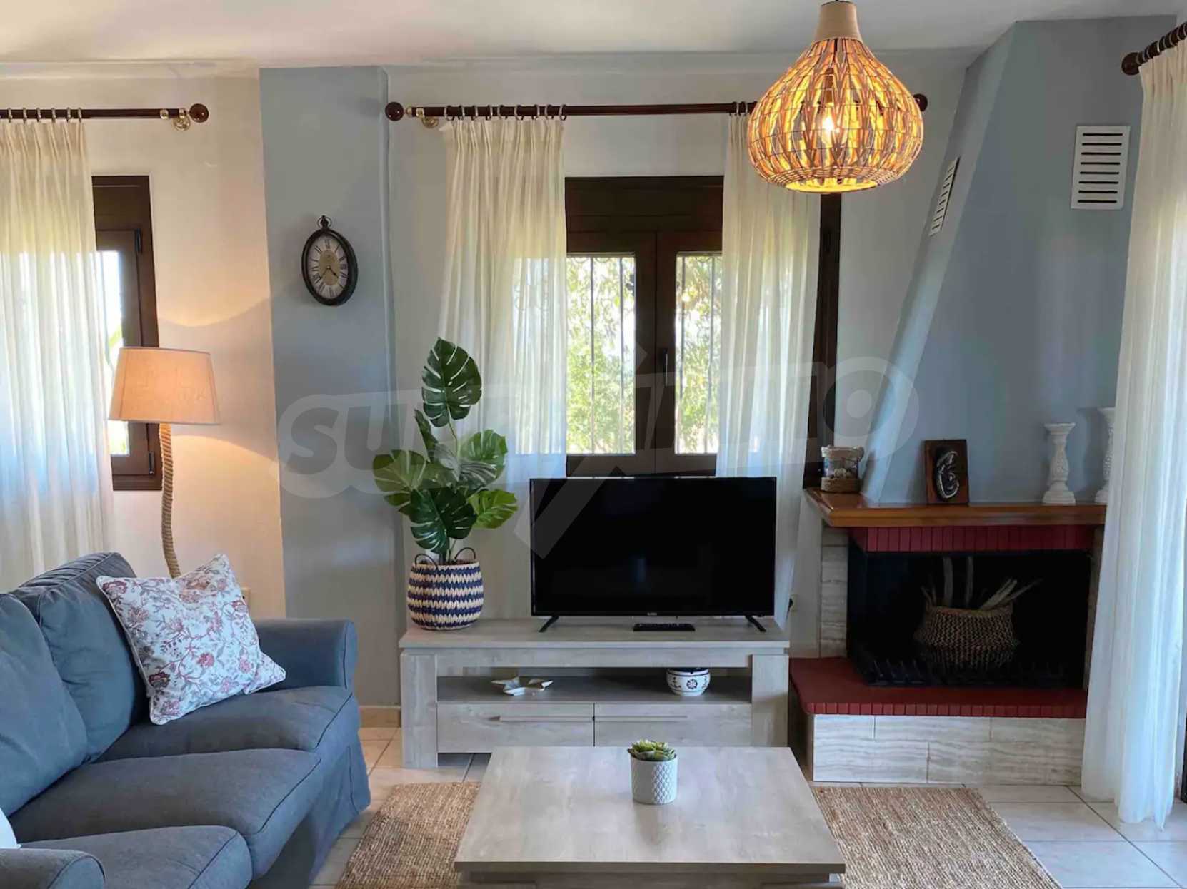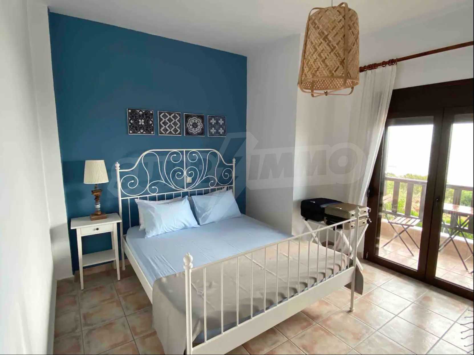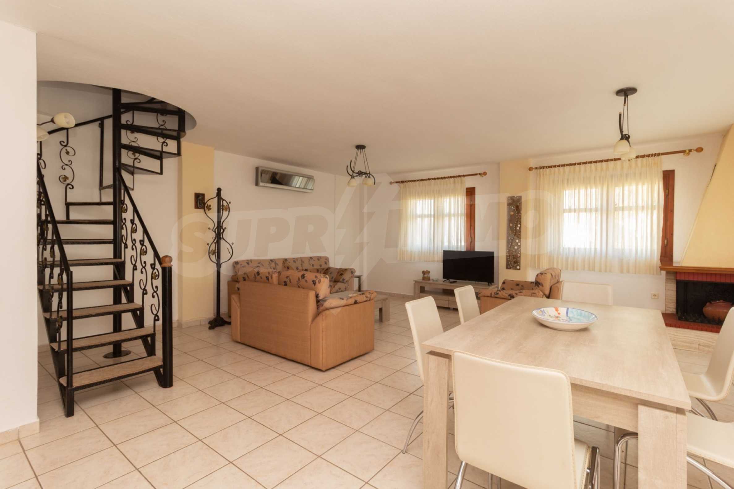 Продается трехэтажный частный дом площадью 150 кв.м в комплексе состоящем из 6 коттеджей с прекрасным видом на море с земельным участком 4200 кв.м. Дом состоит из 5 комфортабельных спален, 3 ванных комнат, просторной гостиной с камином и кухни. На территории есть парковочное место, барбекю, бронированную дверь, автоматический полив газона, территория комплекса огорожена.