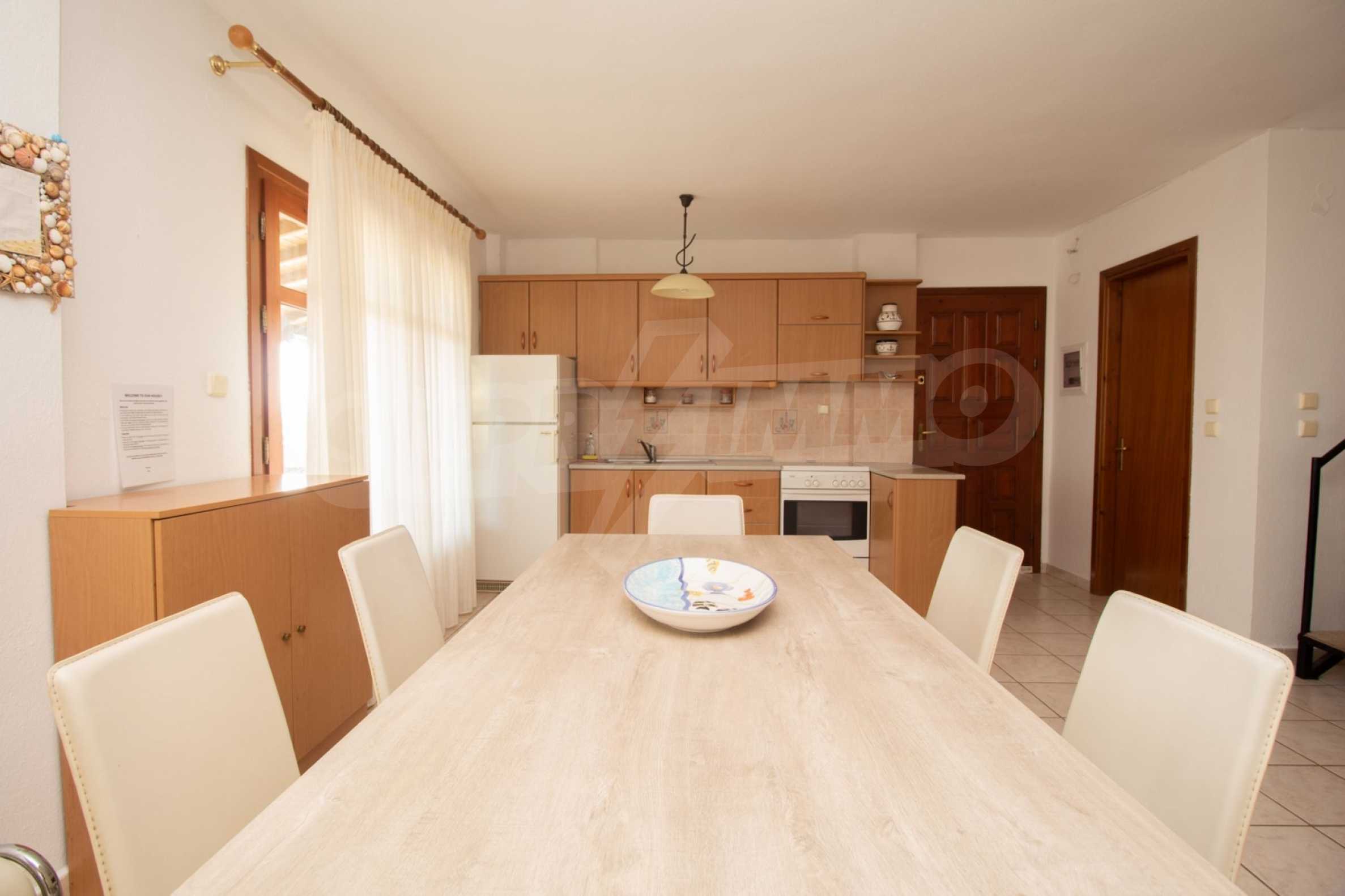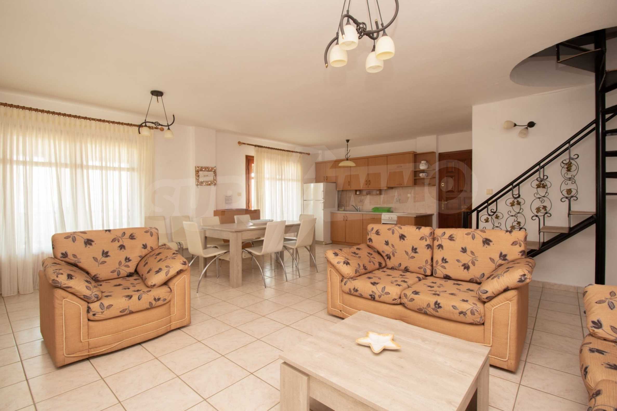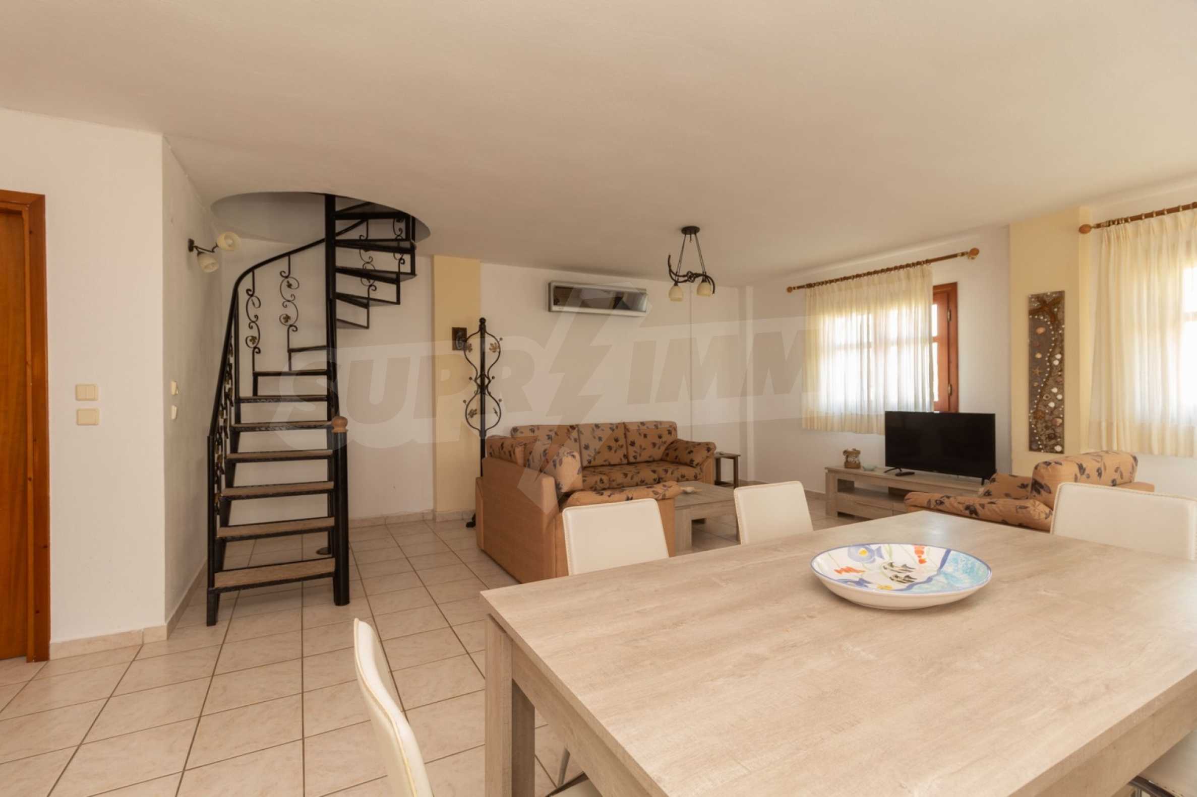 Продается трехэтажный частный дом площадью 150 кв.м в комплексе состоящем из 6 коттеджей с прекрасным видом на море с земельным участком 4200 кв.м. Дом состоит из 5 комфортабельных спален, 3 ванных комнат, просторной гостиной с камином и кухни. На территории есть парковочное место, барбекю, бронированную дверь, автоматический полив газона, территория комплекса огорожена.