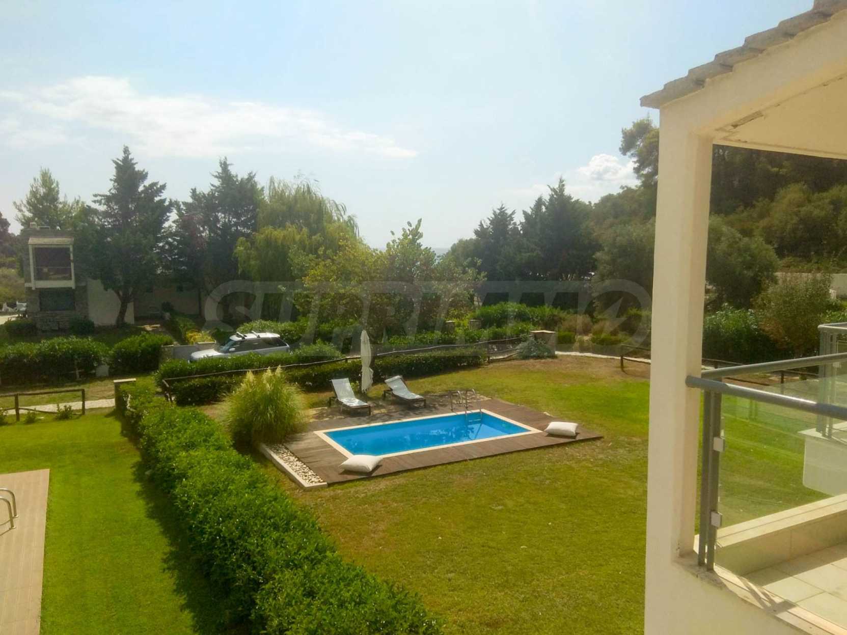 Озелененные площади и бассейн поддерживаются садовником. Дом полностью охраняется бронированной входной дверью и системой безопасности.