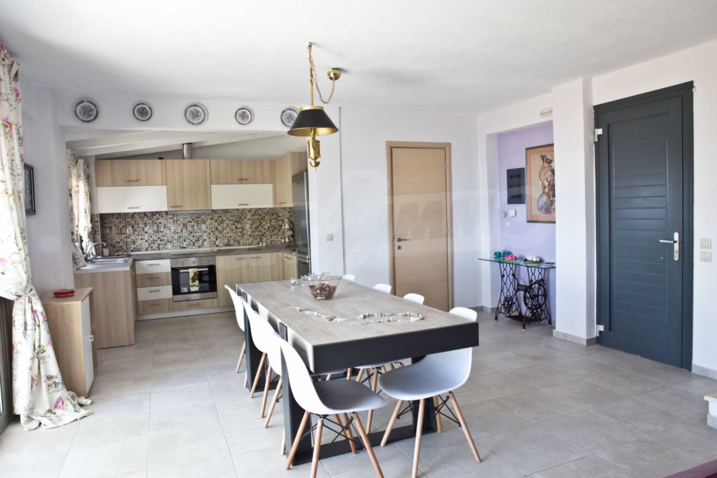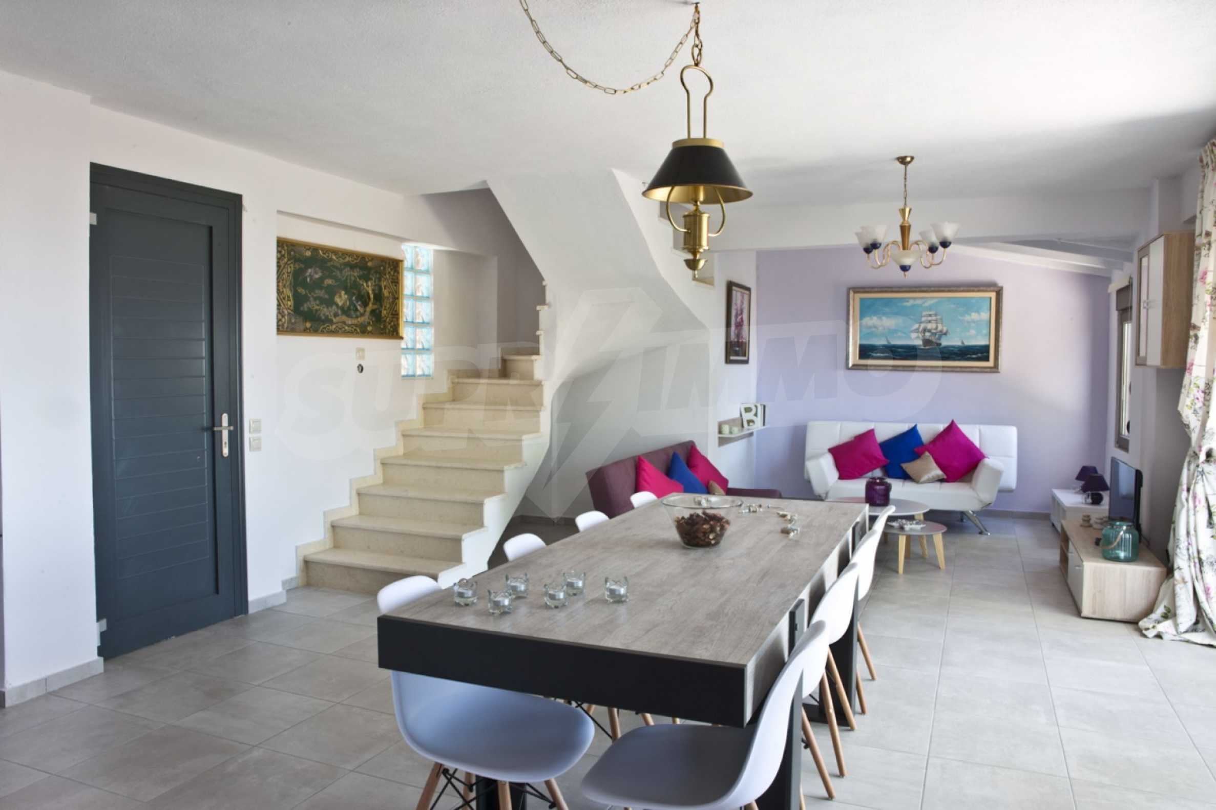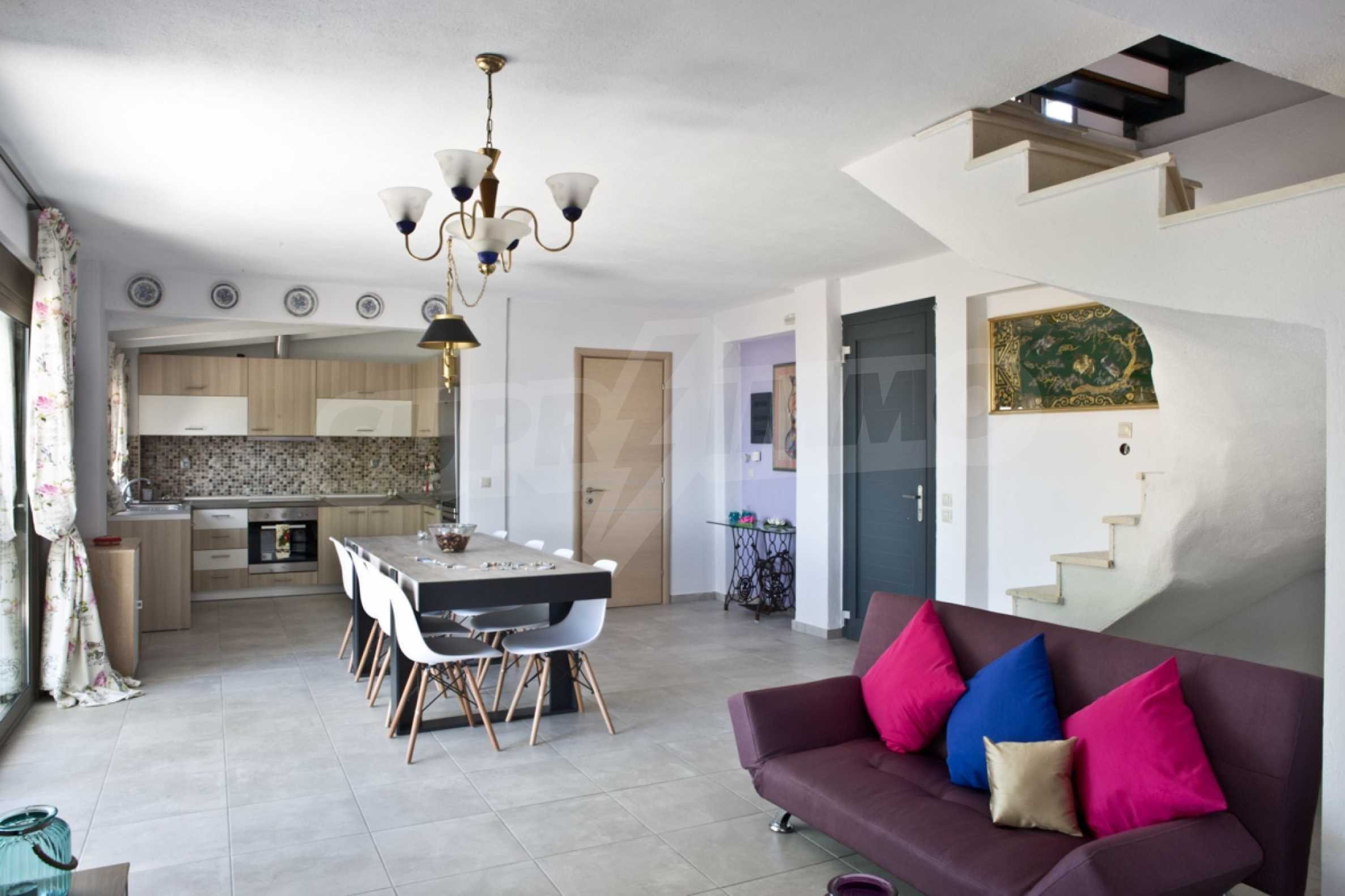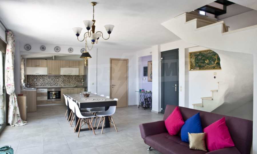 Продается мезонета площадью 170 кв.м с земельным участком 300 кв.м с восхитительным видом на море. Мезонета состоит из четырех спален, трех ванных комнат, гостиной с камином и кухни.