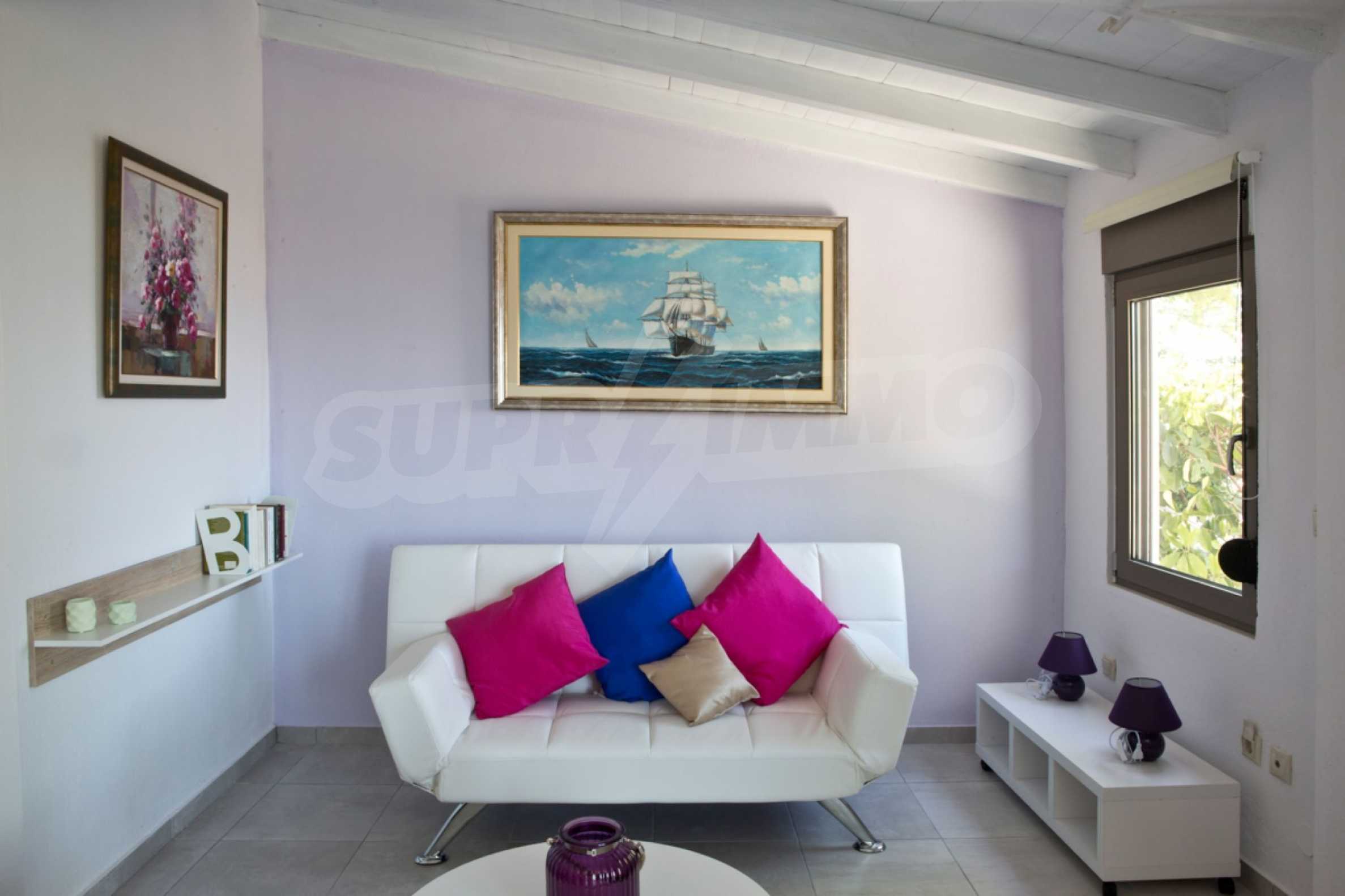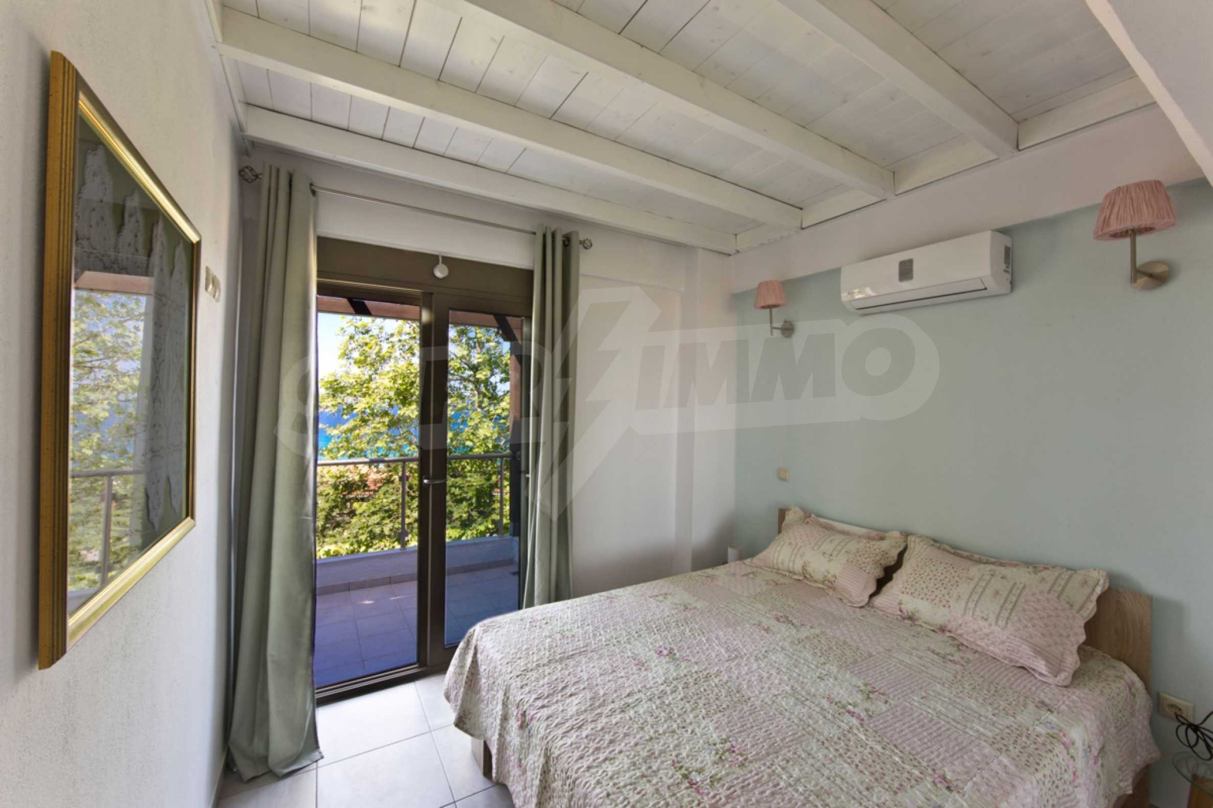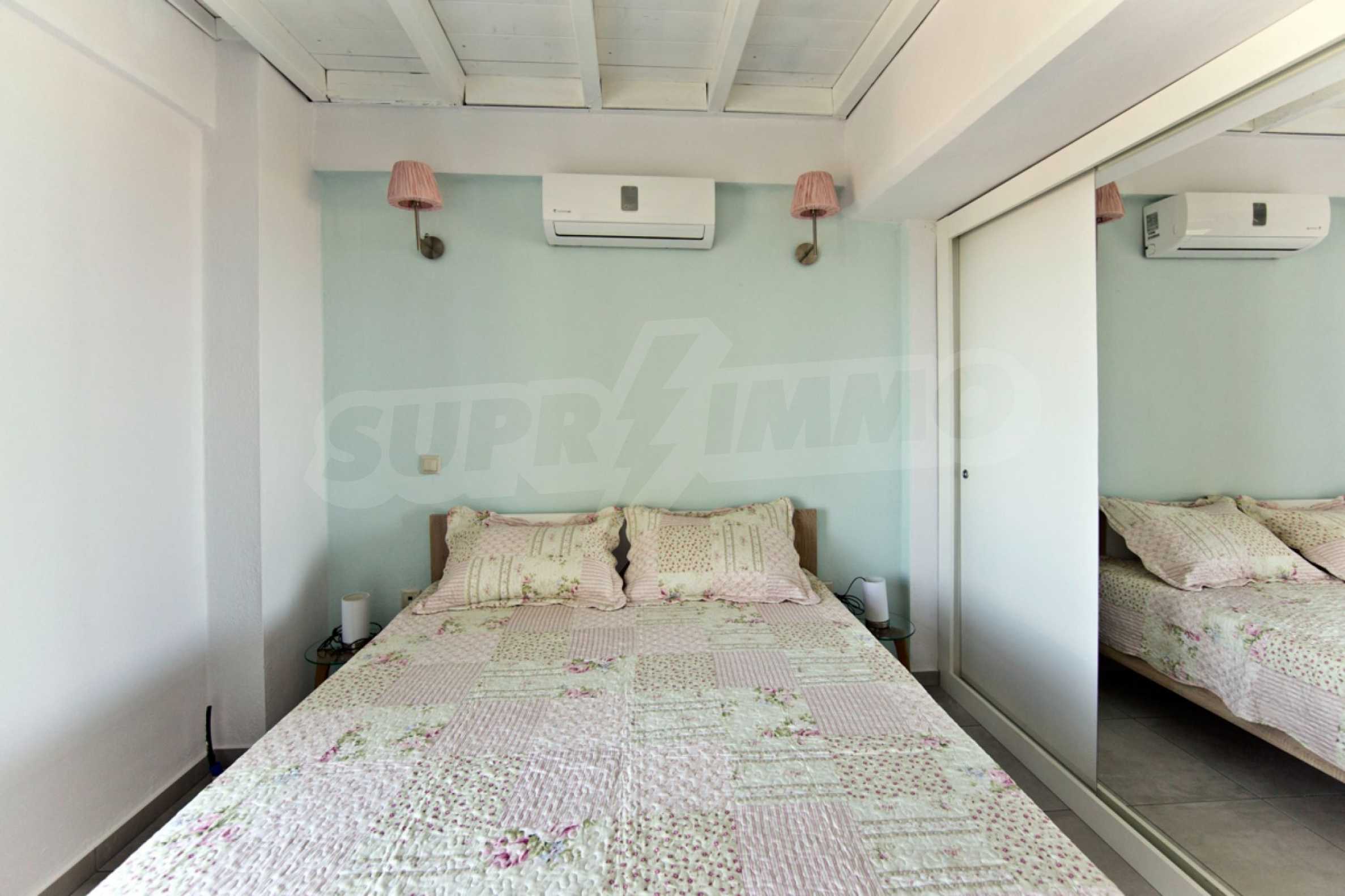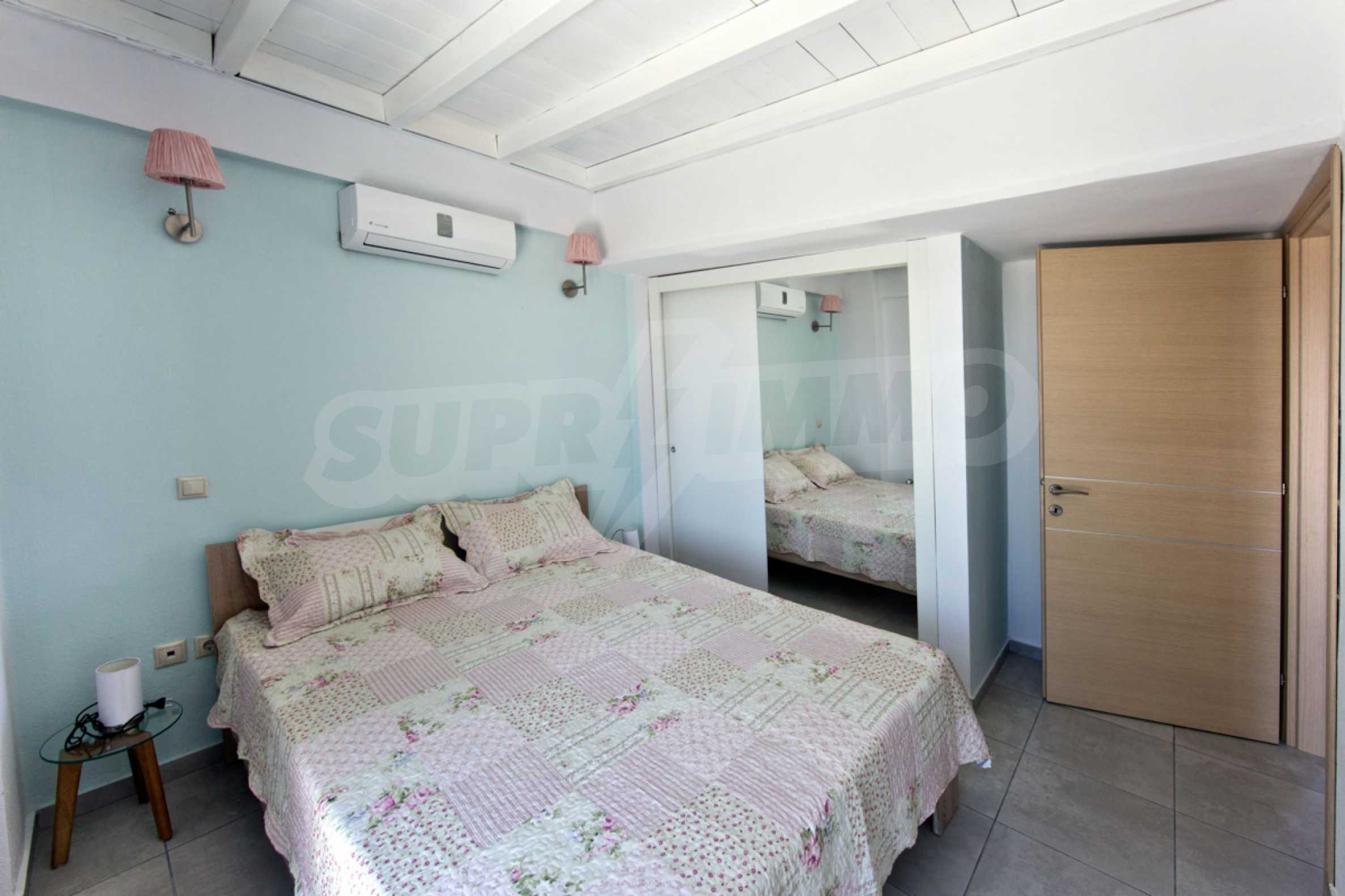 Продается мезонета площадью 170 кв.м с земельным участком 300 кв.м с восхитительным видом на море. Мезонета состоит из четырех спален, трех ванных комнат, гостиной с камином и кухни.