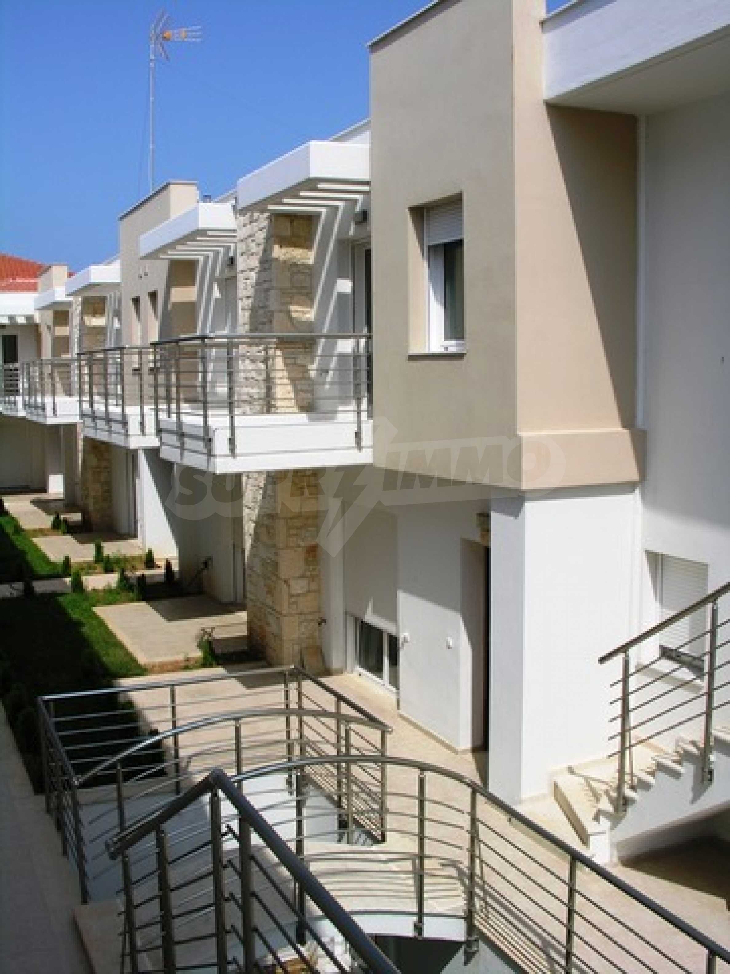 Продается новая двухэтажная мезонета 82 кв.мв комплексе состоящем из 19 апартаментов с панорамным видом на море. Мезонета состоит из двух комфортабельных спален, ванной комнаты, просторной гостиной с камином и кухни. находятся в поселке с развитой инфраструктурой в 400 м от песчаного пляжа. В доме установлены элетрические батареи отопления, в гостиной есть камин, территория комплекса огорожена. Комплекс расположен в двух шагах от замечательного песчаного пляжа.
