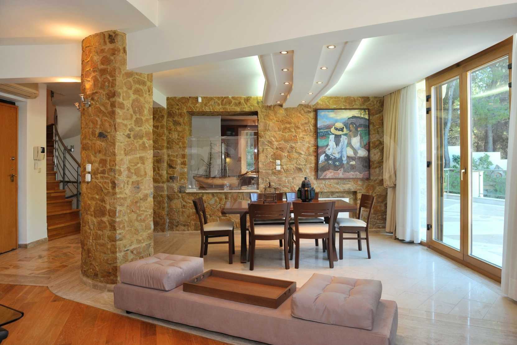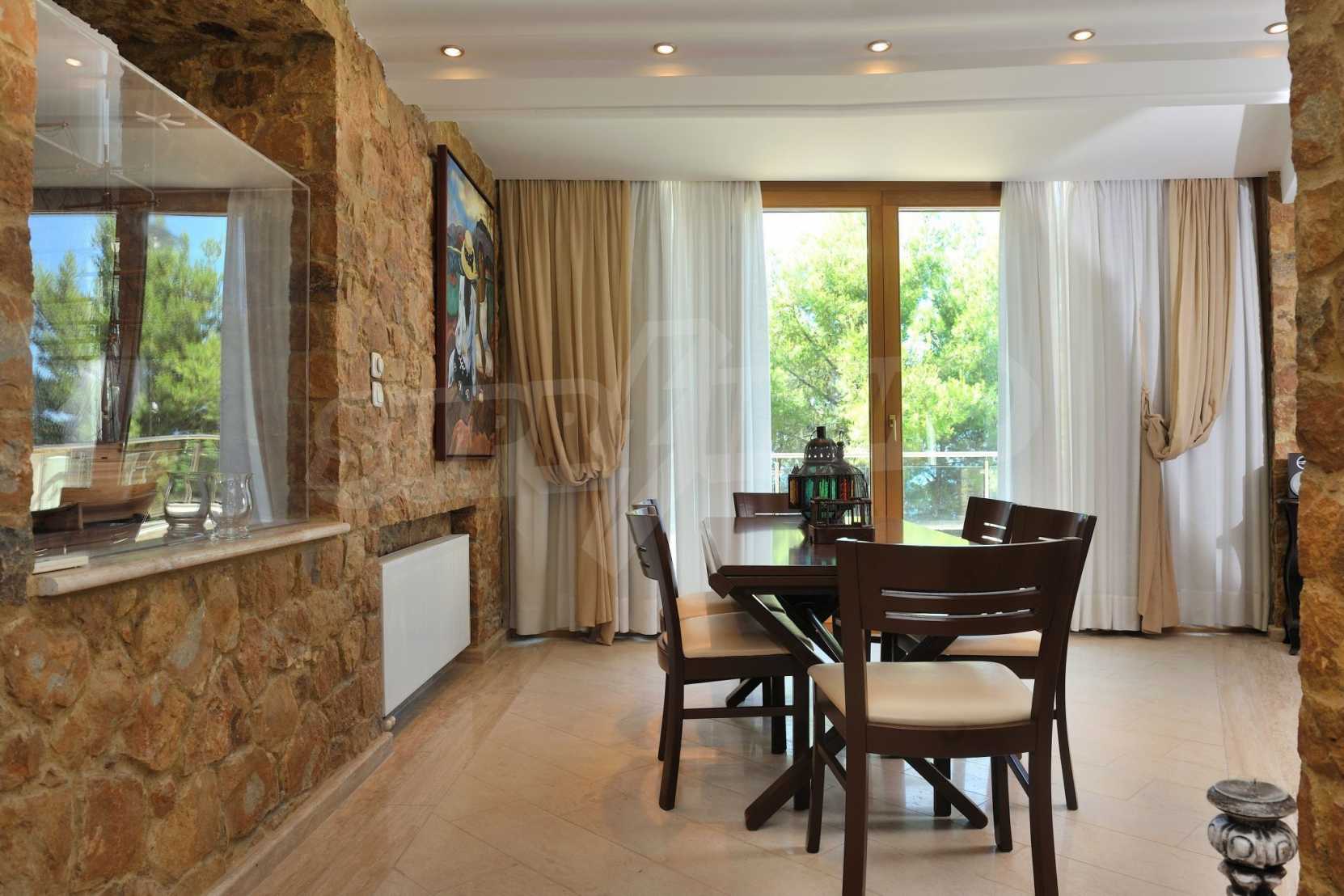 Роскошная вилла с видом на море в престижном курортном поселке расположена на участке размером 1540 кв.м. с собственным бассейном. Трехэтажная вилла распологает 6 спальнями, 7 ванными комнатами, большим садом и двумя парковочными местами. Все комнаты меблированы с превосходным вкусом и высококачественными строительными материалами. 700 м от песчаного пляжа. Вилла находится поблизости от одного из лучших курортов в Северной Греции - Sani Resort, который располагает четырьмя пятизвездочными отелями. Чего только стоит Марина, небольшой порт с частными яхтами, с разнообразностью таверн и ресторанов греческой, итальянской и японской кухней, бары клубы и кондитерские. В Вашем распоряжении находятся фитнесс центры, спа-салоны, магазины модной одежды, бутики, минимаркеты. Каждое лето в Сани устраиваются музыкальный и гастрономический фестивали. Все что необходимо - у Вас под рукой. Всего 40 минут на машине, и Вы будете Салониках, в северной столице Греции.