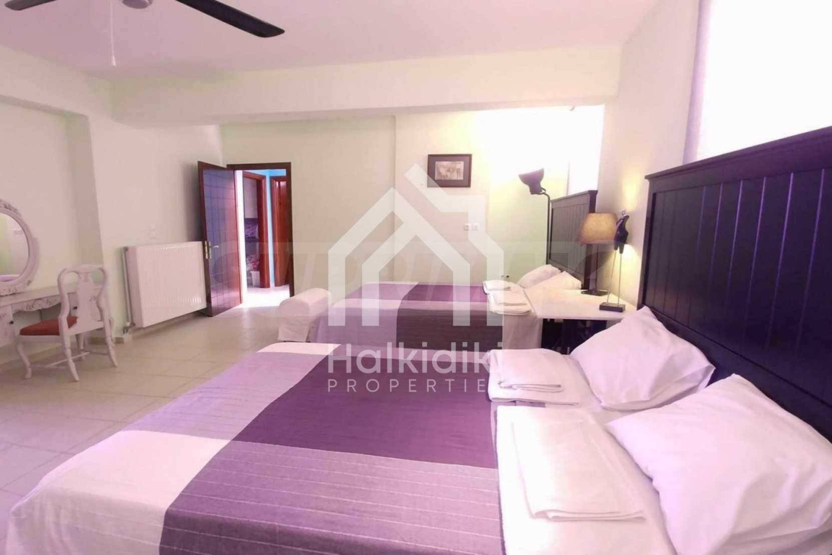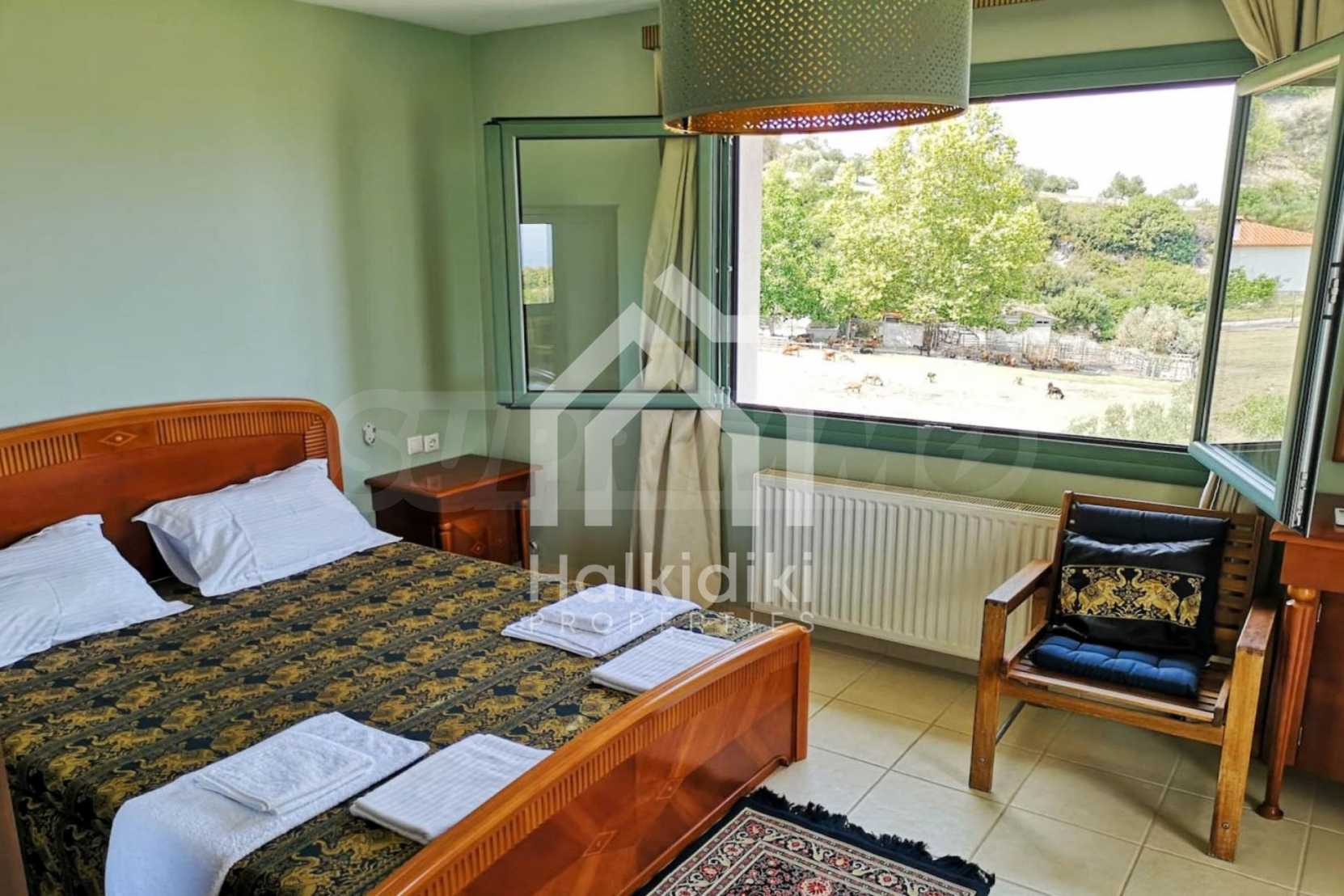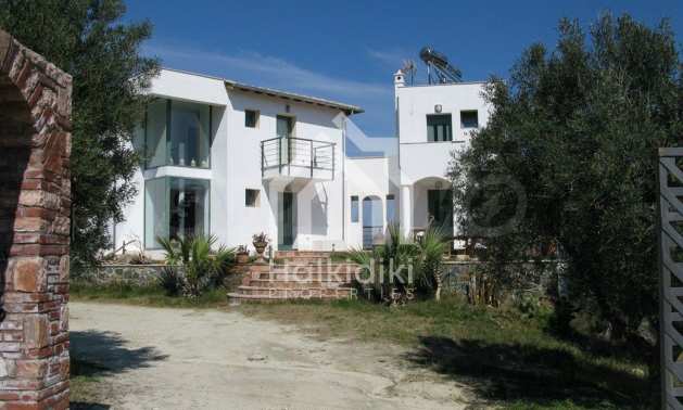 Предлагаем Вашему вниманию роскошную виллу площадью 260 кв. метров. Вилла расположена в живописном месте на холме, из дома открывается неограниченный вид на лазурное Эгейское море, сосновый лес и гору Афон. Из каждой комнаты есть выход на террасу с видом на залив. Удобное расположение виллы сочетает в себе уединение, столь необходимое для отдыха, большим преимуществом является небольшое расстояние от туристического городка с множеством магазинов, баров и ресторанов. Вилла состоит из главного и гостевого дома: главный дом площадью 185 кв. метров, на первом этаже находится гостиная с камином, кухня ALNO (Германия), оборудованная бытовой техникой MIELE (Германия) и wc. В гостиной с панорамными окнами Вы можете насладится прекрасным видом на побережье, на втором этаже находятся две спальни, каждая с собственной ванной комнатой и балконом. Из спален также открывается великолепный вид на море. На первом этаже также находятся комната, которую при желании можно использовать как дополнительную спальню или организовать тренажерный зал, ванная комната, офис, из окна которого открывается великолепный вид на море, также есть склад, прачечная, оборудована стиральной машиной, и гардероб. Гостевой домик общей площадью 75 кв. метров. состоит из трех однокомнатных апартаментов (студио) с отдельными входами. В каждом апартаменте есть спальня, балкон с прекрасным видом на море, ванная комната и небольшая кухня, так что ваши гости могут расслабиться, не стесняя хозяев. Вокруг дома есть огромная площадь приусадебного участка 10000 кв. метров, который условно поделен на две части - 5500 кв. метров и 4500 кв. метров. Существует возможность строительства комплекса из 4 коттеджей на первой линии, и ещё 2 коттеджей на второй. На территории виллы есть летняя кухня, укомплектована бытовой техникой, барбекю, экзотические пальмы, фруктовые деревья, 170 оливковых деревьев с плодовыми крупными маслинами, зеленый газон оснащен системой автоматического полива. В доме есть кондиционеры, бойлер, бак дизельного топлива BUDERUS (Германия). Кроме того, в доме есть кладовка площадью 12 кв. метров, которая может использоваться как еще одна прачечная. Вилла расположена на расстоянии 1000 м от песчаного пляжа.