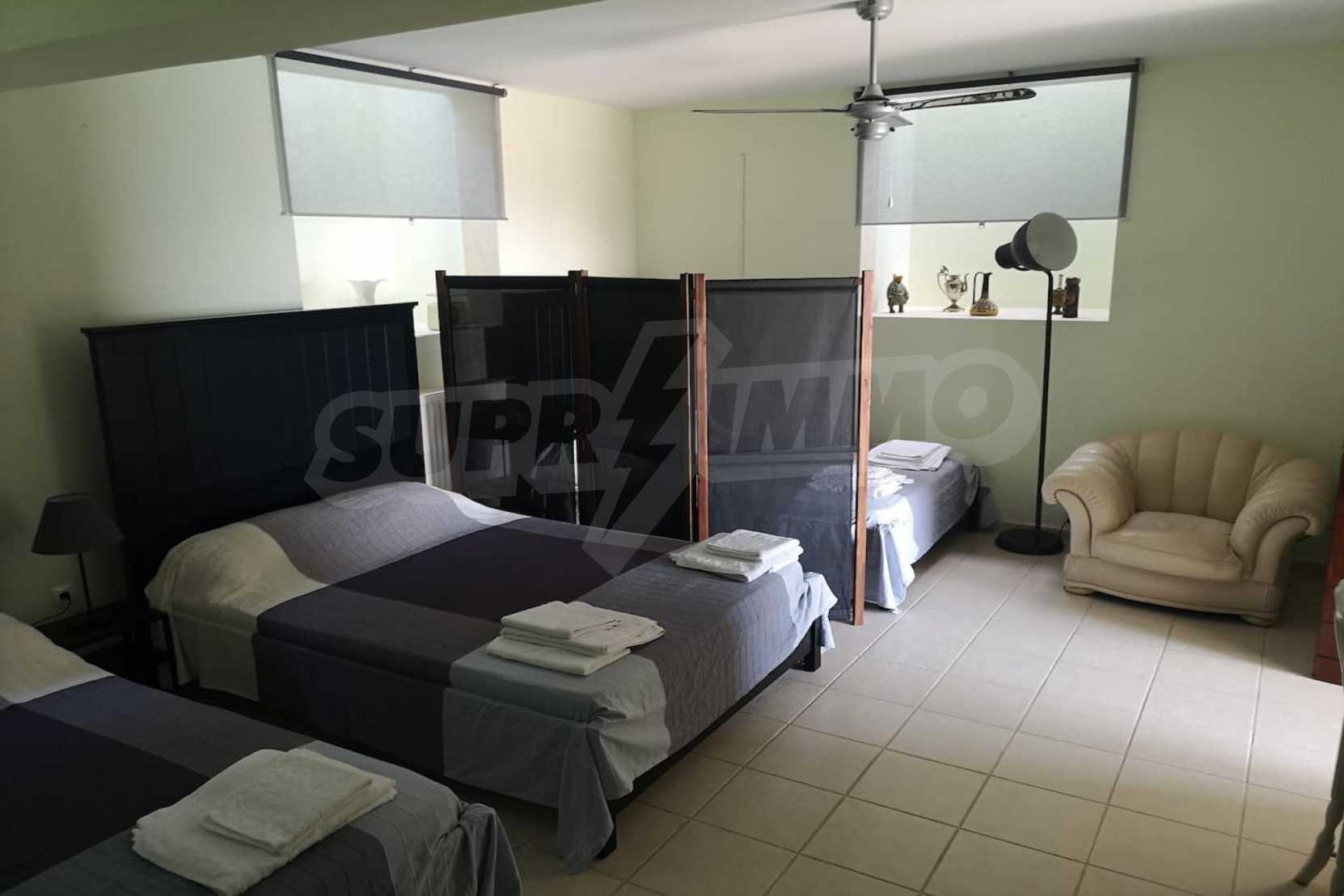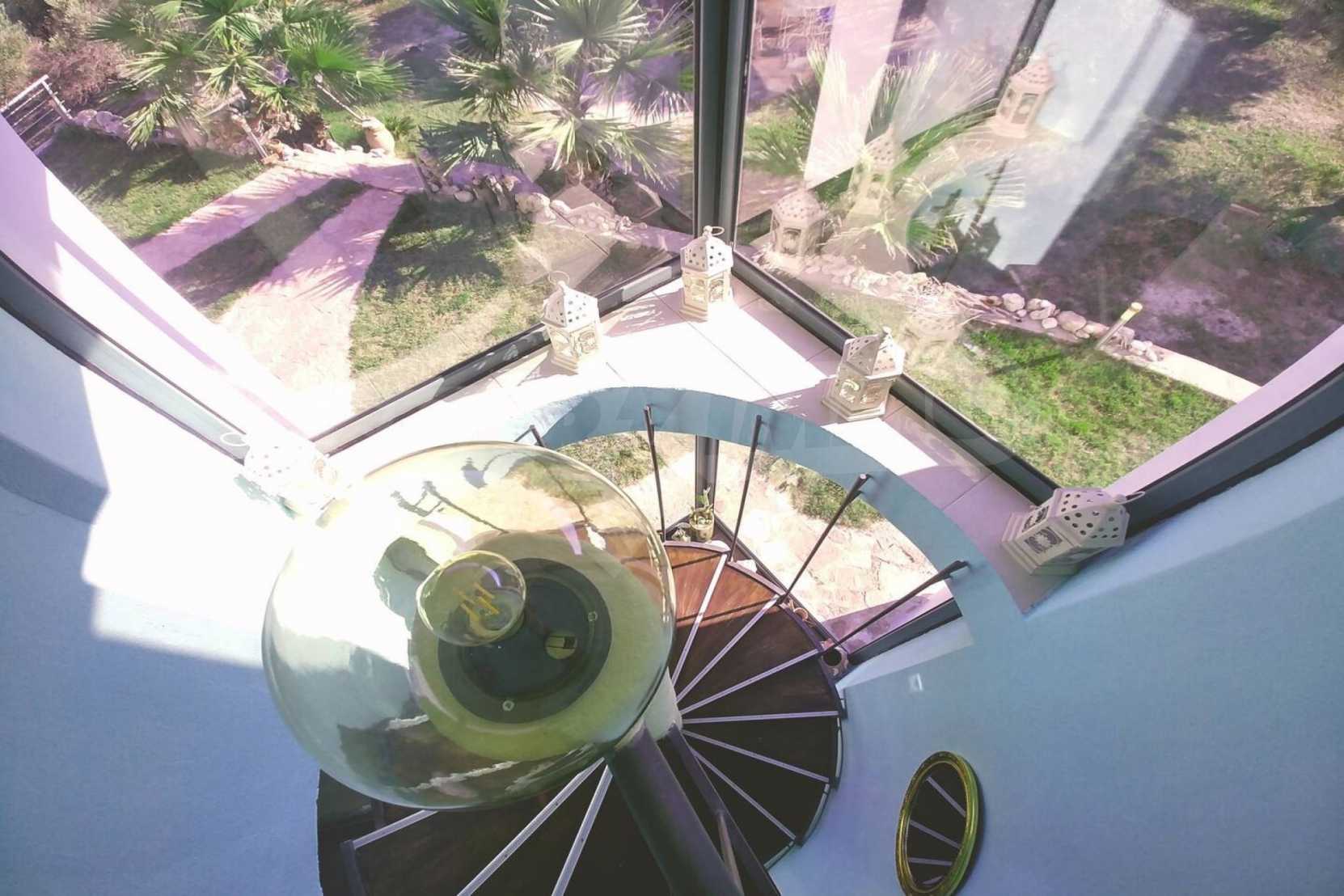 Вилла площадью 260 кв. метров. Предлагаемая недвижимость построена в 2007. Камин, локальное отопление и солнечные коллекторы. Обеспечено кондиционирование следующего типа: система кондиционирования. Армированная входная дверь имеются в предлагаемой недвижимости. Недвижимость включает следующую меблировку и оснащение: встроенная кухня, кондиционер и меблировку. Из основных коммуникаций обеспечены центральная канализация. Ванная комната с туалетом, гараж, кладовая, обозначенная стоянка, терраса, заасфальтированная дорога и система охранной сигнализации имеются в наличии среди прочих обозначенных характеристик предлагаемого объекта, что обеспечит дополнительные удобства для пользования. Виды на море открываются с недвижимости, раскрывая часть красот живописной Болгарии.
