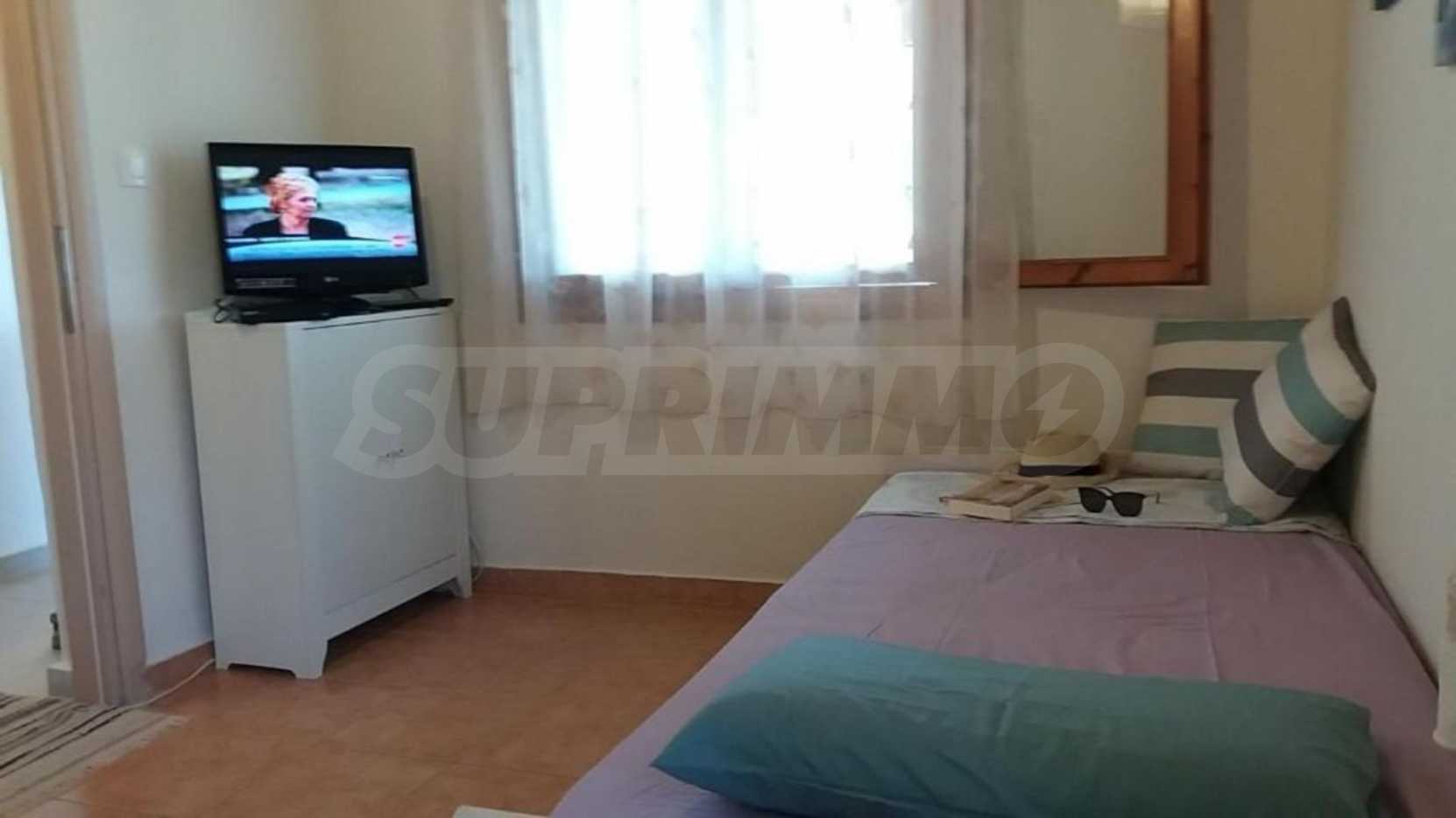 Дом площадью 66 кв.м. Предлагаемая недвижимость построена в 1978. Локальное отопление. Недвижимость включает следующую меблировку и оснащение: меблировку. Из основных коммуникаций обеспечены септическая яма. Ванная комната с туалетом, кладовая, обозначенная стоянка, чердачное помещение и заасфальтированная дорога имеются в наличии среди прочих перечисленных характеристик предлагаемого объекта, что обеспечит дополнительные удобства для пользования. Виды на море открываются с недвижимости, раскрывая часть красот живописной Болгарии.