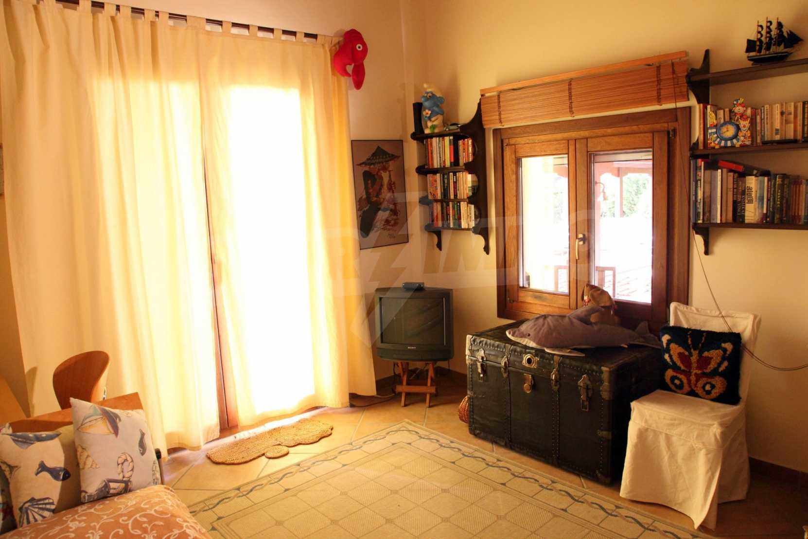 Вилла площадью 470 кв.м. Предлагаемая недвижимость построена в 2003. Камин и локальное отопление. Обеспечено кондиционирование следующего типа: система кондиционирования. Деревянные полы имеются в предлагаемой недвижимости. Недвижимость включает следующую мебель и оборудование: встроенная кухня, кондиционер и мебель. Из основных коммуникаций обеспечены собственное водоснабжение и септическая яма. Ванная комната с туалетом, кладовая, обозначенная стоянка, терраса и грунтовая дорога имеются в наличии среди прочих характеристик предлагаемого объекта, что обеспечит дополнительный комфорт для пользования. Виды на море открываются с недвижимости, раскрывая часть красот живописной Болгарии.