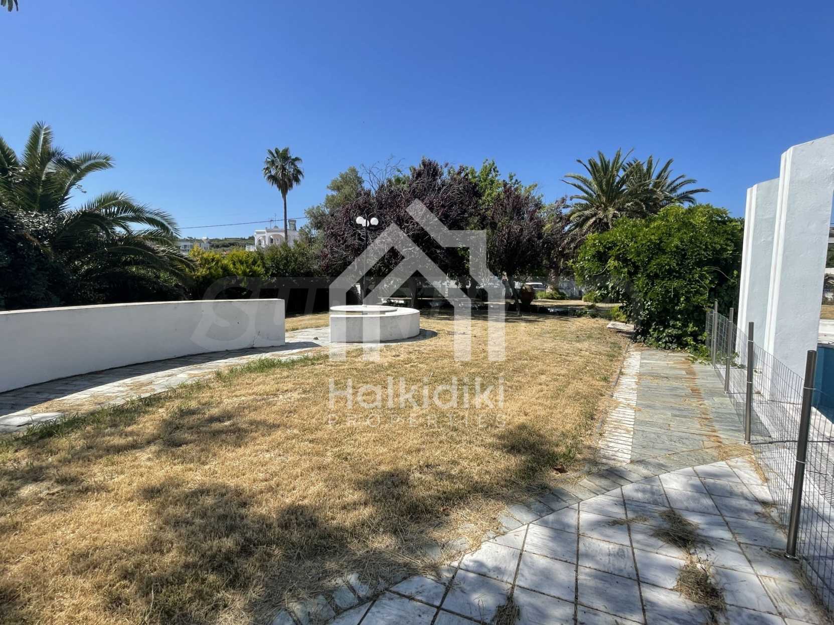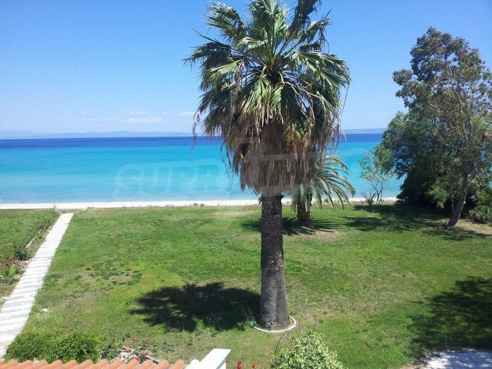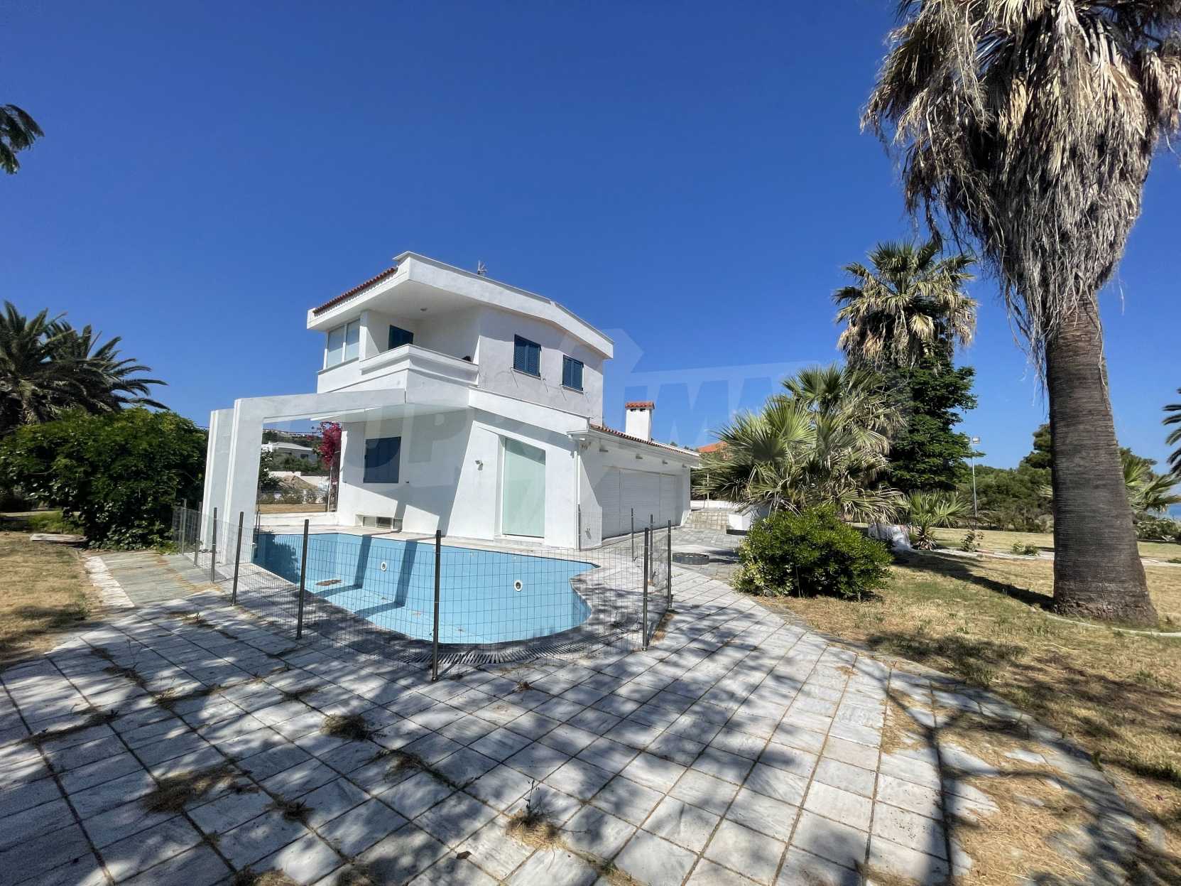 Вилла площадью 400 кв.м на Кассандре, расположенная на первой линии от моря на одном из самых красивых пляжей полуострова Халкидики. Вилла была построена в 1992 и отреставрирована в 2010 году. Дом находится в окружении ухоженного сада площадью 3500 кв.м. На вилле есть бассейн, душ, барбекю и бар. Сад красиво благоустроен с пальмами и другими деревьями, зеленый газон с автоматическим поливом газоном и садовником. Здание состоит из трех уровней: на цокольном этаже (150 кв.м.) есть две спальни, ванная комната, гостиная, кладовка и котельная. На первом этаже (160 кв.м.) находятся две спальни, ванная комната гостиная и кухня. Второй этаж (90 кв.м.) имеет три спальни и две ванные комнаты. Вилла имеет великолепный беспрепятственный вид на море и горы. В доме есть система сигнализации, охрана, парковка, спутниковое телевидение, барбекю.