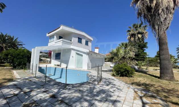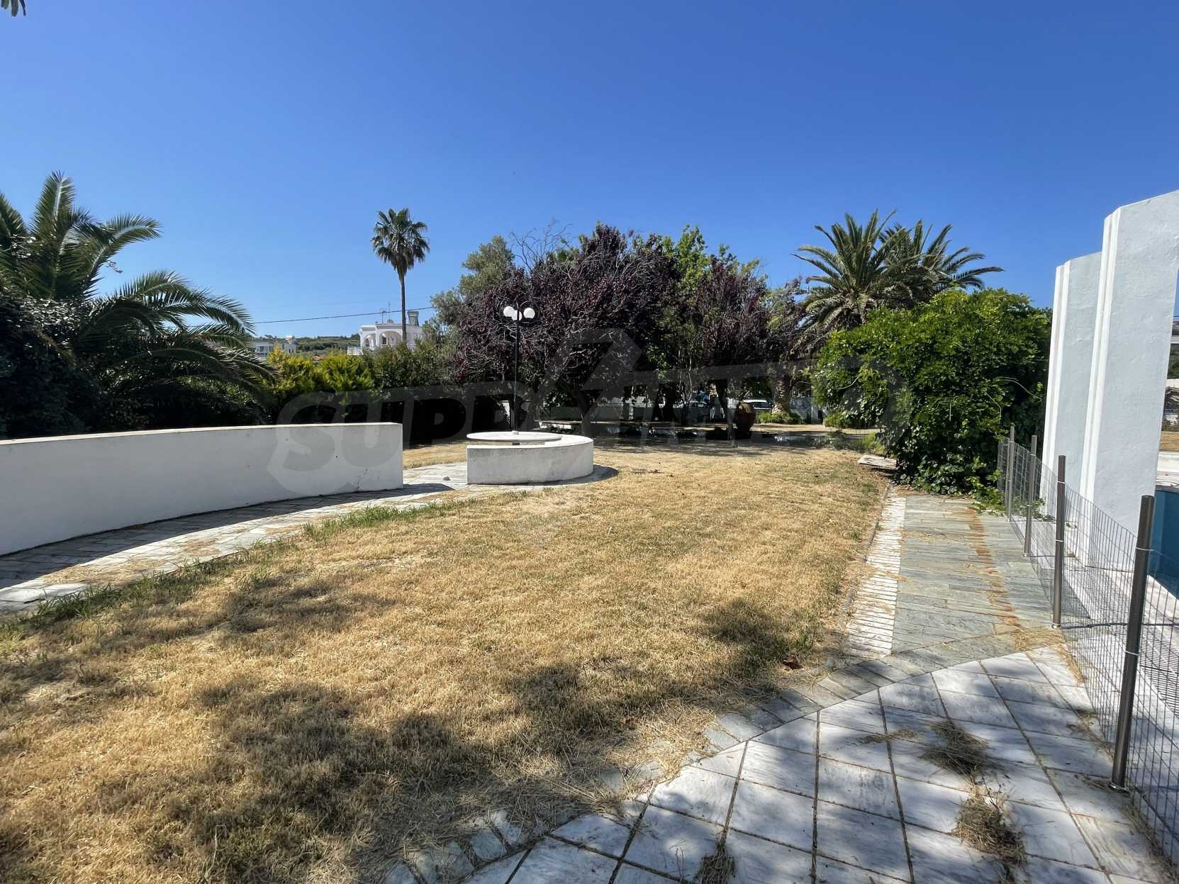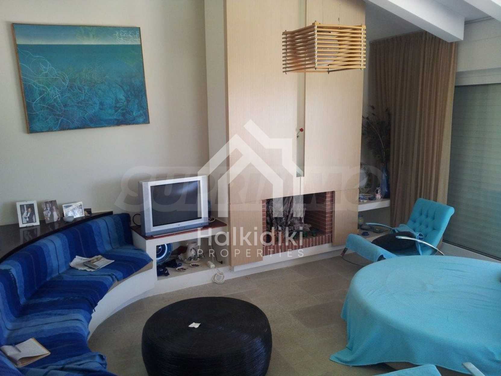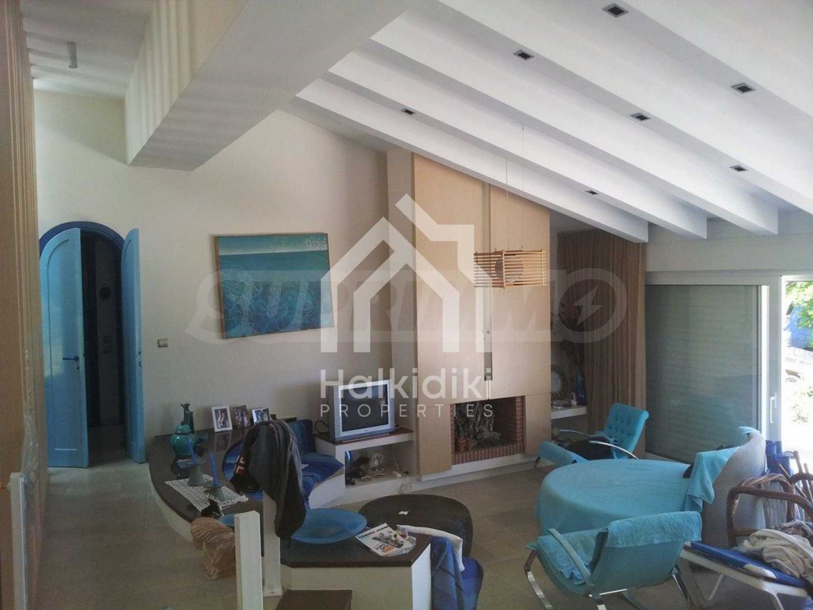 Вилла площадью 400 кв.м на Кассандре, расположенная на первой линии от моря на одном из самых красивых пляжей полуострова Халкидики. Вилла была построена в 1992 и отреставрирована в 2010 году. Дом находится в окружении ухоженного сада площадью 3500 кв.м. На вилле есть бассейн, душ, барбекю и бар. Сад красиво благоустроен с пальмами и другими деревьями, зеленый газон с автоматическим поливом газоном и садовником. Здание состоит из трех уровней: на цокольном этаже (150 кв.м.) есть две спальни, ванная комната, гостиная, кладовка и котельная. На первом этаже (160 кв.м.) находятся две спальни, ванная комната гостиная и кухня. Второй этаж (90 кв.м.) имеет три спальни и две ванные комнаты. Вилла имеет великолепный беспрепятственный вид на море и горы. В доме есть система сигнализации, охрана, парковка, спутниковое телевидение, барбекю.