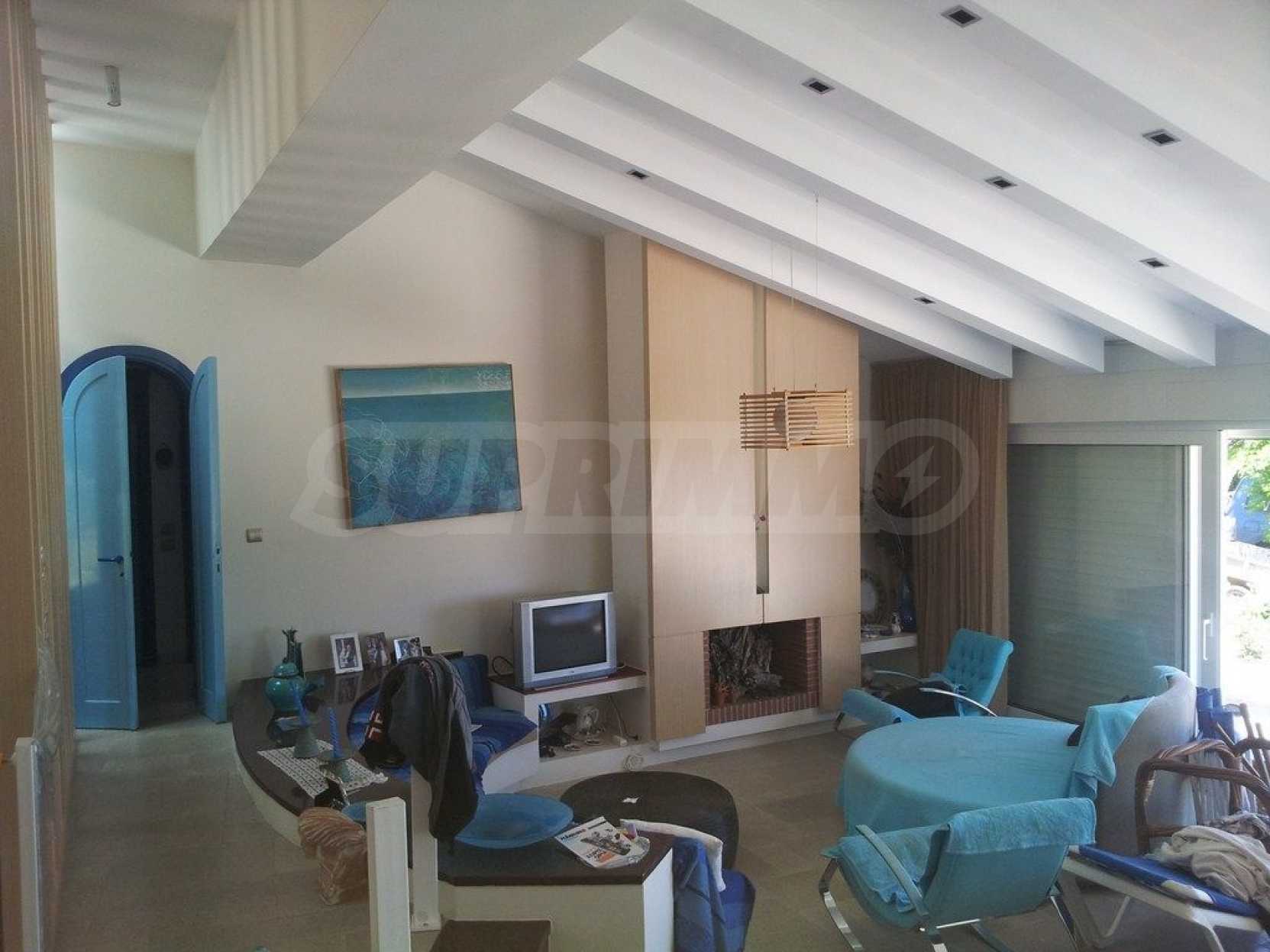 Вилла площадью 400 кв.м. Предлагаемая недвижимость построена в 1992. Камин и локальное отопление. Алюминиевые окна имеются в предлагаемой недвижимости. Недвижимость включает следующую меблировку и оснащение: встроенная кухня и меблировку. Из основных коммуникаций обеспечены септическая яма. Ванная комната с туалетом, гараж, кладовая, обозначенная стоянка, подвал, терраса, бассейн и заасфальтированная дорога имеются в наличии среди прочих отличительных характеристик предлагаемого объекта, что обеспечит дополнительные удобства для пользования. Виды на море открываются с недвижимости, раскрывая часть красот живописной Болгарии.