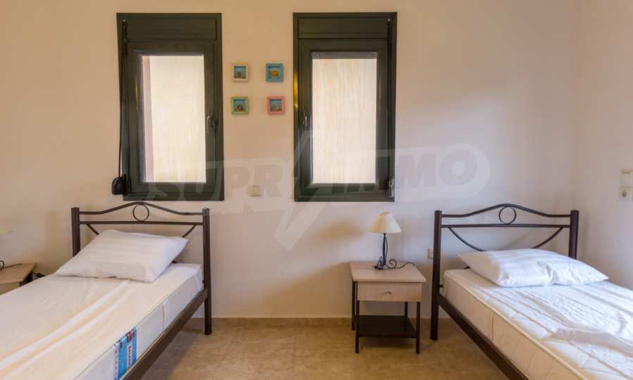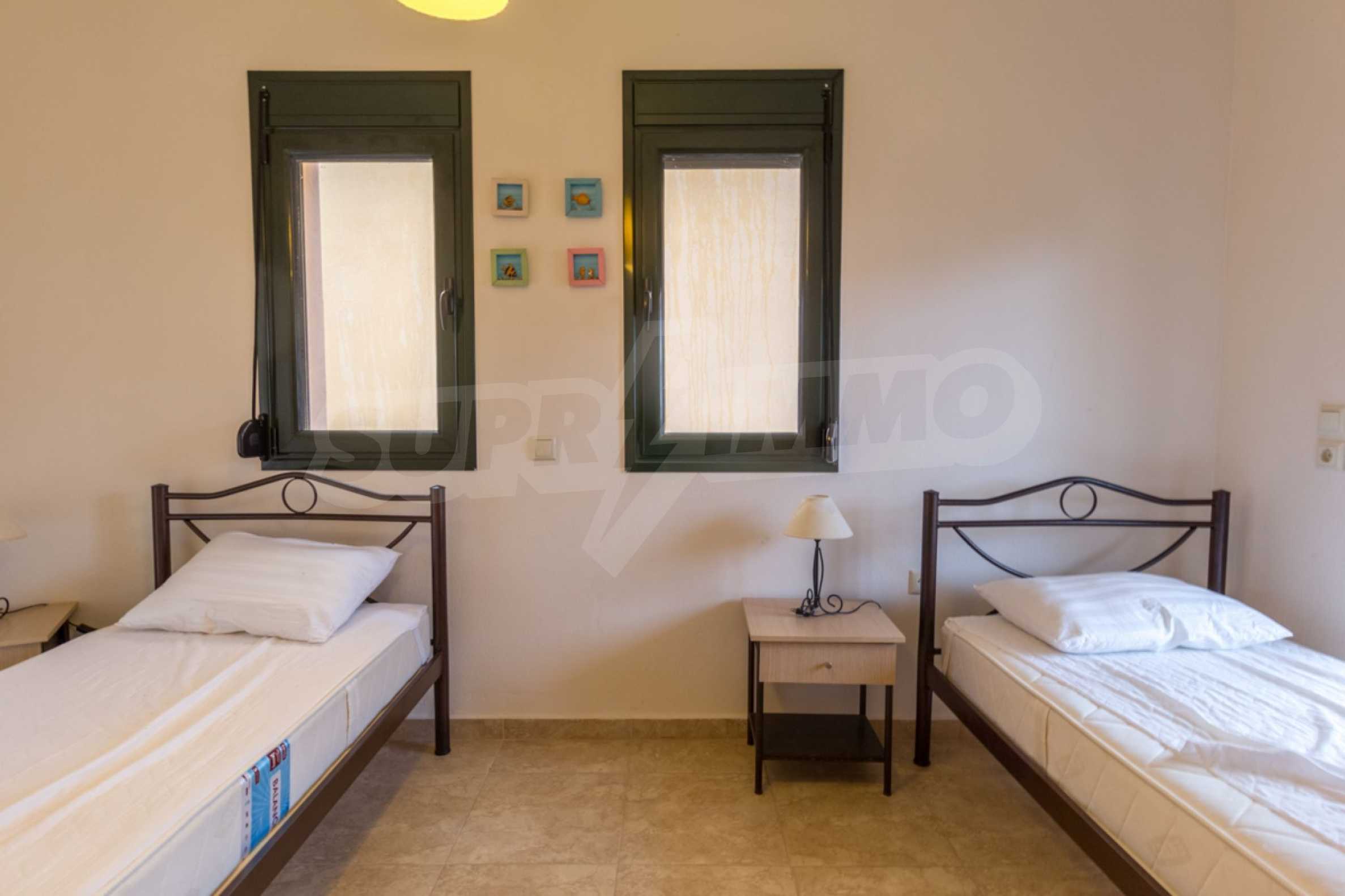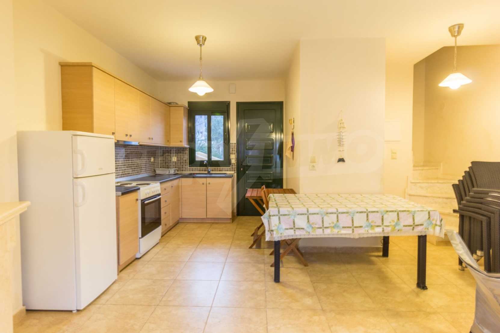Новый коттеджный комплекс расположен в 50 метрах от моря. Набережная линия длинной 3 км является одной из лучших на Ситонии с песчаным пляжем и десятками таверн и кафе. На пляже также имеется детская площадка. Первый этаж состоит из гостиной, кухни и WC.На втором этаже находятся две спальни: первая спальня с двуспальной кроватью, вторая с двумя односпальными кроватями и ванной комнатой. Дом оборудован необходимой бытовой техникой, посудой и летней верандой в саду, где будет приятно проводить теплые летние вечера. В 20 м от комплекса расположен уютный ресторанчик с видом на море. Удобное положение в самом центре деревне, где все необходимое будет у Вас под рукой. Указанная цена является арендной платой за неделю в самый низкий сезон. Для более подробной информации, пожалуйста, свяжитесь с нами по телефону или напишите нам на электронный адрес.