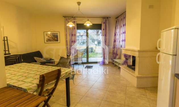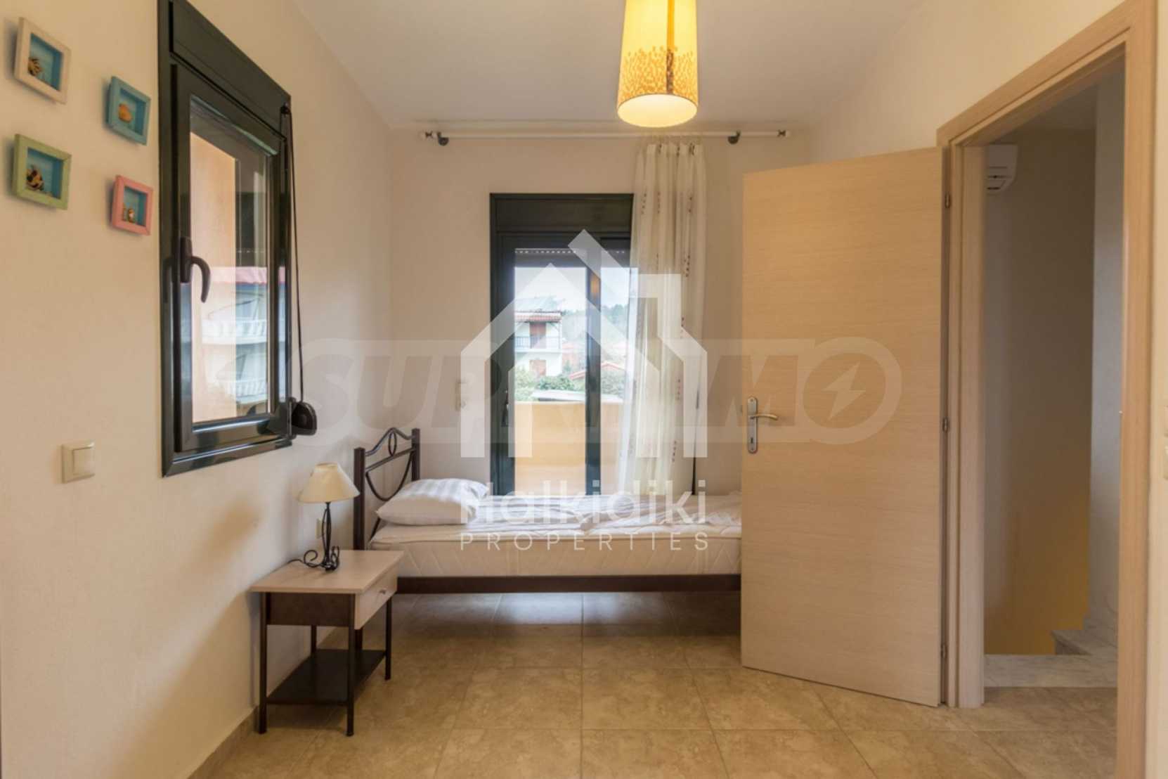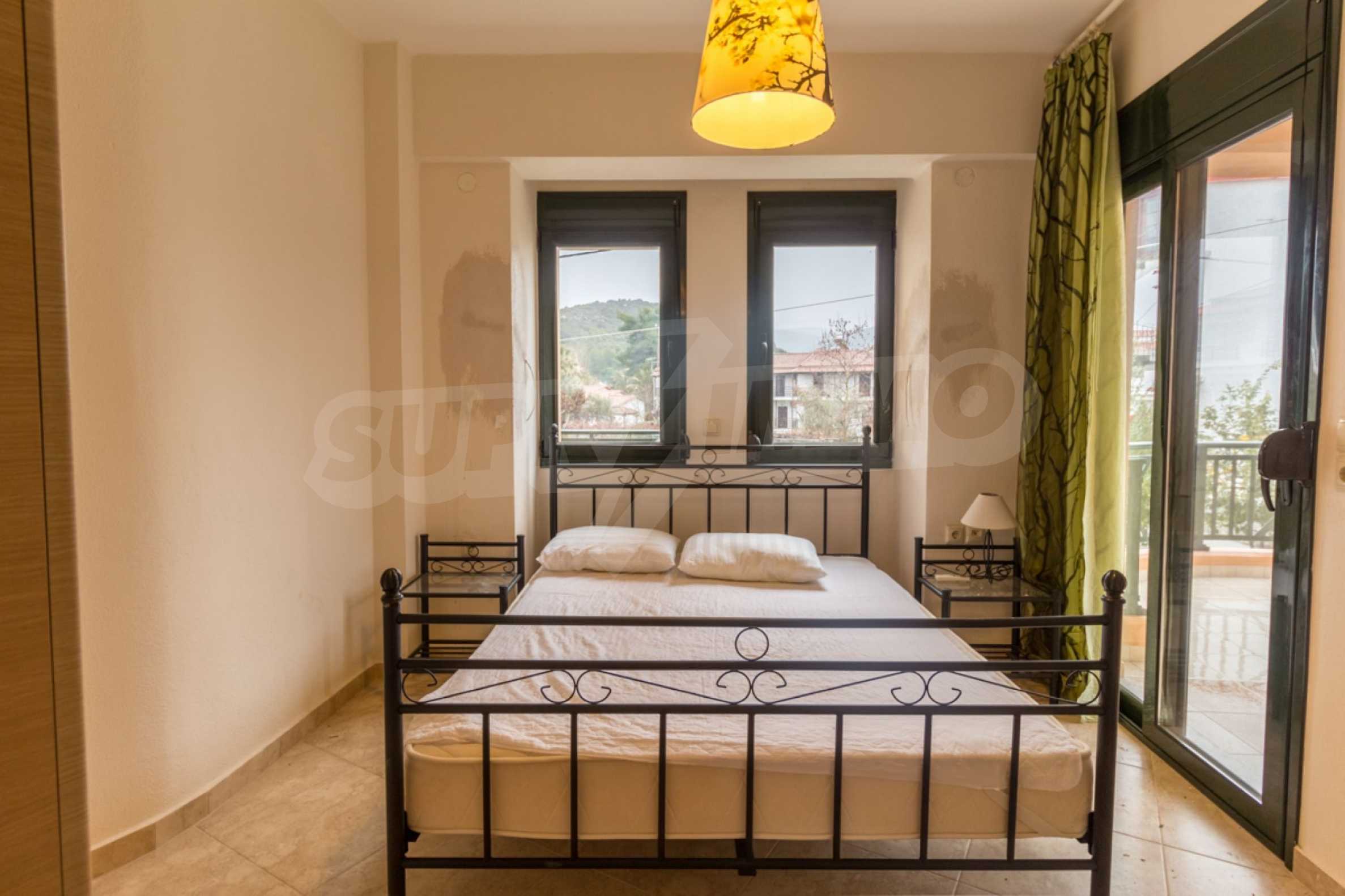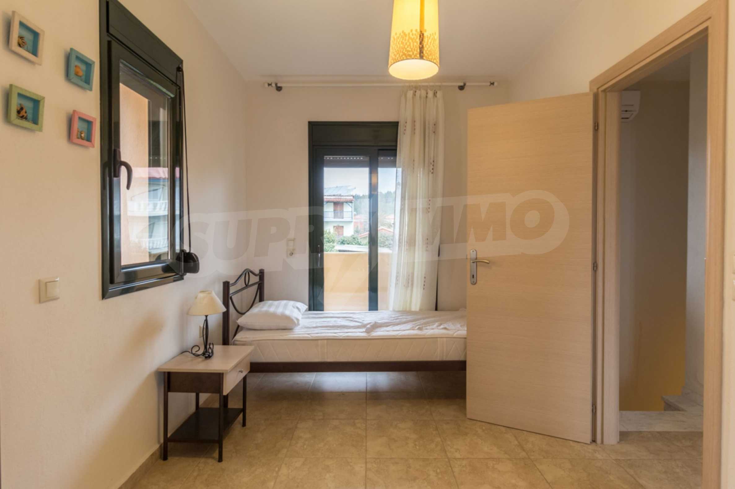 Новый коттеджный комплекс расположен в 50 метрах от моря. Набережная линия длинной 3 км является одной из лучших на Ситонии с песчаным пляжем и десятками таверн и кафе. На пляже также имеется детская площадка. Первый этаж состоит из гостиной, кухни и WC.На втором этаже находятся две спальни: первая спальня с двуспальной кроватью, вторая с двумя односпальными кроватями и ванной комнатой. Дом оборудован необходимой бытовой техникой, посудой и летней верандой в саду, где будет приятно проводить теплые летние вечера. В 20 м от комплекса расположен уютный ресторанчик с видом на море. Удобное положение в самом центре деревне, где все необходимое будет у Вас под рукой. Указанная цена является арендной платой за неделю в самый низкий сезон. Для более подробной информации, пожалуйста, свяжитесь с нами по телефону или напишите нам на электронный адрес.