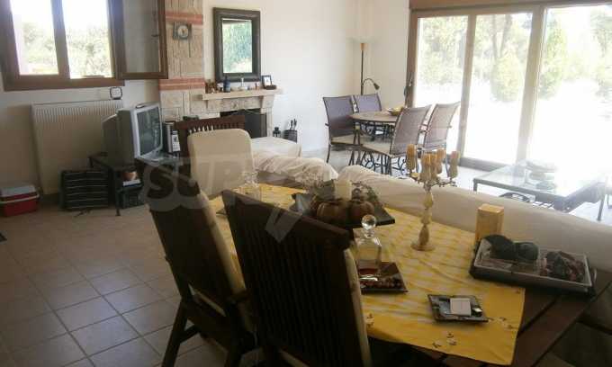 Дом площадью 146 м2. Предлагаемая недвижимость построена в 2003. Камин и локальное отопление. Обеспечено кондиционирование следующего типа: система кондиционирования. Алюминиевые окна и армированная входная дверь имеются в предлагаемой недвижимости. Недвижимость включает следующую мебель и оборудование: бойлер электрический, встроенная кухня, кондиционер и мебель. Из основных коммуникаций обеспечены собственное водоснабжение и септическая яма. Ванная комната с туалетом, кладовая, обозначенная стоянка, терраса, бассейн, заасфальтированная дорога и система охранной сигнализации имеются в наличии среди прочих отличительных характеристик предлагаемого объекта, что обеспечит дополнительные удобства для пользования. Виды на море открываются с недвижимости, раскрывая часть красот живописной Болгарии.