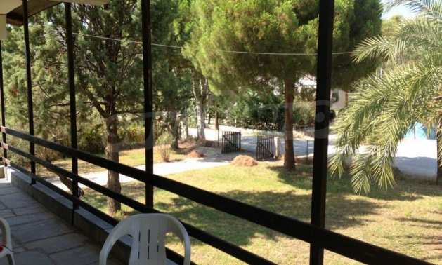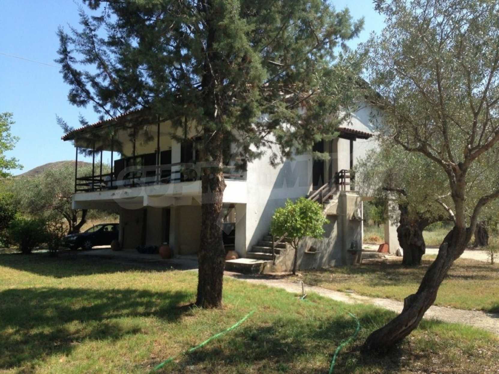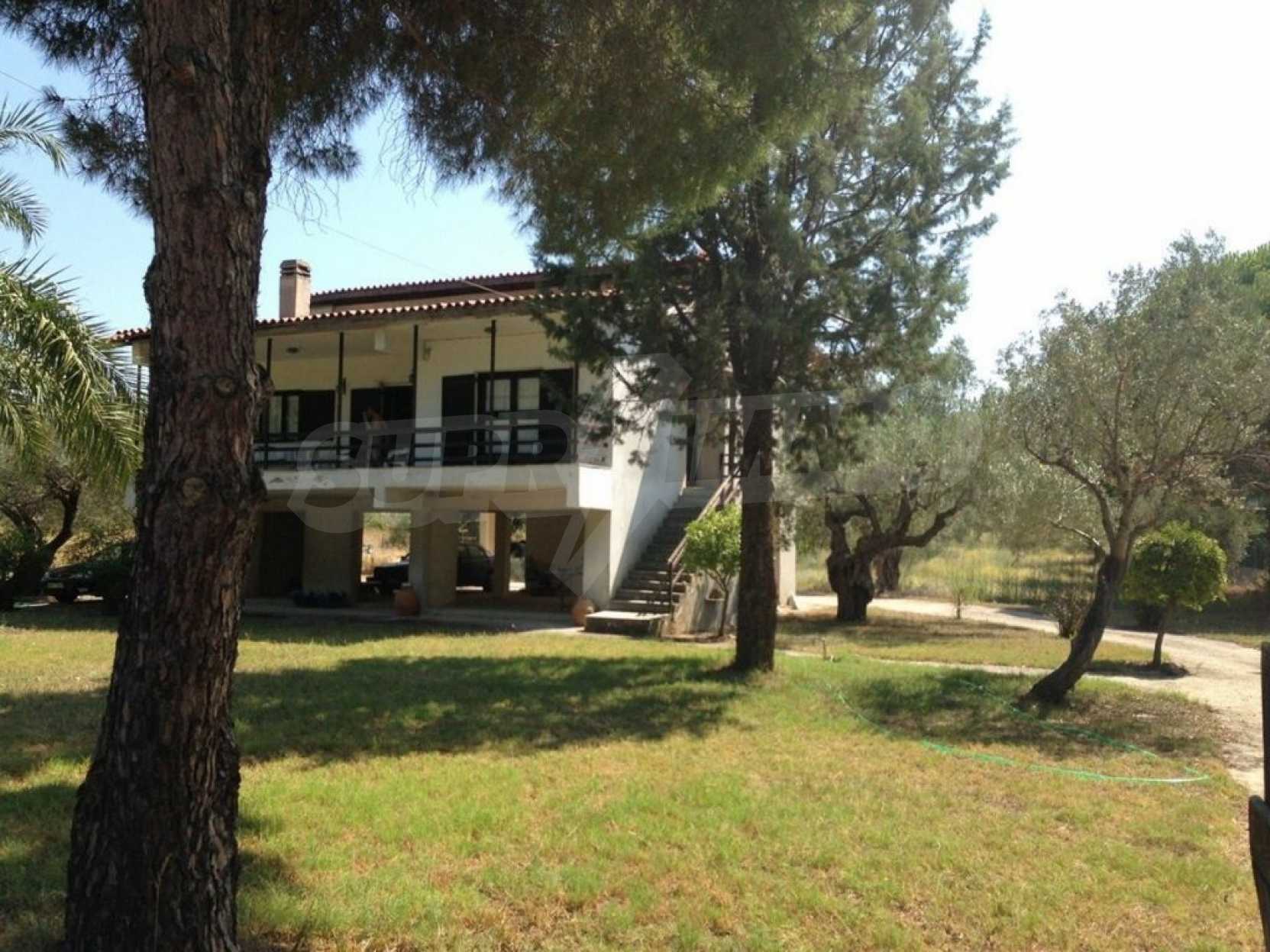 Одноэтажный частный дом расположенный на второй линии от моря, всего в 100 м от прекрасного пляжа. Дом находится на участке площадью 4000 кв. метров, с беседкой, барбекю, пальмами и оливковыми деревьями, и красивым ухоженным садом. Дом имеет площадь 120 кв. метров, на первом этаже находится крытый гараж. Дом состоит из гостиной, кухни, двух спален и ванной комнаты.