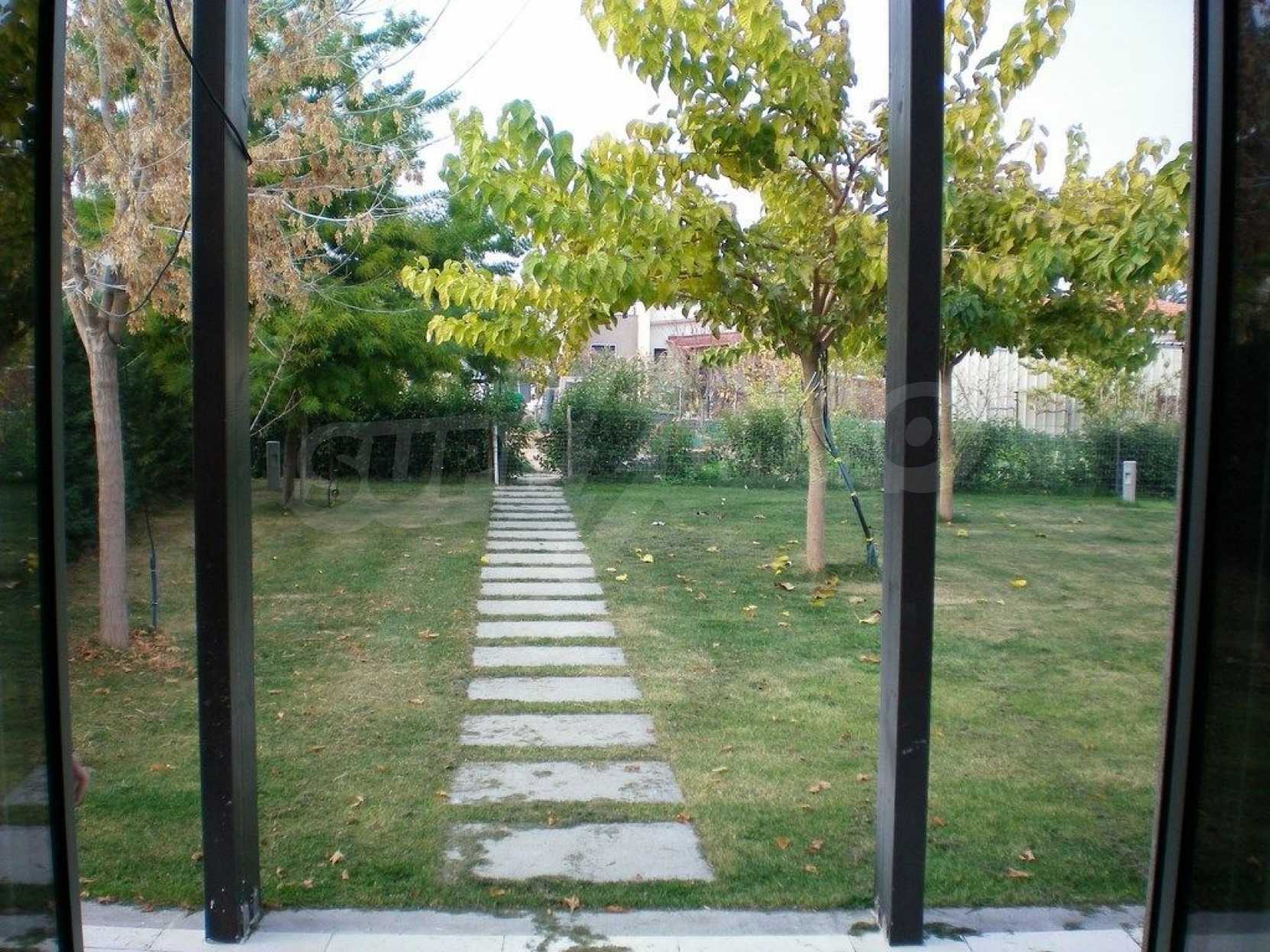 Эксклюзивный частный дом с земельным участком 2450 кв. метров. На территории участка расположено три здания с примыкающей к ним территорией: главный дом площадью 318 кв. метров с участком 1450 кв. метров, гостевой домик площадью 43.7 кв. метров с участком 1000 кв. метров и помещение под склад площадью 97.62 кв. метров. Три здание расположены на участке в форме буквы , что создает уютный внутренни дворик с бассейном и ухоженным садиком со множеством деревьев. Это тщательно продуманная архитектура поддерживает уединенность во дворе, не только от нескромных глаз, но и от любых неприятных погодных условий, таких как холодный северный ветер. Главный дом состоит из трех просторных спален, трех ванных комнат, кладовая, четыре автостоянки и гараж на две машины. "Smart house" оснащен автоматизированной вакуумной системой очистки, системой видеонаблюдения, биометрическим замком по отпечатку пальца, автономной системой отопления.