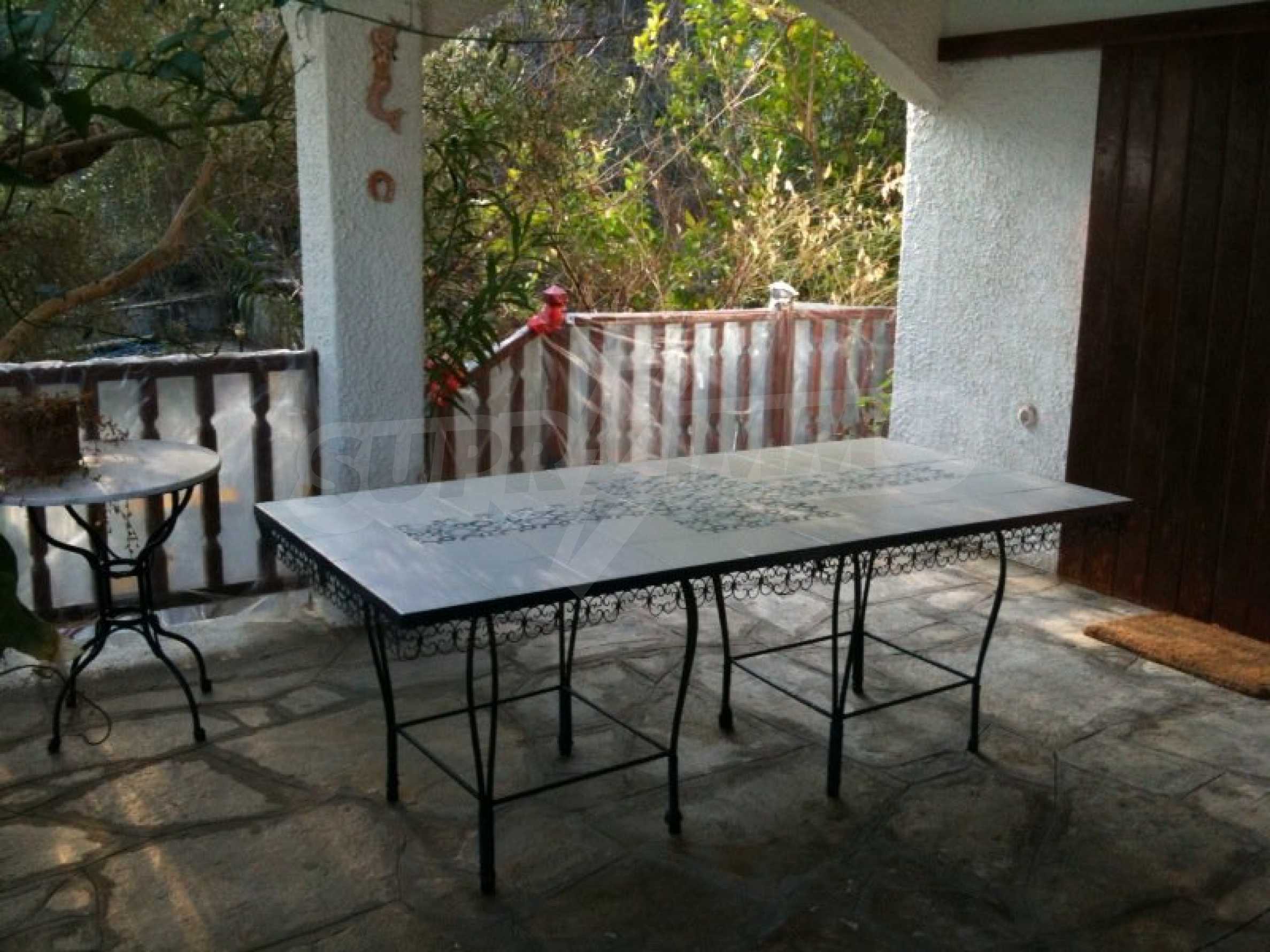 Дом площадью 375 кв.м. Предлагаемая недвижимость построена в 1967. Камин и локальное отопление. Деревянные оконные рамы и деревянные полы имеются в предлагаемой недвижимости. Недвижимость включает следующую мебель и оборудование: встроенная кухня. Из основных коммуникаций обеспечены септическая яма. Ванная комната с туалетом, кладовая, обозначенная стоянка, терраса и заасфальтированная дорога имеются в наличии среди прочих упомянутых характеристик предлагаемого объекта, что обеспечит дополнительные удобства для пользования. Виды на море открываются с недвижимости, раскрывая часть красот живописной Болгарии.