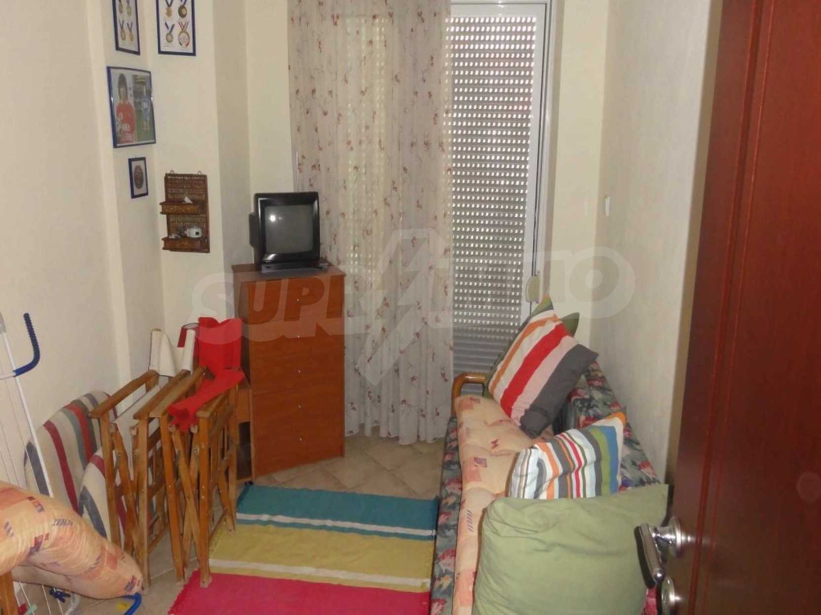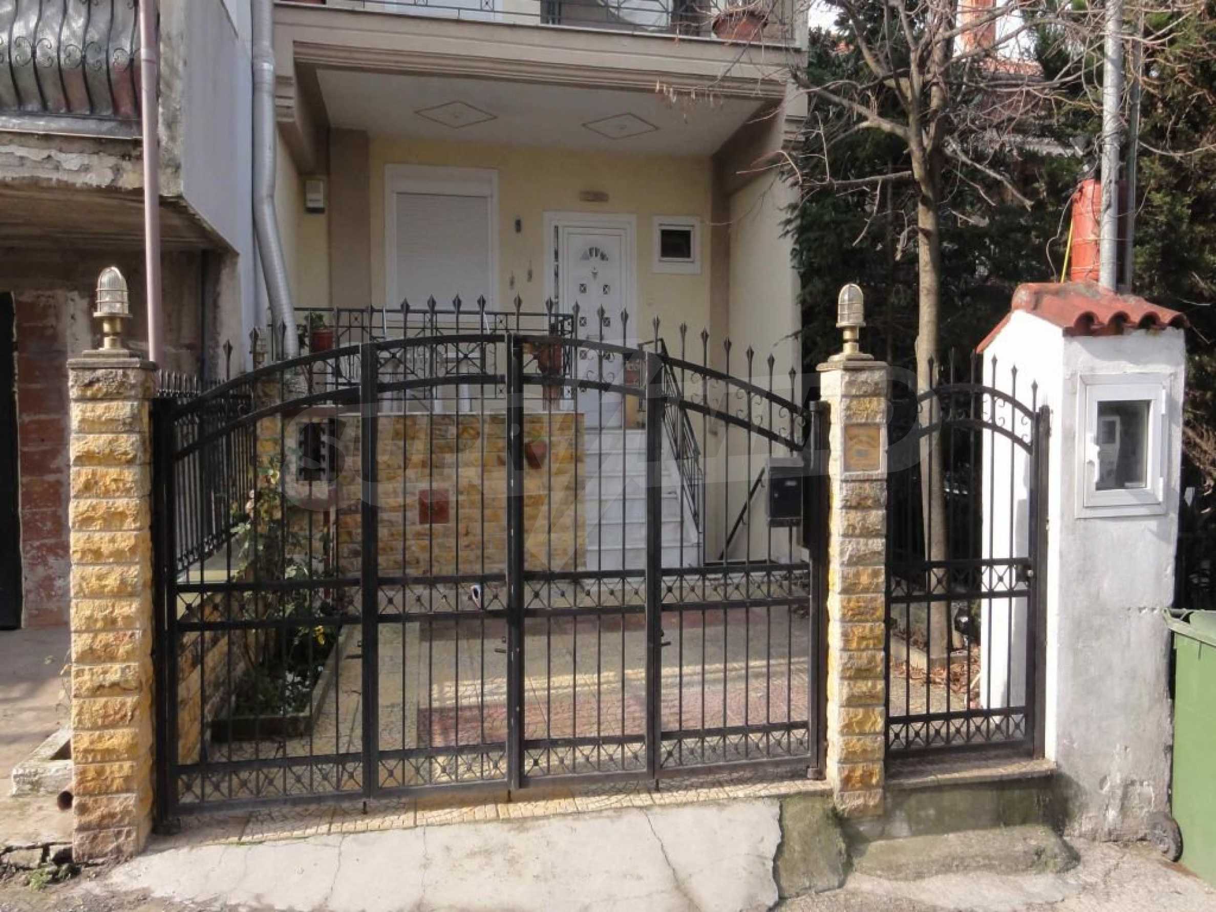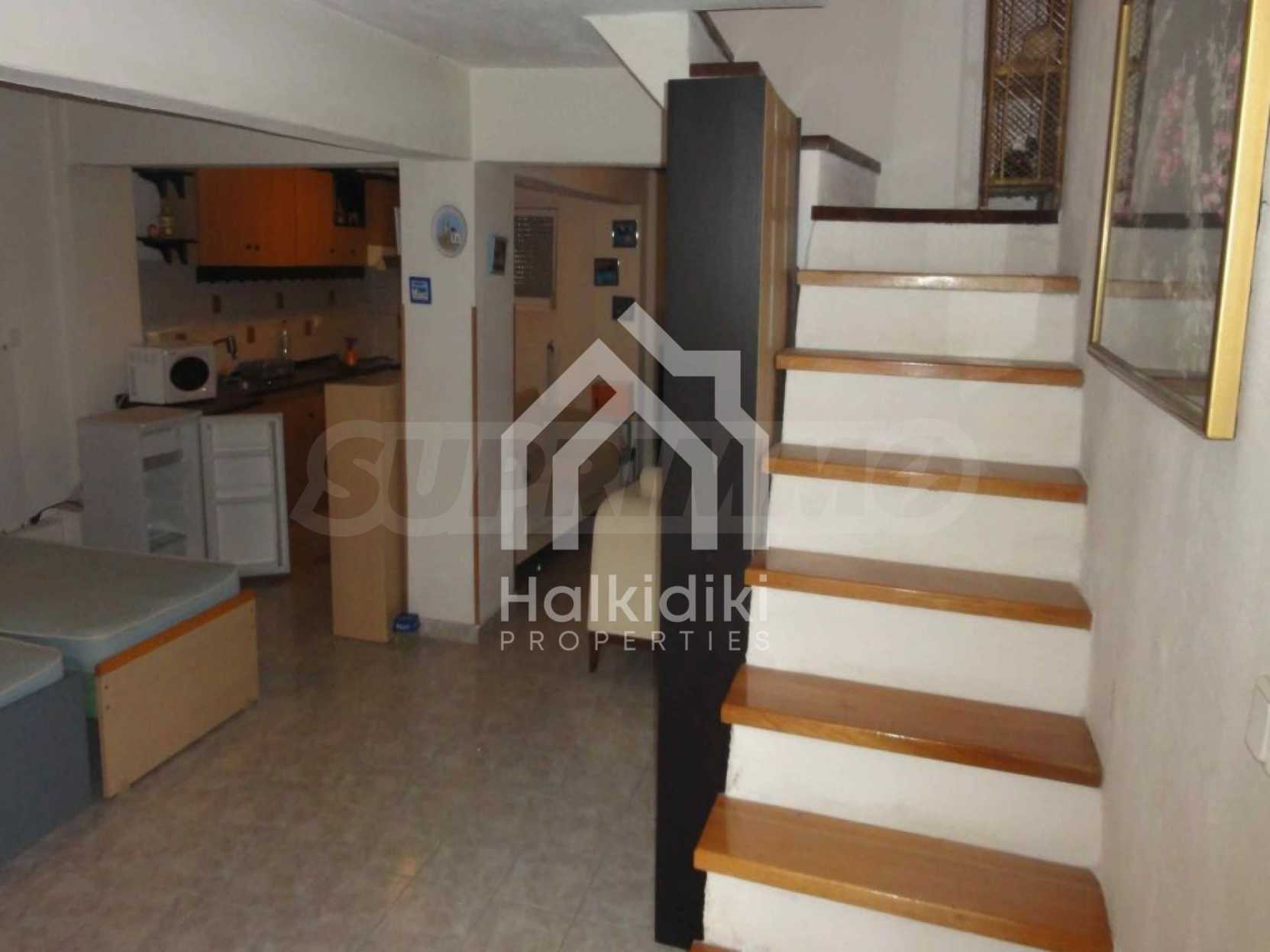 Частный дом в центральной части п-ова Кассандра площадью 215 кв.м. Дом состоит из основного места жительства (первый этаж и второй этаж, 118 кв.м), полуподвального этажа (60 кв.м.) и мансарды (36 кв.м.). Во дворе есть парковка и барбекю. Дом оснащен автономной системой отопления на всех этажах, тремя каминами (один на каждом этаже) и противомоскитными сетками. На первом этаже находится оборудованная кухня, гостиная со столовой и туалет. На втором этаже находятся три спальни и ванная комната и на цокольном этаже расположена гостиная , кухня, туалет, спальня, кладовая (12 кв.м). Дом был построен в 2004 и находится в отличном состоянии.