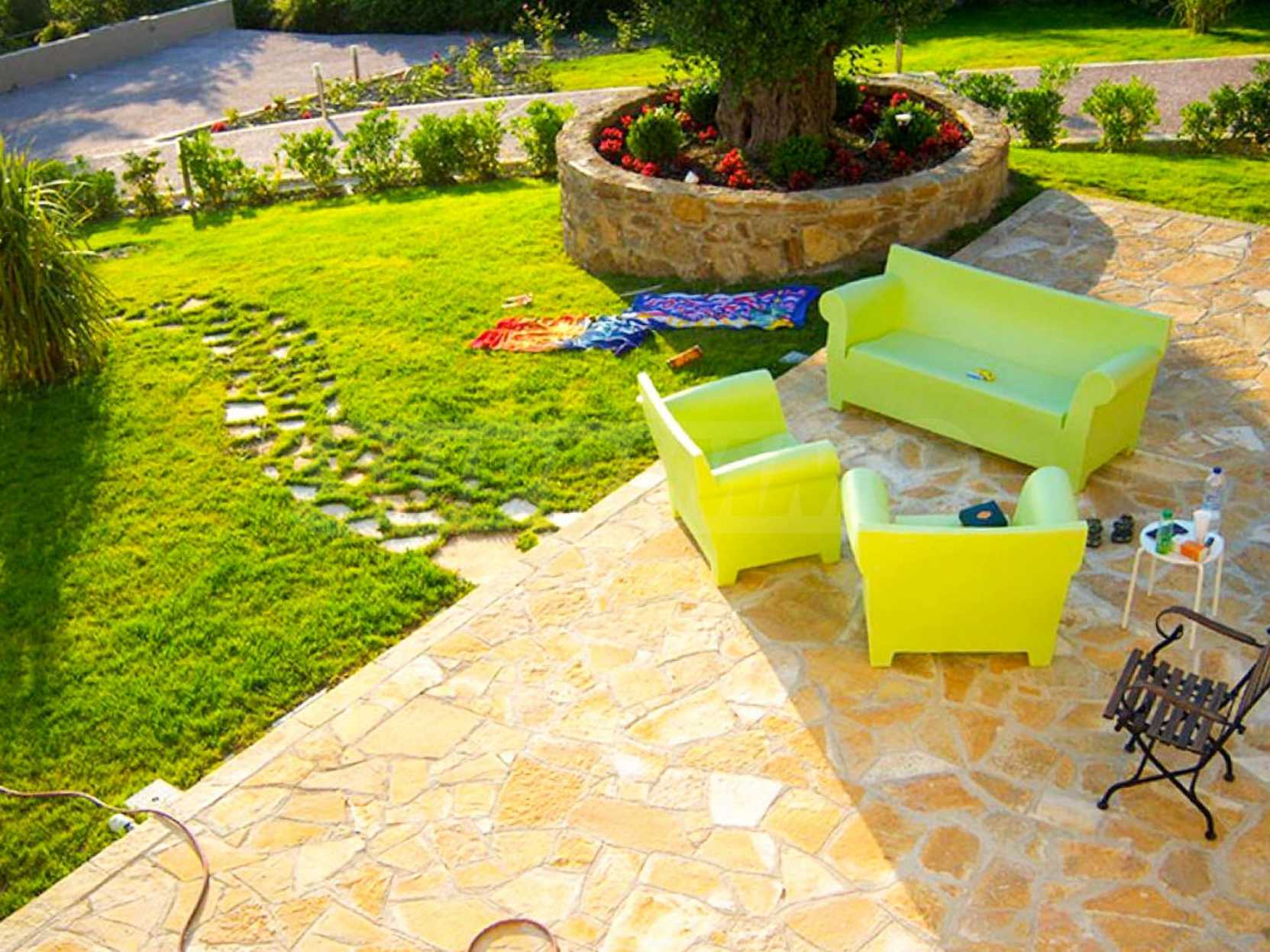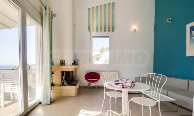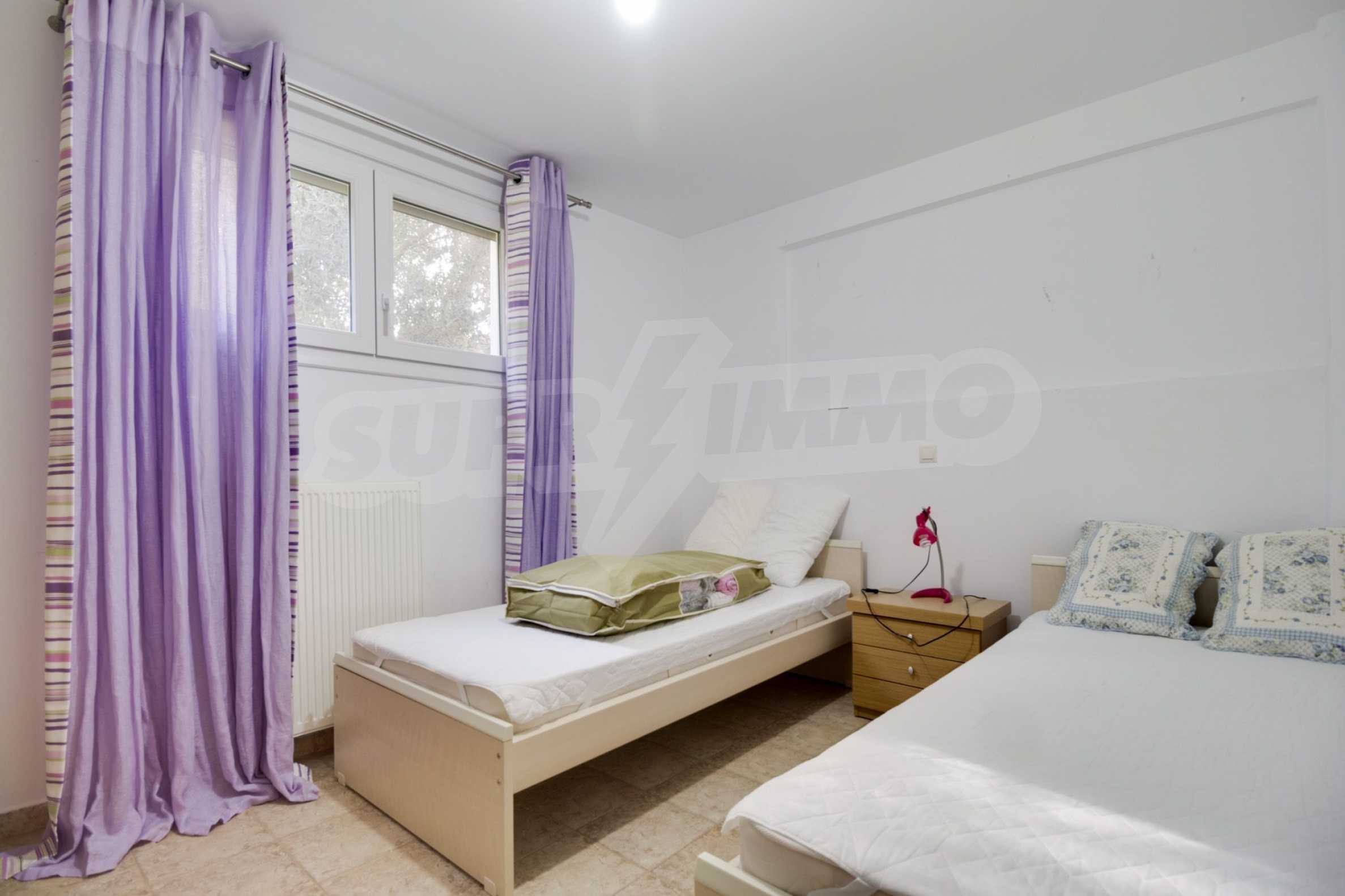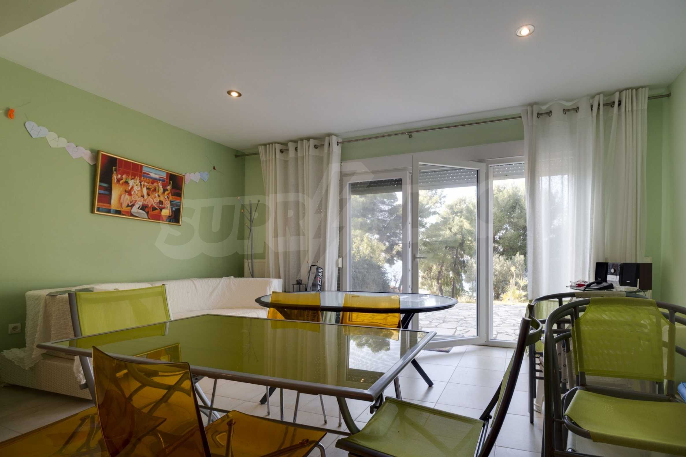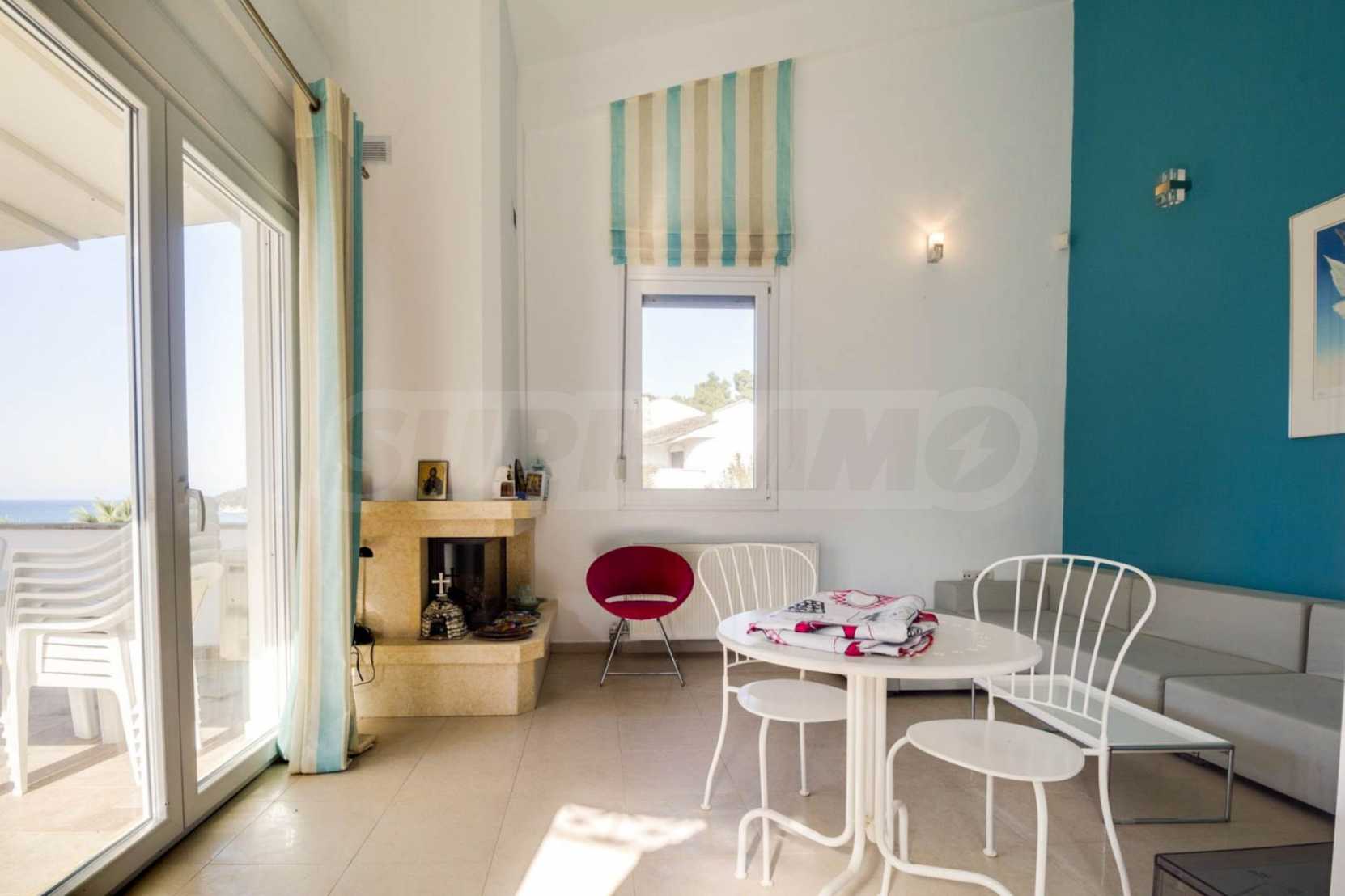 Дом площадью 190 кв. метров. Предлагаемая недвижимость построена в 2006. Камин и локальное отопление. Обеспечено кондиционирование следующего типа: система кондиционирования. Алюминиевые окна и армированная входная дверь имеются в предлагаемой недвижимости. Недвижимость включает следующую меблировку и оборудование: бойлер электрический и кондиционер. Из основных коммуникаций обеспечены септическая яма. Ванная комната с туалетом, кладовая, обозначенная стоянка, подвал, заасфальтированная дорога и система охранной сигнализации имеются в наличии среди прочих характеристик предлагаемого объекта, что обеспечит дополнительный комфорт для пользования. Виды на море открываются с недвижимости, раскрывая часть красот живописной Болгарии.