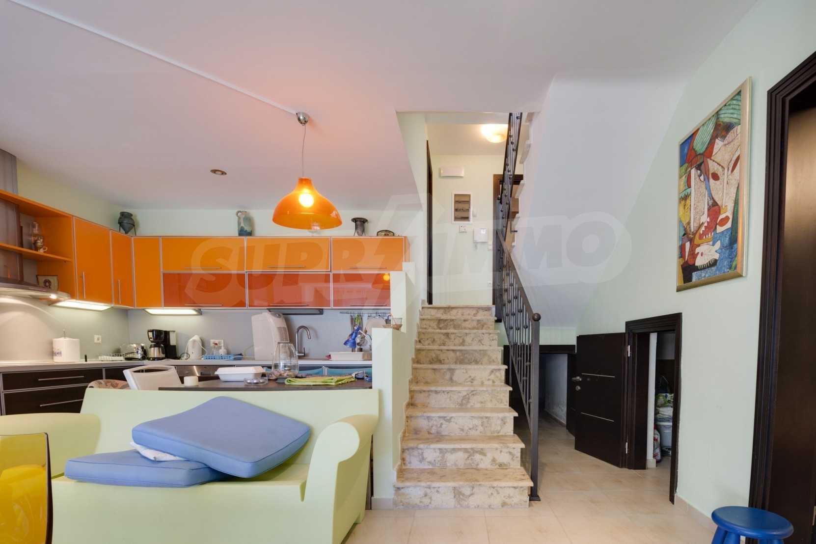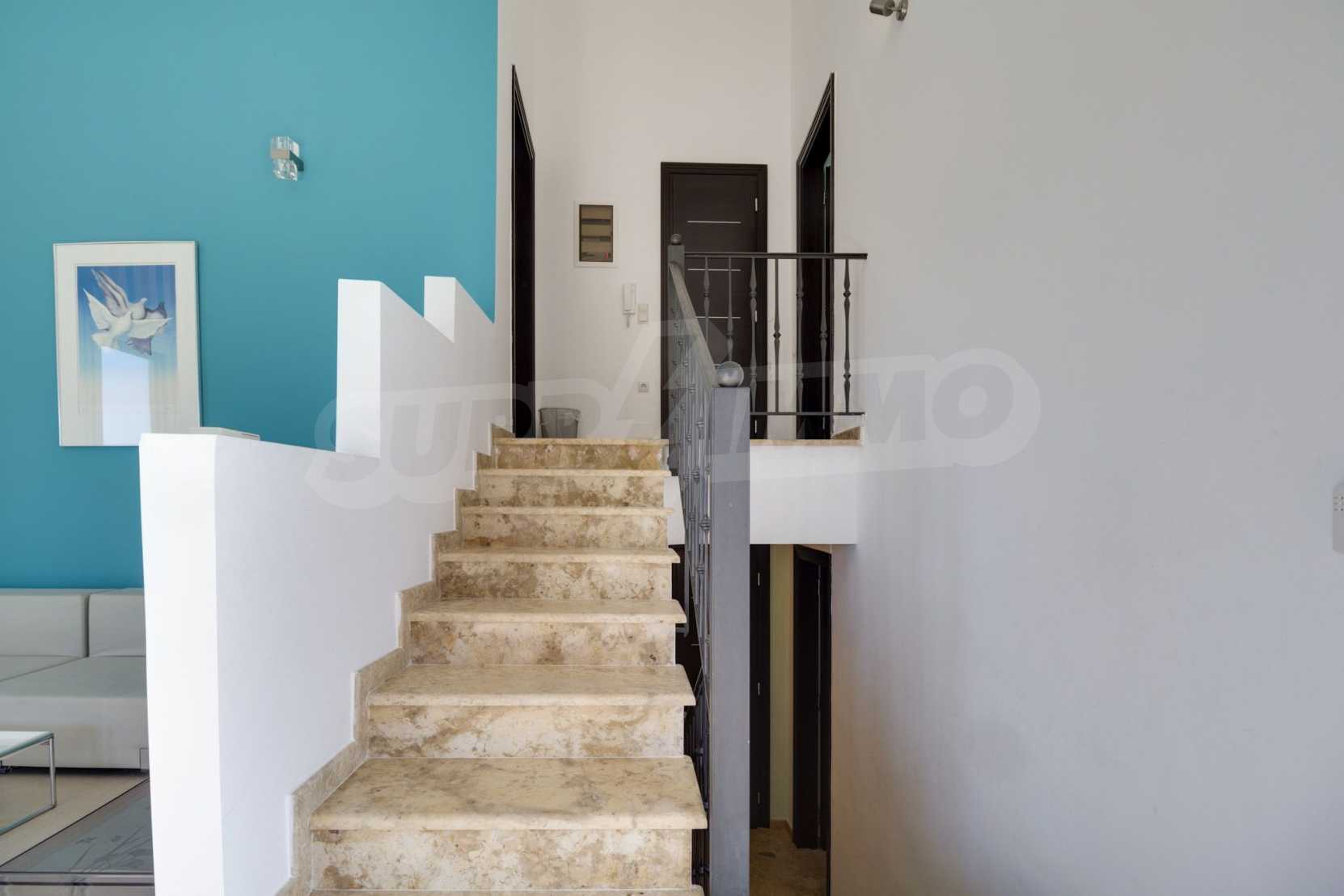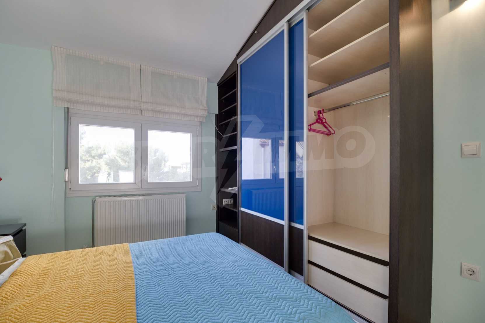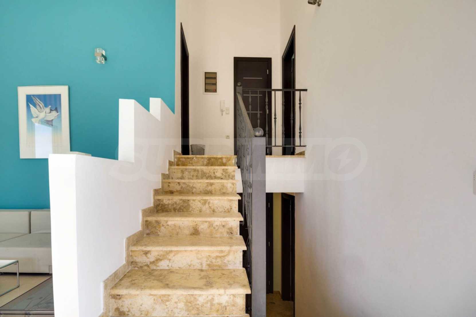 Дом площадью 190 кв. метров. Предлагаемая недвижимость построена в 2006. Камин и локальное отопление. Обеспечено кондиционирование следующего типа: система кондиционирования. Алюминиевые окна и армированная входная дверь имеются в предлагаемой недвижимости. Недвижимость включает следующую меблировку и оборудование: бойлер электрический и кондиционер. Из основных коммуникаций обеспечены септическая яма. Ванная комната с туалетом, кладовая, обозначенная стоянка, подвал, заасфальтированная дорога и система охранной сигнализации имеются в наличии среди прочих характеристик предлагаемого объекта, что обеспечит дополнительный комфорт для пользования. Виды на море открываются с недвижимости, раскрывая часть красот живописной Болгарии.