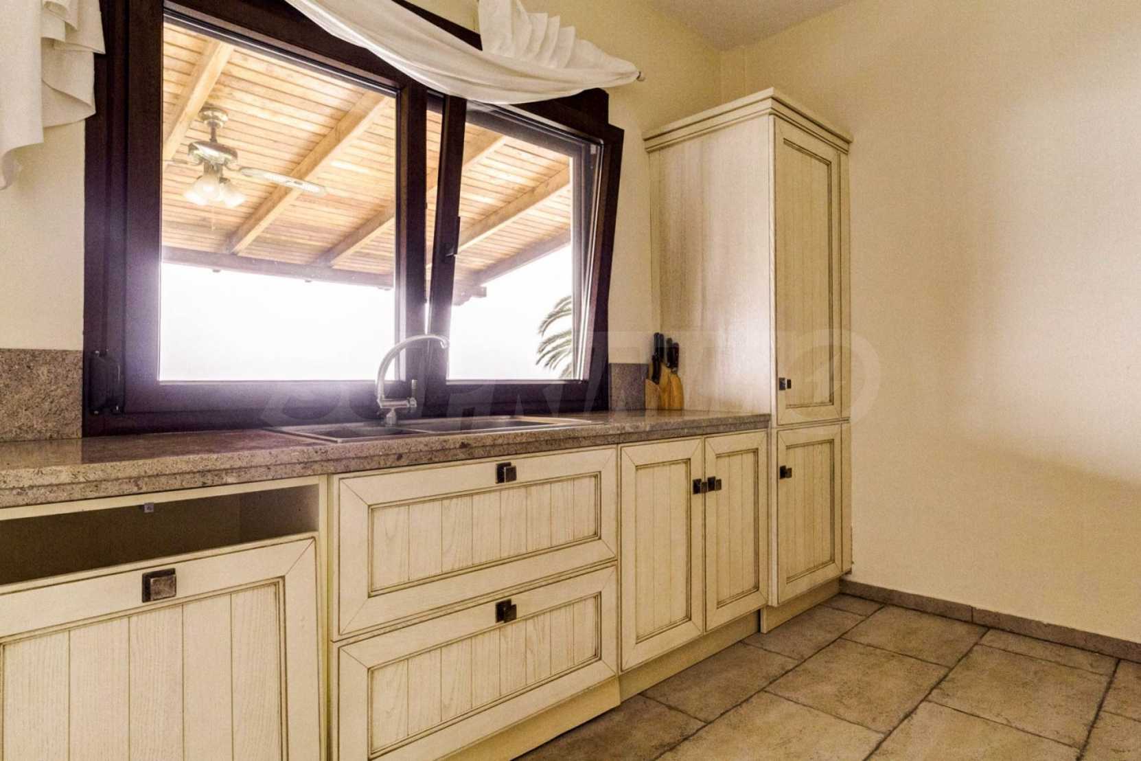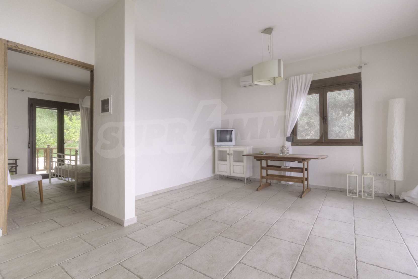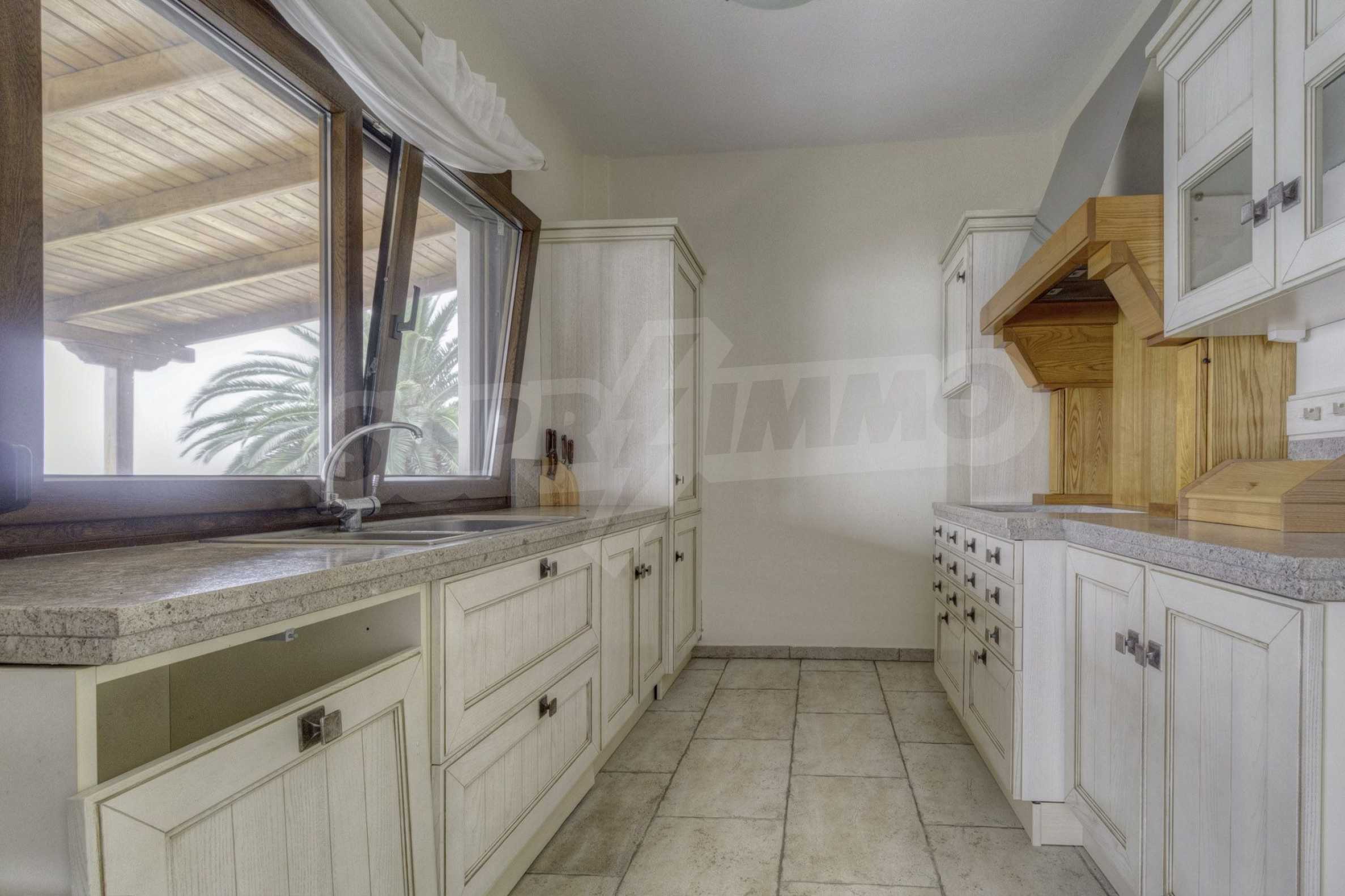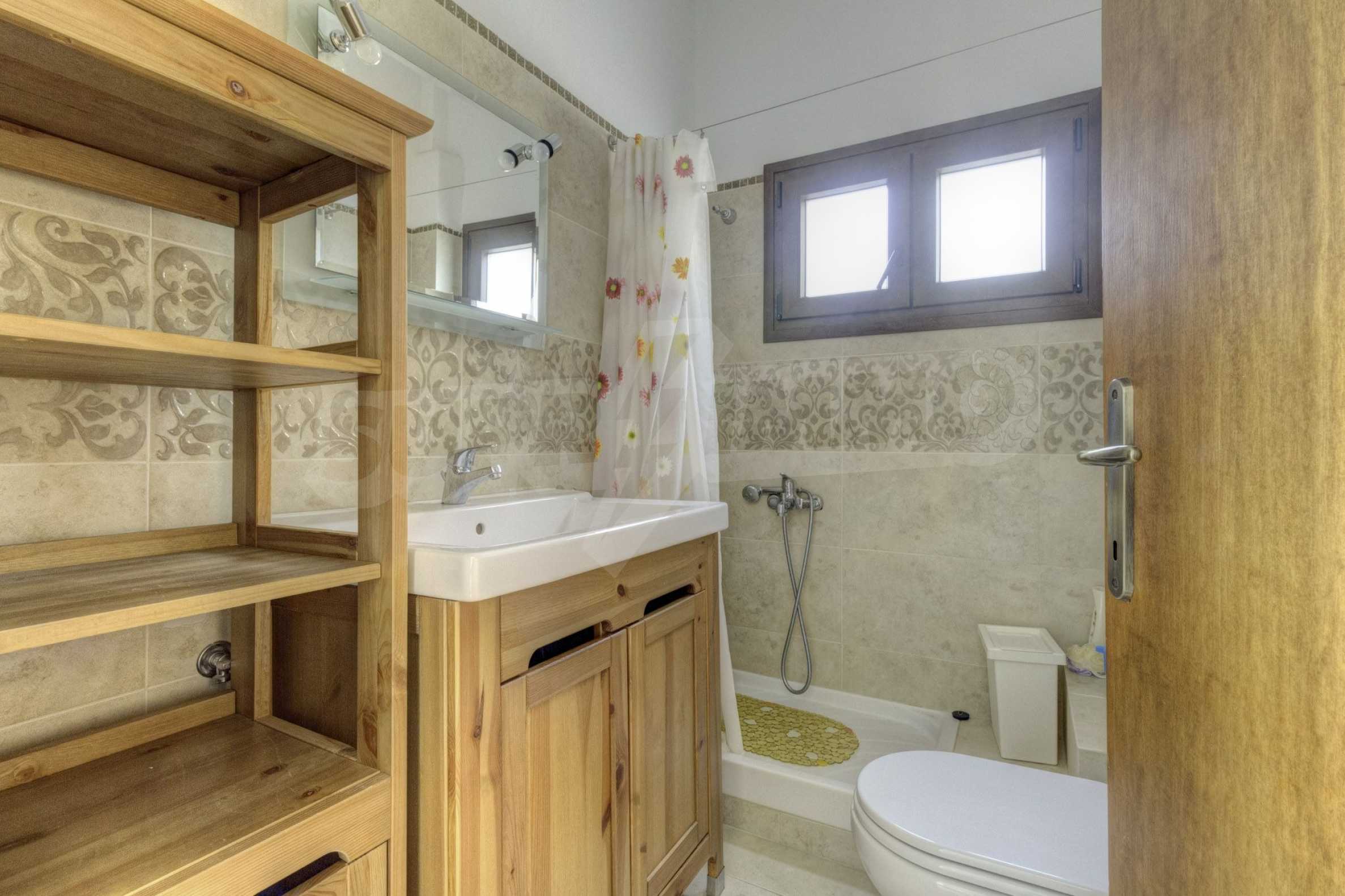 Дом площадью 150 кв. метров. Предлагаемая недвижимость построена в 1995. Обеспечено кондиционирование следующего типа: система кондиционирования. Армированная входная дверь имеются в предлагаемой недвижимости. Недвижимость включает следующую меблировку и оснащение: бойлер электрический, встроенная кухня и кондиционер. Из основных коммуникаций обеспечены септическая яма. Ванная комната с туалетом, кладовая, обозначенная стоянка, грунтовая дорога и система охранной сигнализации имеются в наличии среди прочих перечисленных характеристик предлагаемого объекта, что обеспечит дополнительный комфорт для пользования. Виды на море открываются с недвижимости, раскрывая часть красот живописной Болгарии.