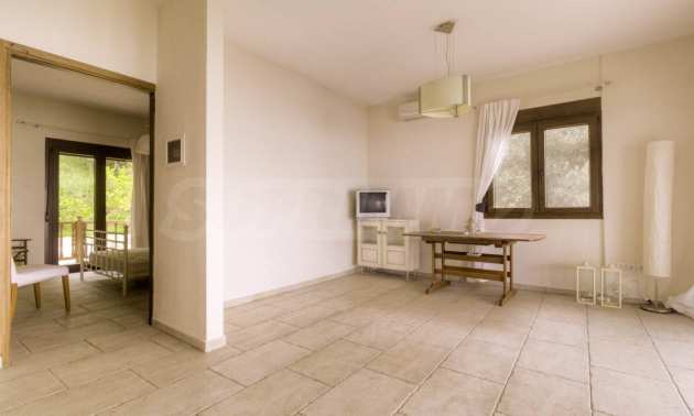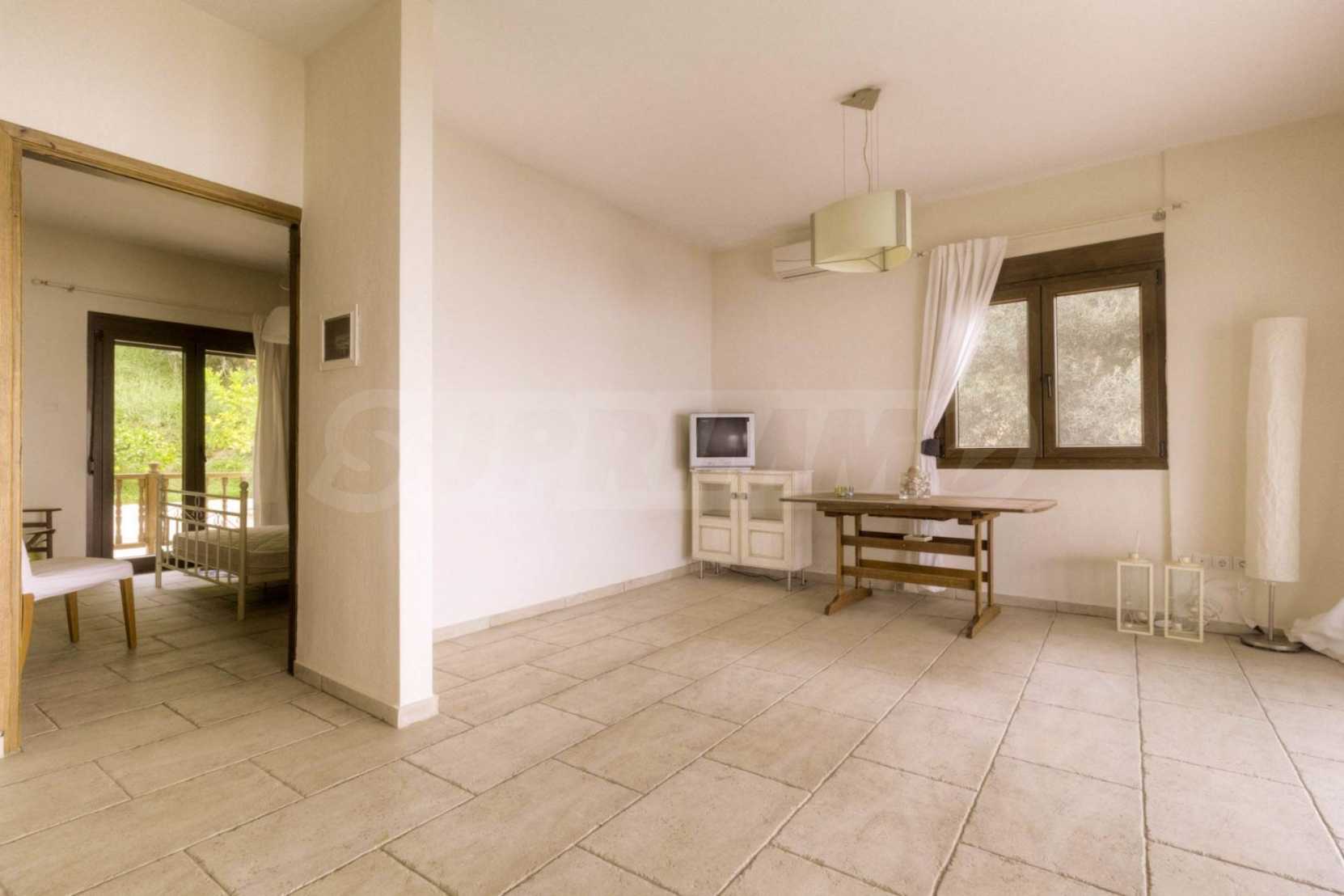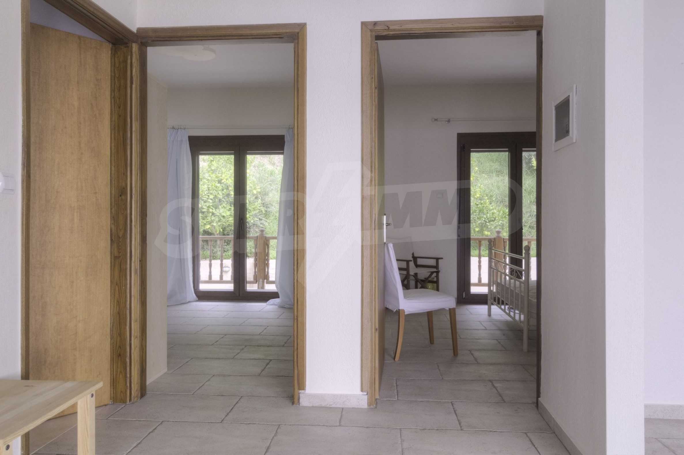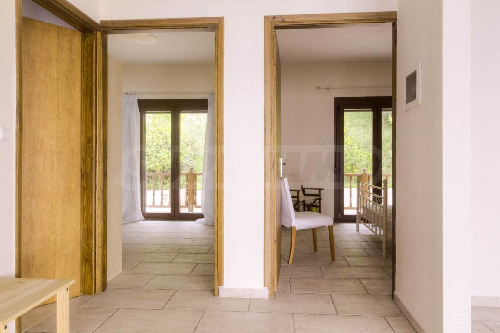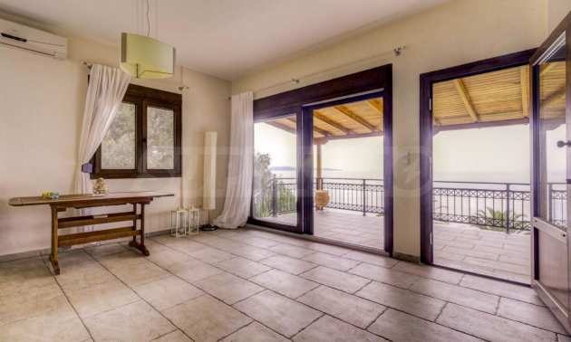 Дом площадью 150 кв. метров. Предлагаемая недвижимость построена в 1995. Обеспечено кондиционирование следующего типа: система кондиционирования. Армированная входная дверь имеются в предлагаемой недвижимости. Недвижимость включает следующую меблировку и оснащение: бойлер электрический, встроенная кухня и кондиционер. Из основных коммуникаций обеспечены септическая яма. Ванная комната с туалетом, кладовая, обозначенная стоянка, грунтовая дорога и система охранной сигнализации имеются в наличии среди прочих перечисленных характеристик предлагаемого объекта, что обеспечит дополнительный комфорт для пользования. Виды на море открываются с недвижимости, раскрывая часть красот живописной Болгарии.