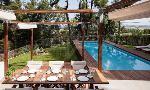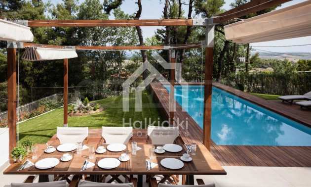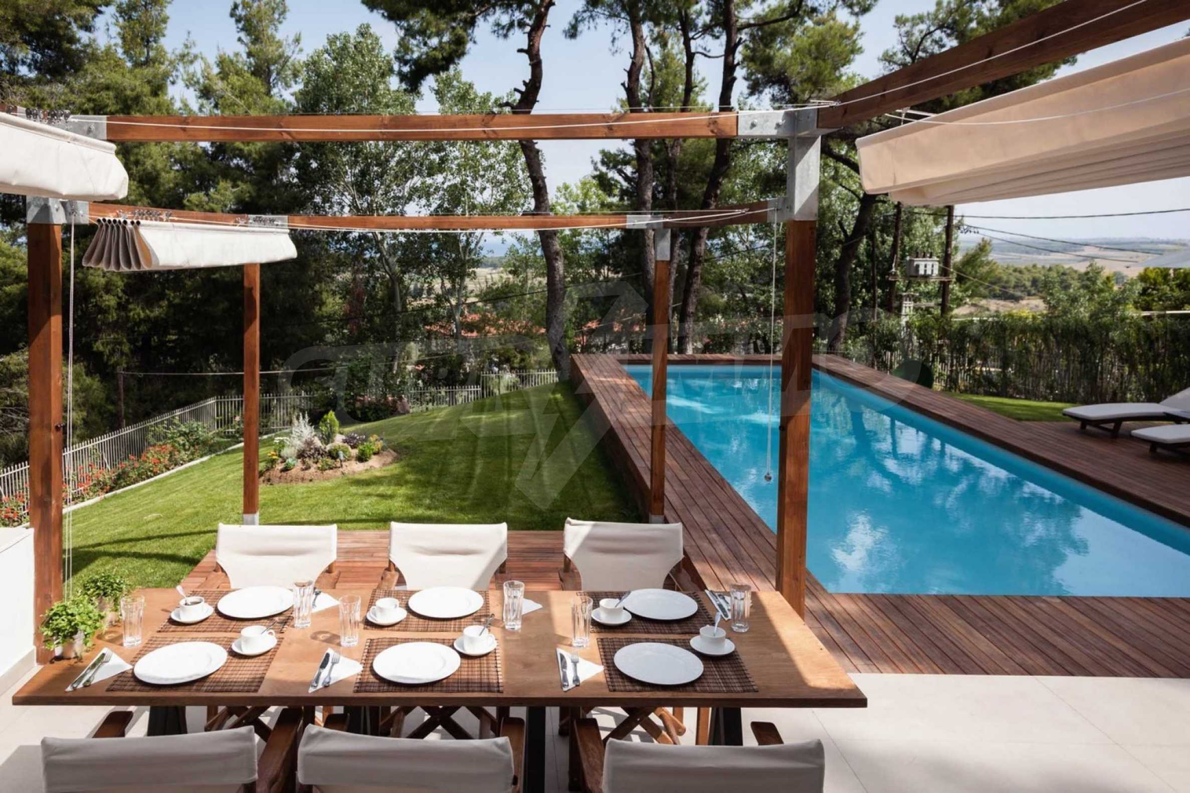 Вилла, Кассандра, 330 m, Вид на горы, Беспрепятственный вид, Вид на сад , Открытый вид, Угловое здание , За пределами деревни, Вид на горы, Вид на море, Светлое помещение, арковка, Автоматический полив, Ландшафтный дизайн экстерьера , Спутниковое телевиденье, Встроенные шкафы, Встроенная кухня, Частный бассейн, Меблированное помещение, Бытовые приборы, Бойлер, Услуги садовника, Беседка, Большой сад, Барбекю, Бронированная дверь, Антимоскитные сетки, Преустановка системы безопасности, Джакузи , Без НДС, Отреставрированное помещение, Частный дом, Просторное помещение, Роскошный дизайн, Современная постройка
