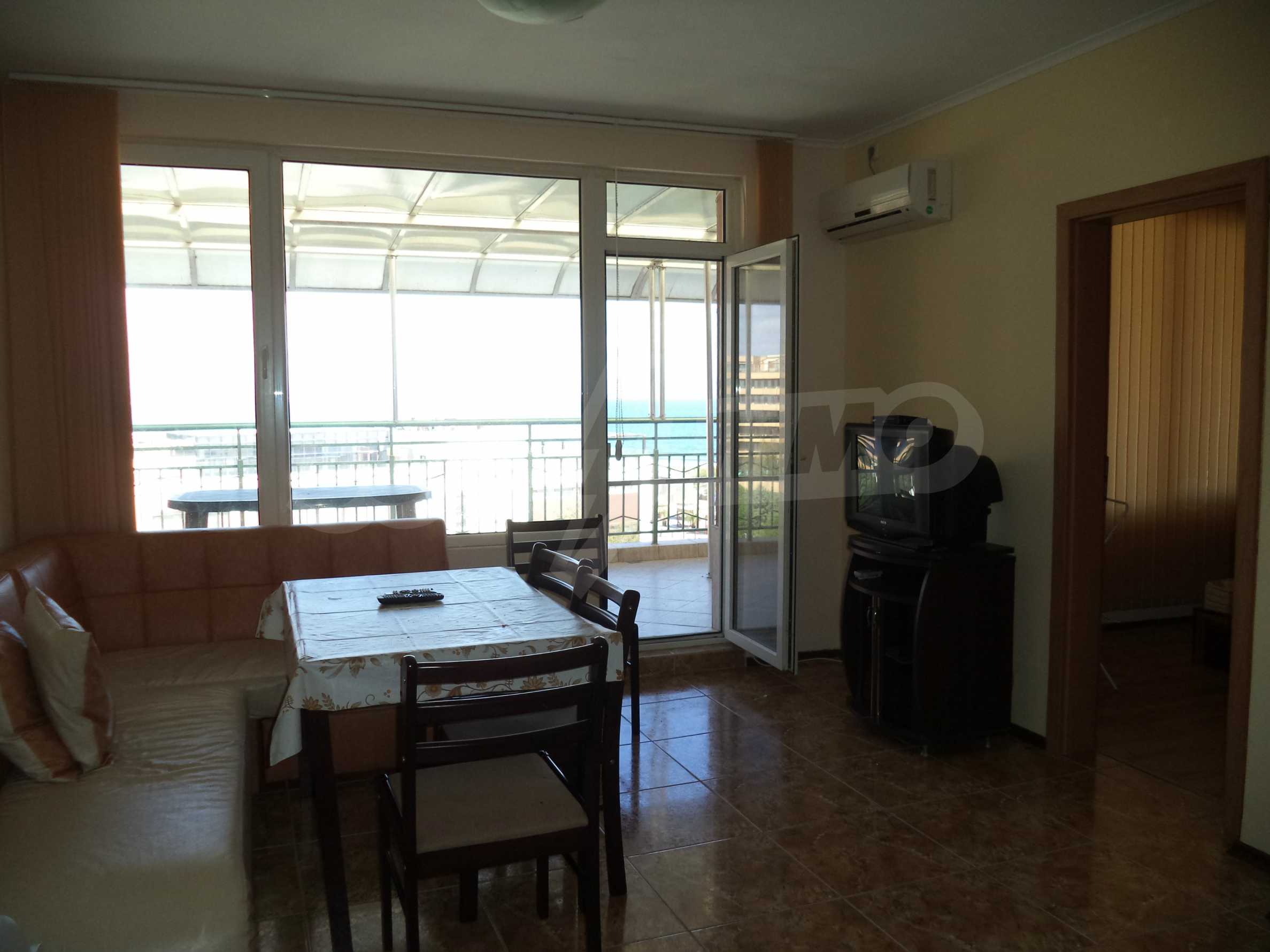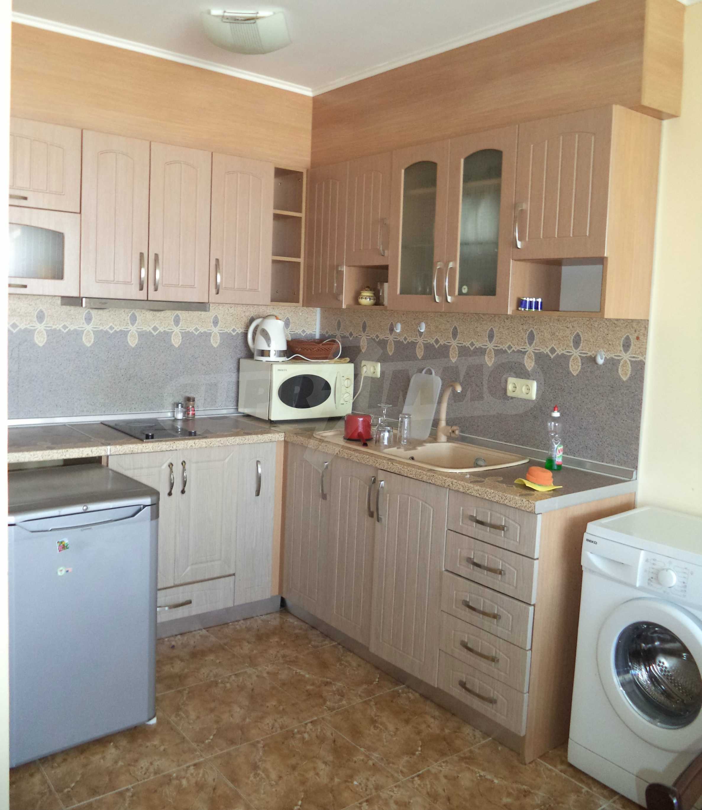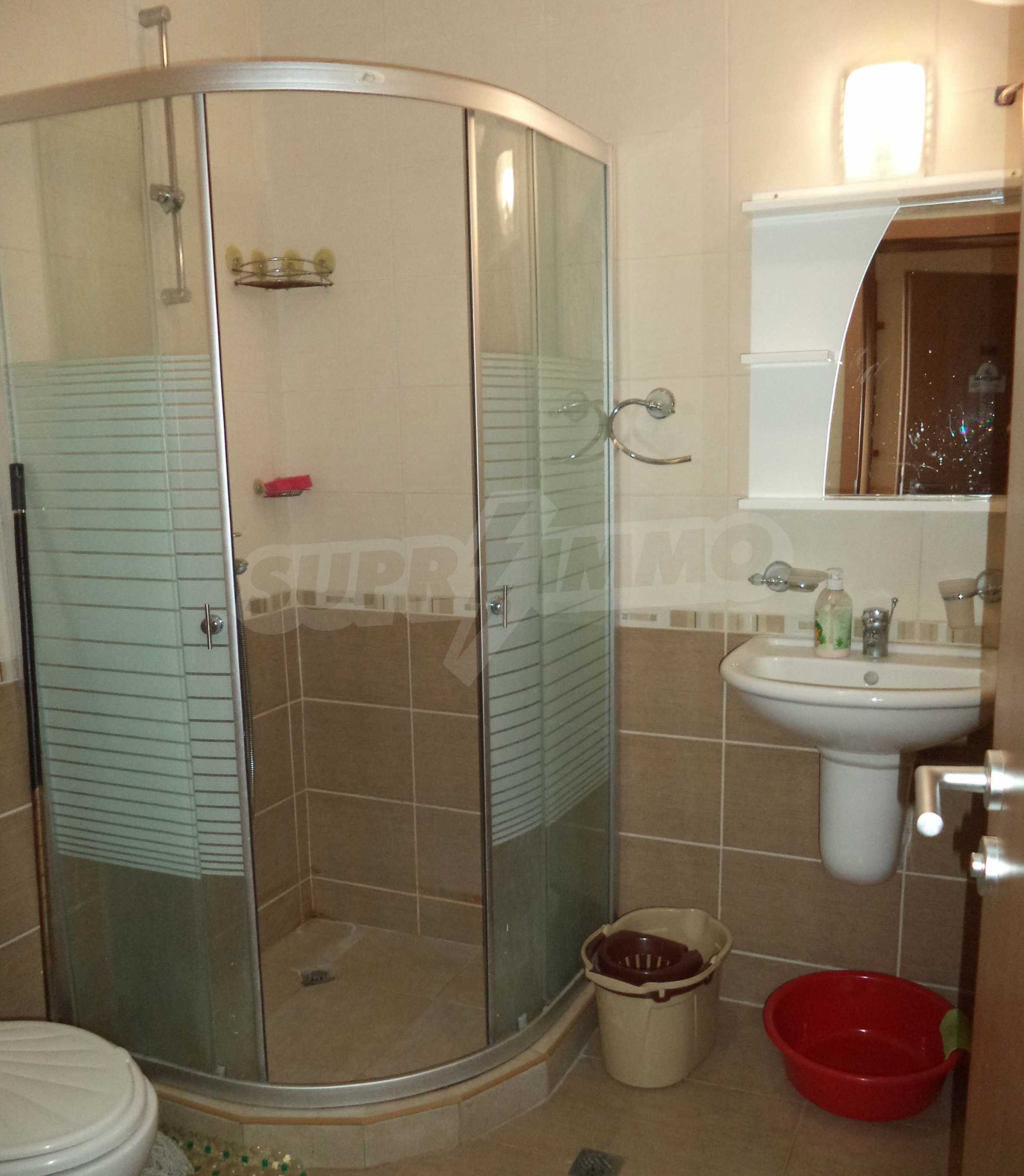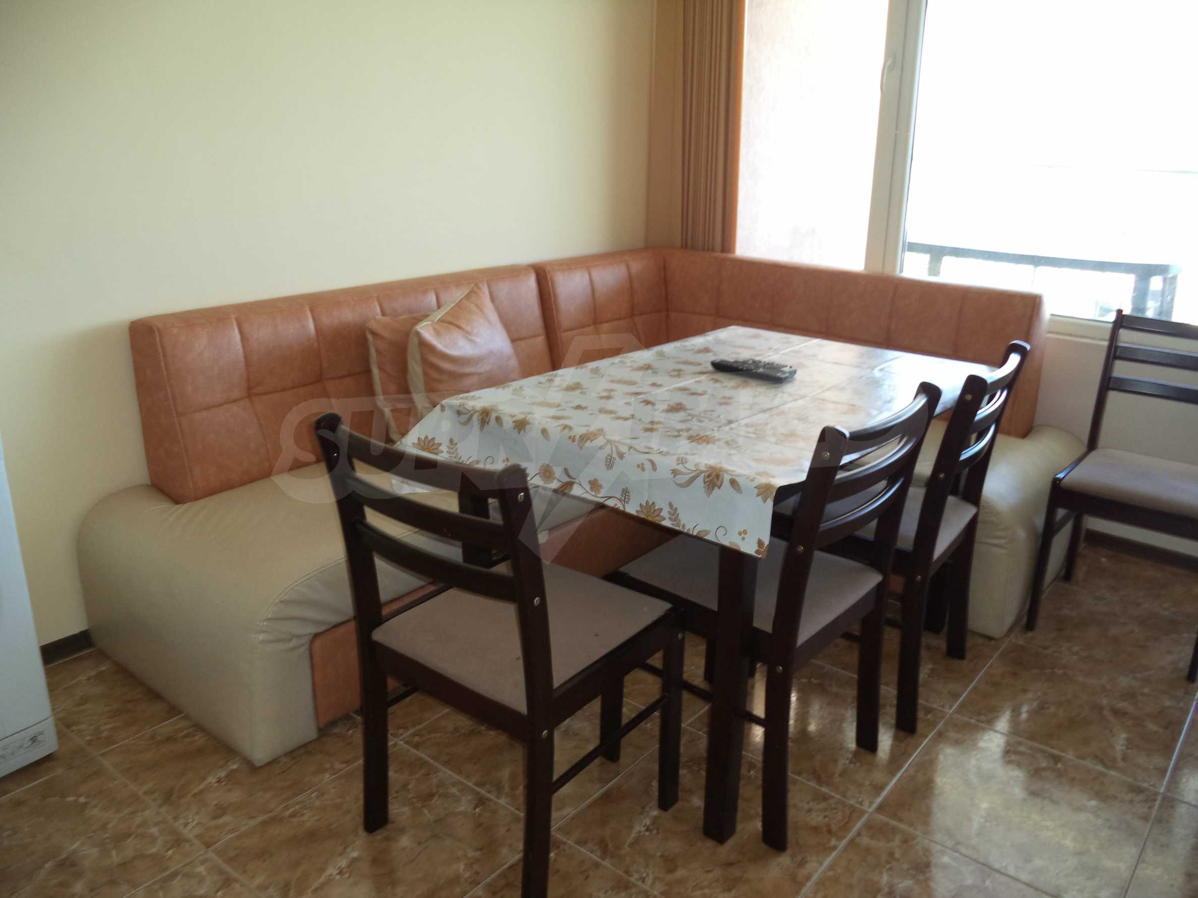 Двухкомнатная квартира площадью 75 кв. метров. Отопление кондиционером. Ламинированный пол, окна пвх, покрашенные стены и терракотовый пол имеются в предлагаемой недвижимости. Недвижимость включает следующую меблировку и оснащение: вытяжка, душевая, кондиционер, меблировку, оборудованная ванная комната, стиральная машина и холодильник. Из основных коммуникаций обеспечены электричество, вода и канализация. Ванная комната с туалетом, кладовая, терраса и лифт имеются в наличии среди прочих перечисленных указанных упомянутых характеристик предлагаемого объекта, что обеспечит дополнительный комфорт для пользования. Виды на море открываются с недвижимости, раскрывая часть красот живописной Болгарии.
