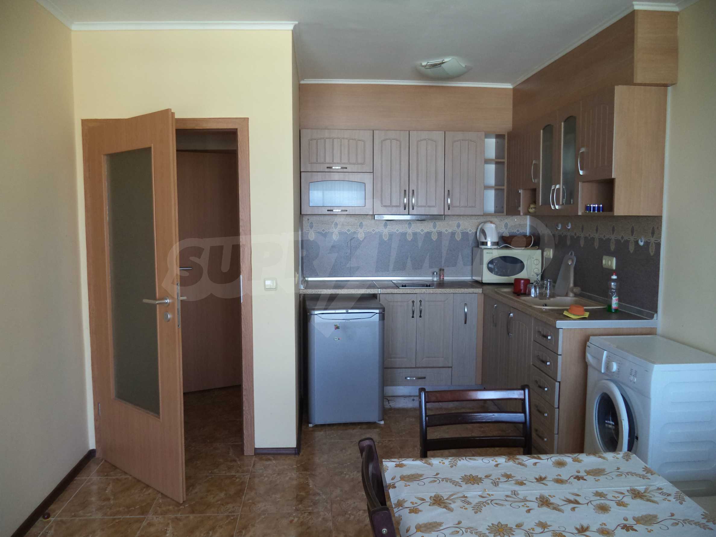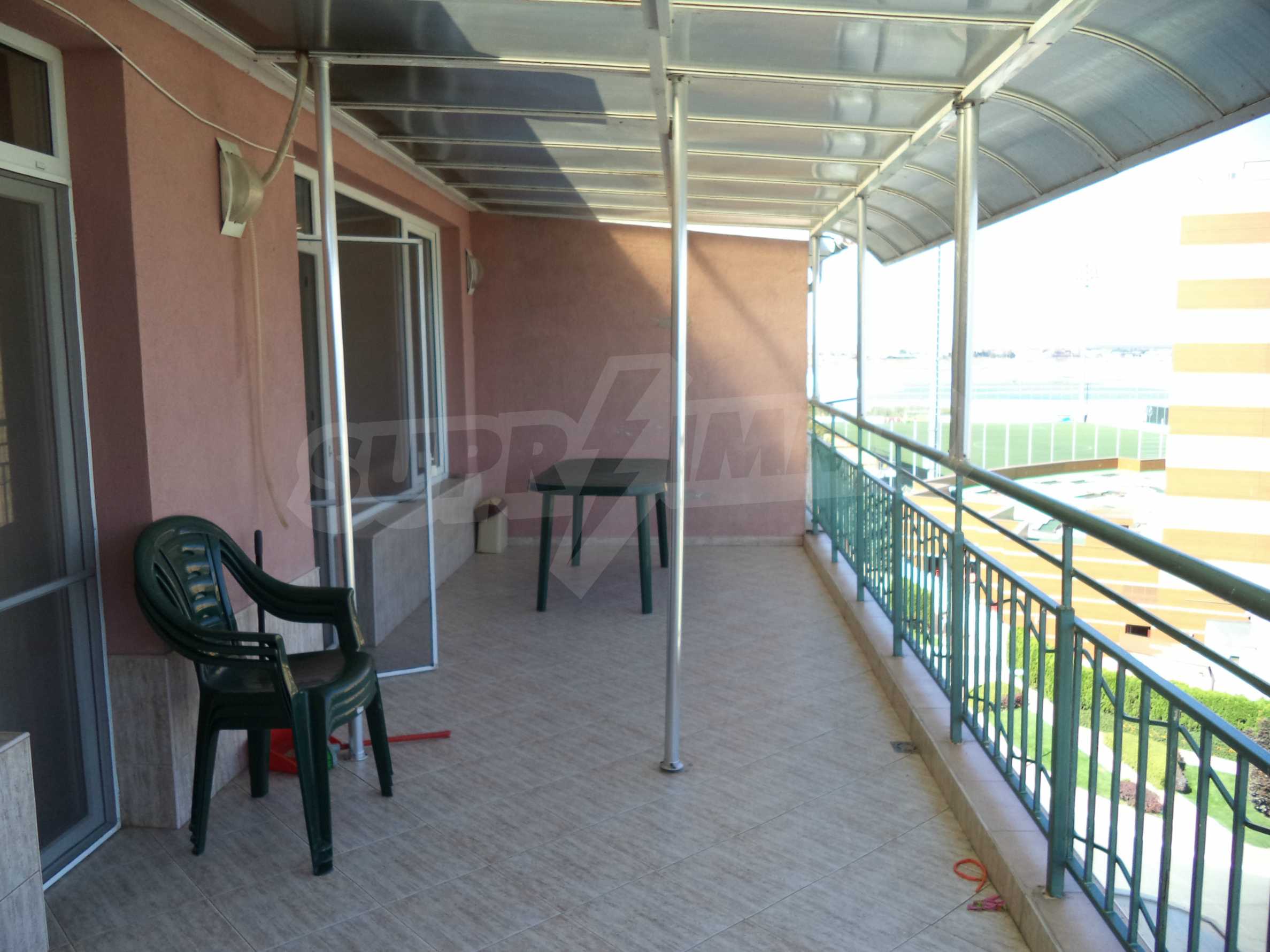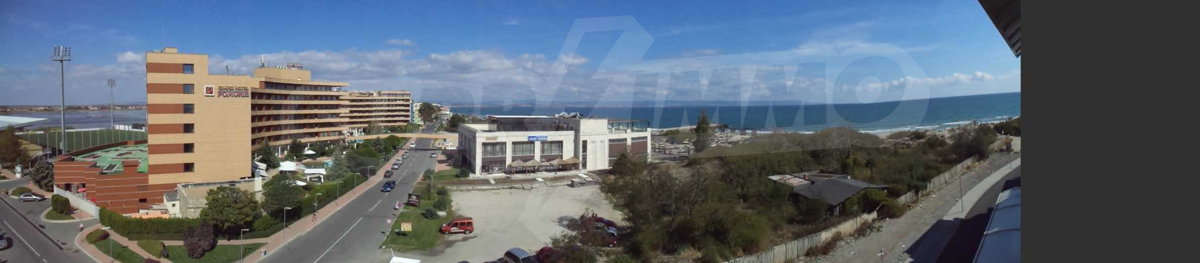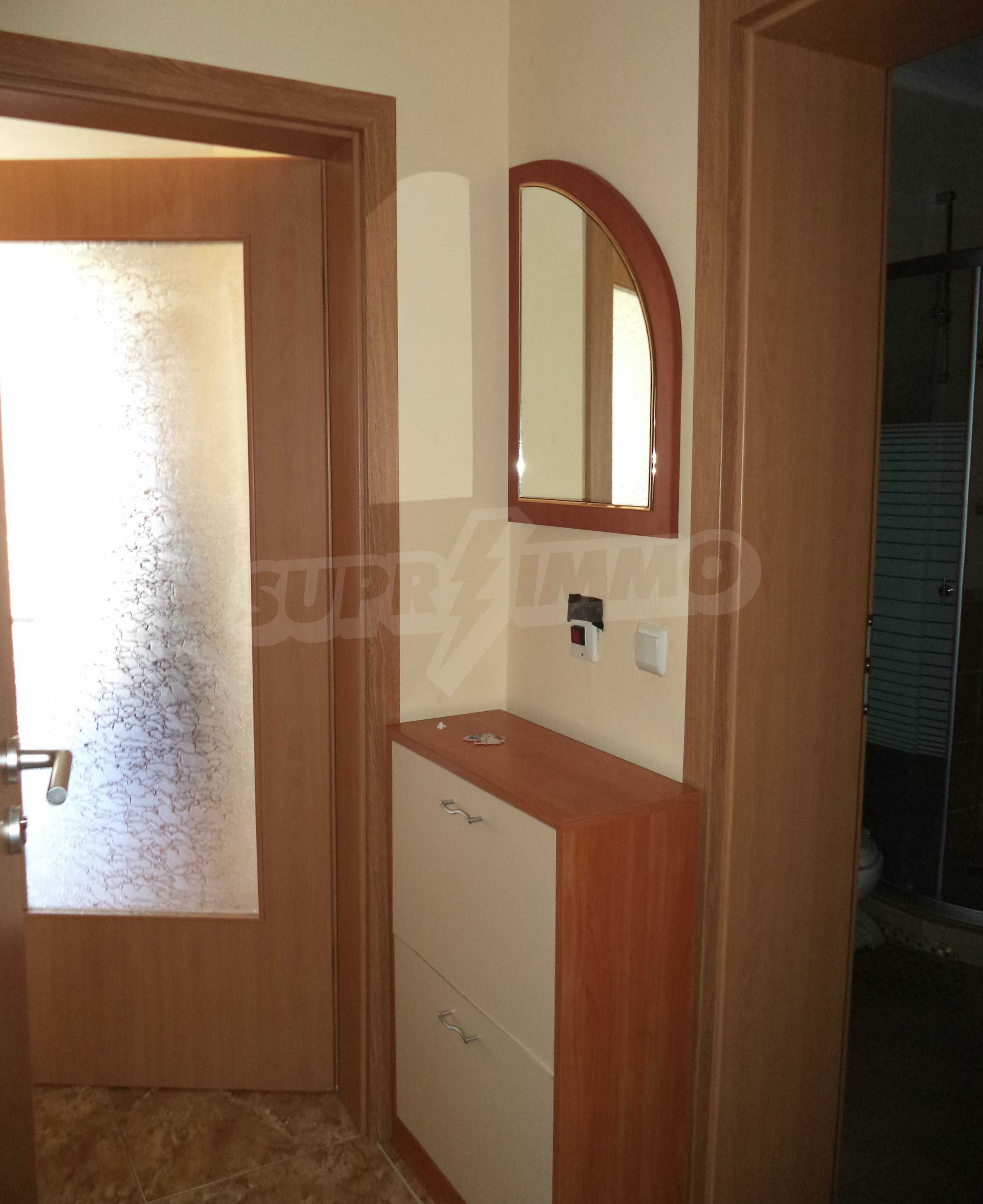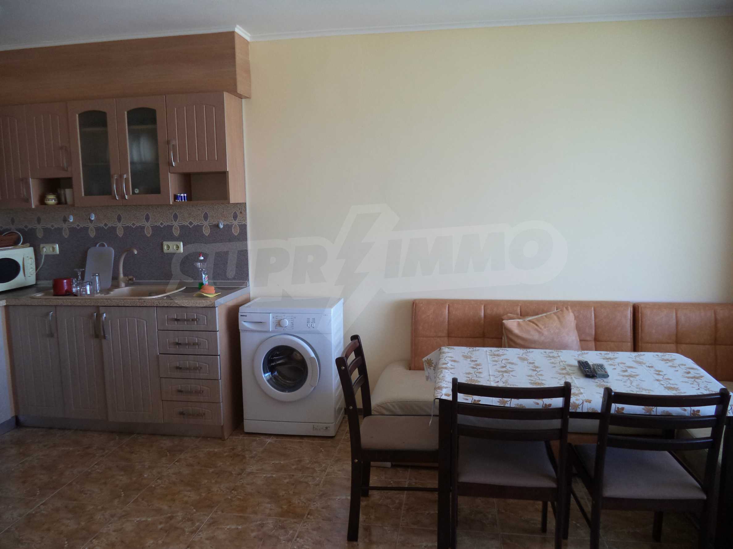 Двухкомнатная квартира площадью 75 кв. метров. Отопление кондиционером. Ламинированный пол, окна пвх, покрашенные стены и терракотовый пол имеются в предлагаемой недвижимости. Недвижимость включает следующую меблировку и оснащение: вытяжка, душевая, кондиционер, меблировку, оборудованная ванная комната, стиральная машина и холодильник. Из основных коммуникаций обеспечены электричество, вода и канализация. Ванная комната с туалетом, кладовая, терраса и лифт имеются в наличии среди прочих перечисленных указанных упомянутых характеристик предлагаемого объекта, что обеспечит дополнительный комфорт для пользования. Виды на море открываются с недвижимости, раскрывая часть красот живописной Болгарии.
