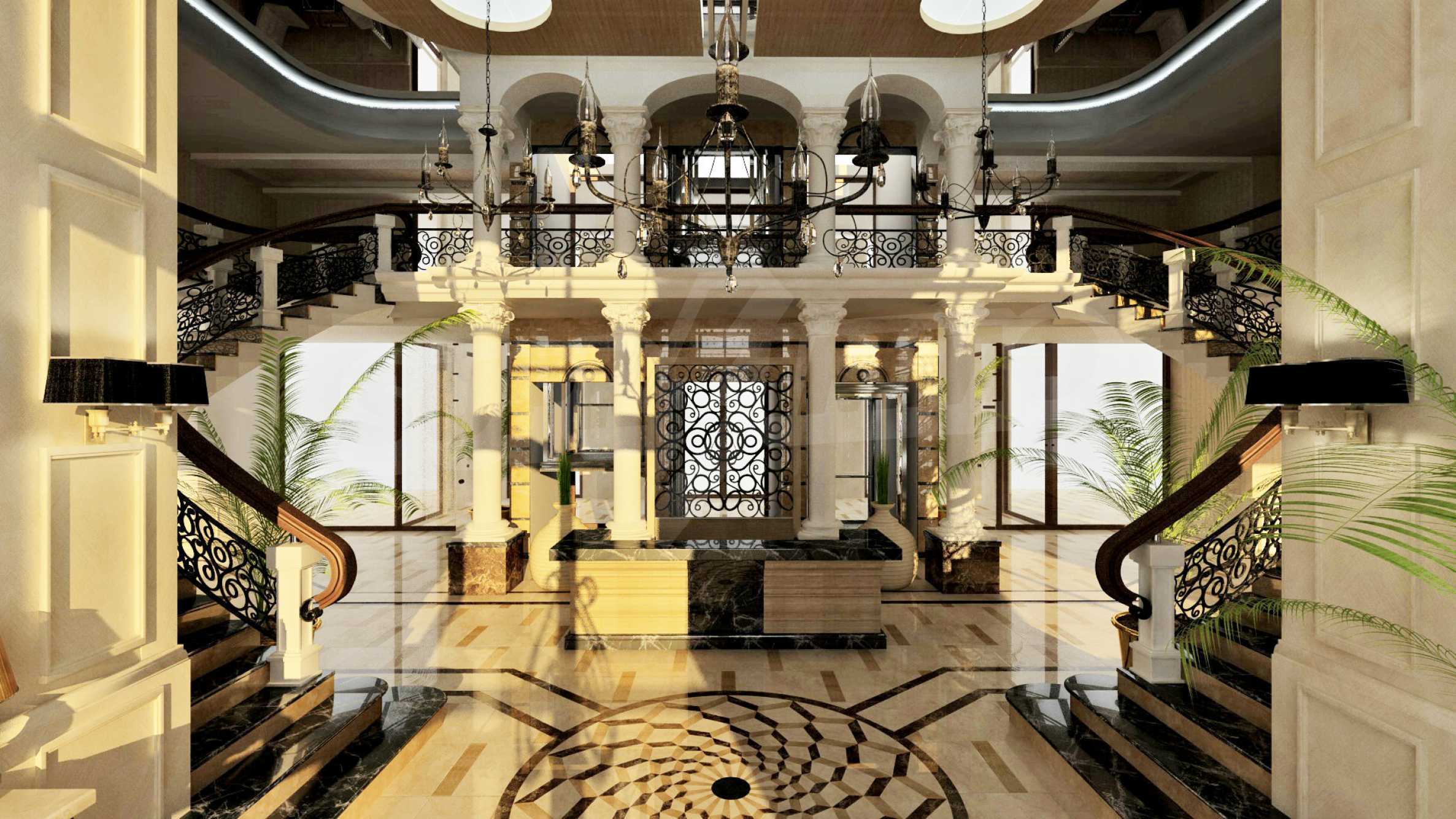 Места общего пользования будут отделаны по высшему классу: мрамор, ковролин, покраска, обои, картины и панорамные окна.