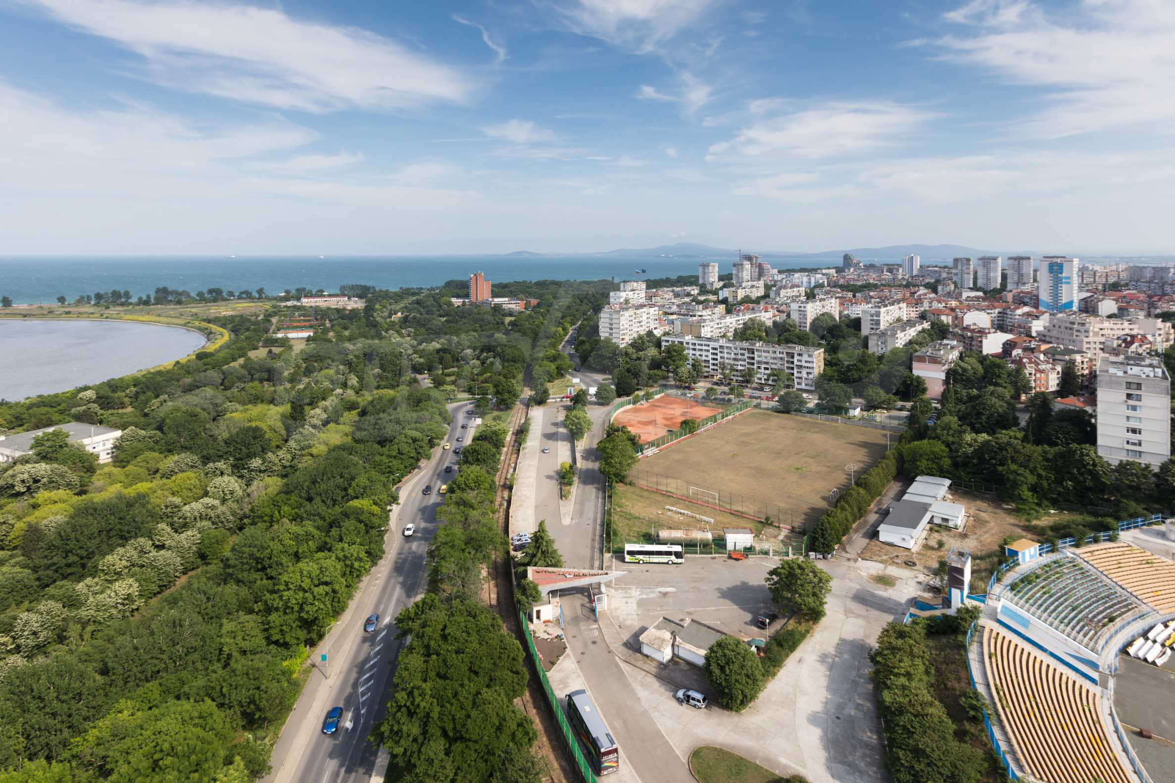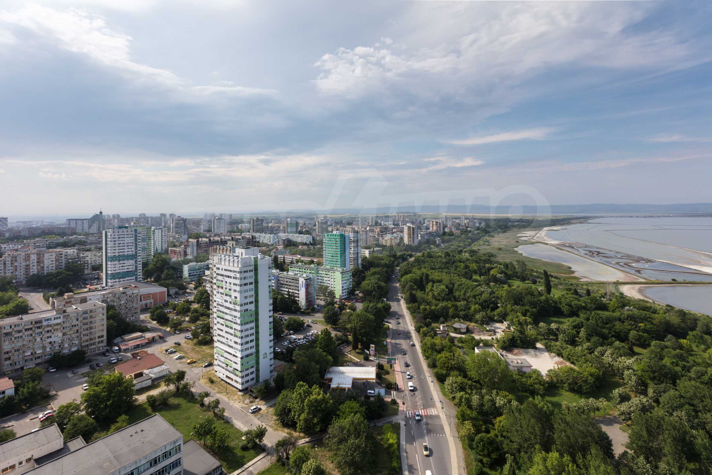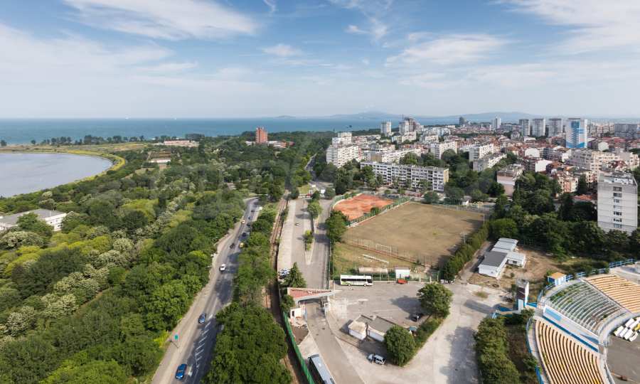 Элитная резиденция «Лазурный берег» находится в ж.р. Зорница, который является одним из самых предпочитаемых мест для проживания из-за непосредственной близости к пляжу и знаменитому Приморскому саду, являющимся излюбленным местом отдыха горожан и гостей города! Благодаря такому расположению из большинства квартир будет открываться роскошный фронтальный и боковой панорамный вид на морские просторы и Атанасовское озеро! За несколько минут Вы сможете очутиться не только на пляже и в Приморском саду, но и в центре города. На расстоянии 5 минут находятся гипер- и супермаркеты «Carrefour», «Metro», «Lidl» и крупные торговые центры «Галерея», «Плаза» и «Strand». В непосредственной близости имеется все необходимое для жизни и отдыха, включая медицинские центры, школы, дошкольные заведения, банки, музеи, кинотеатры, опера, магазины, рестораны, бары и клубы.