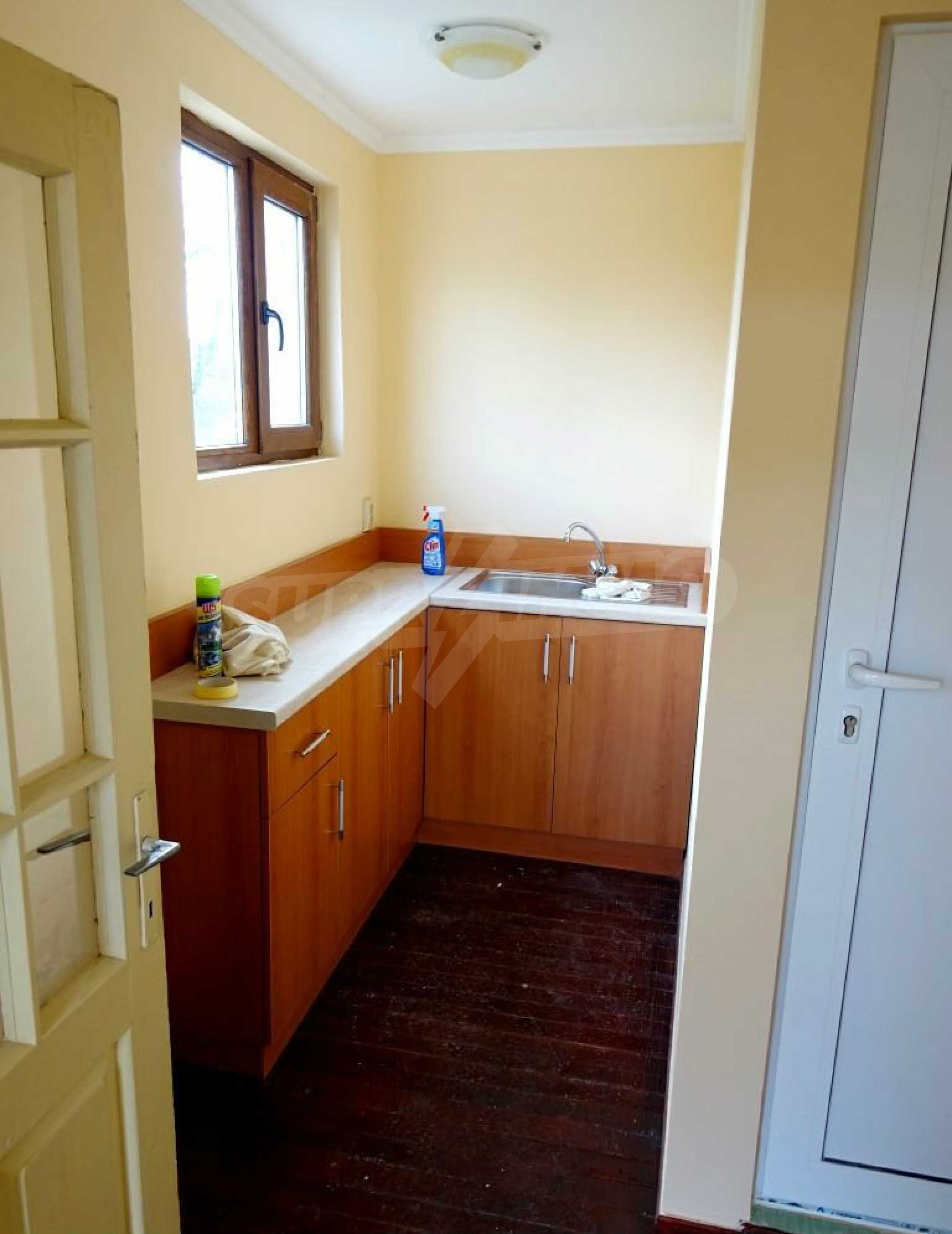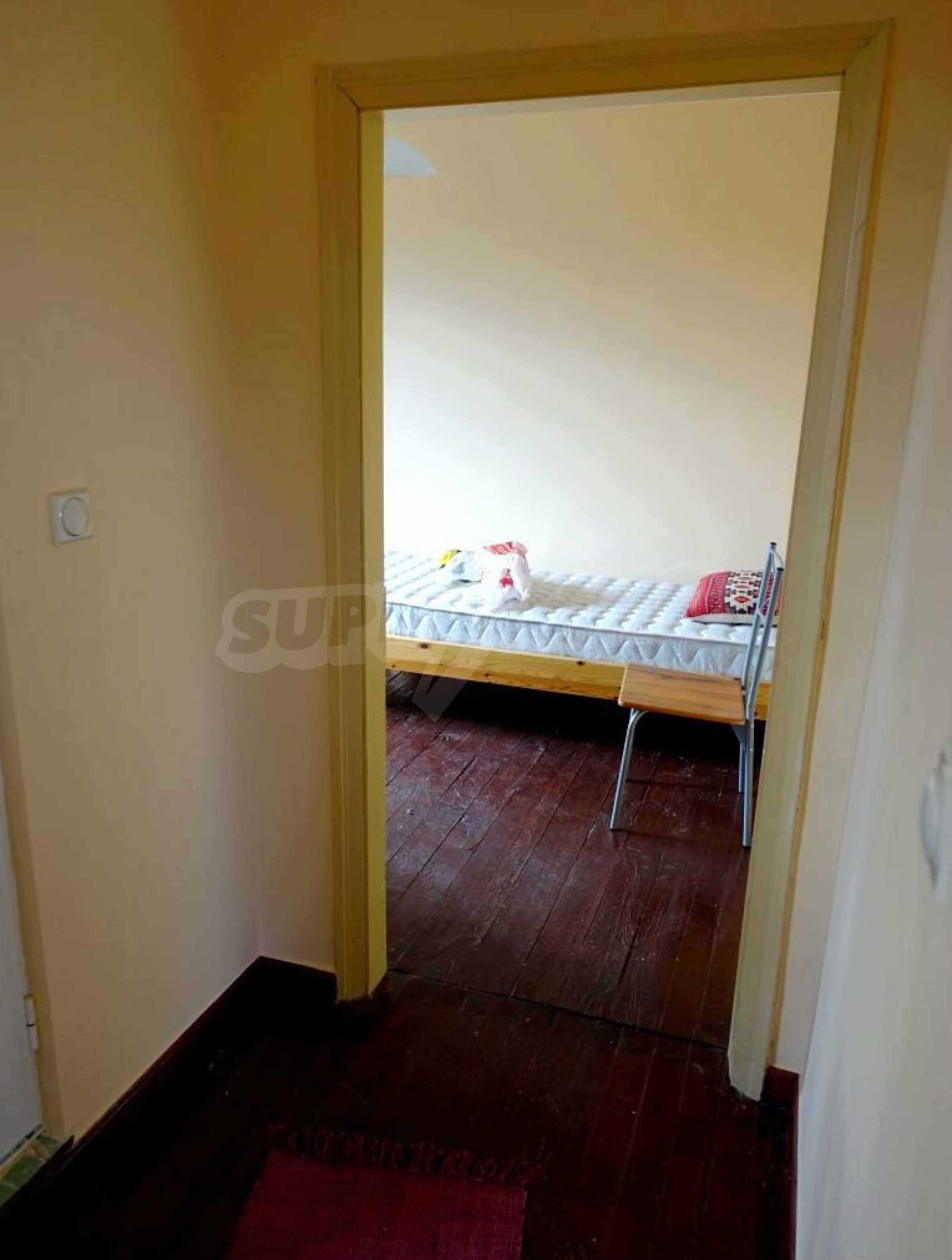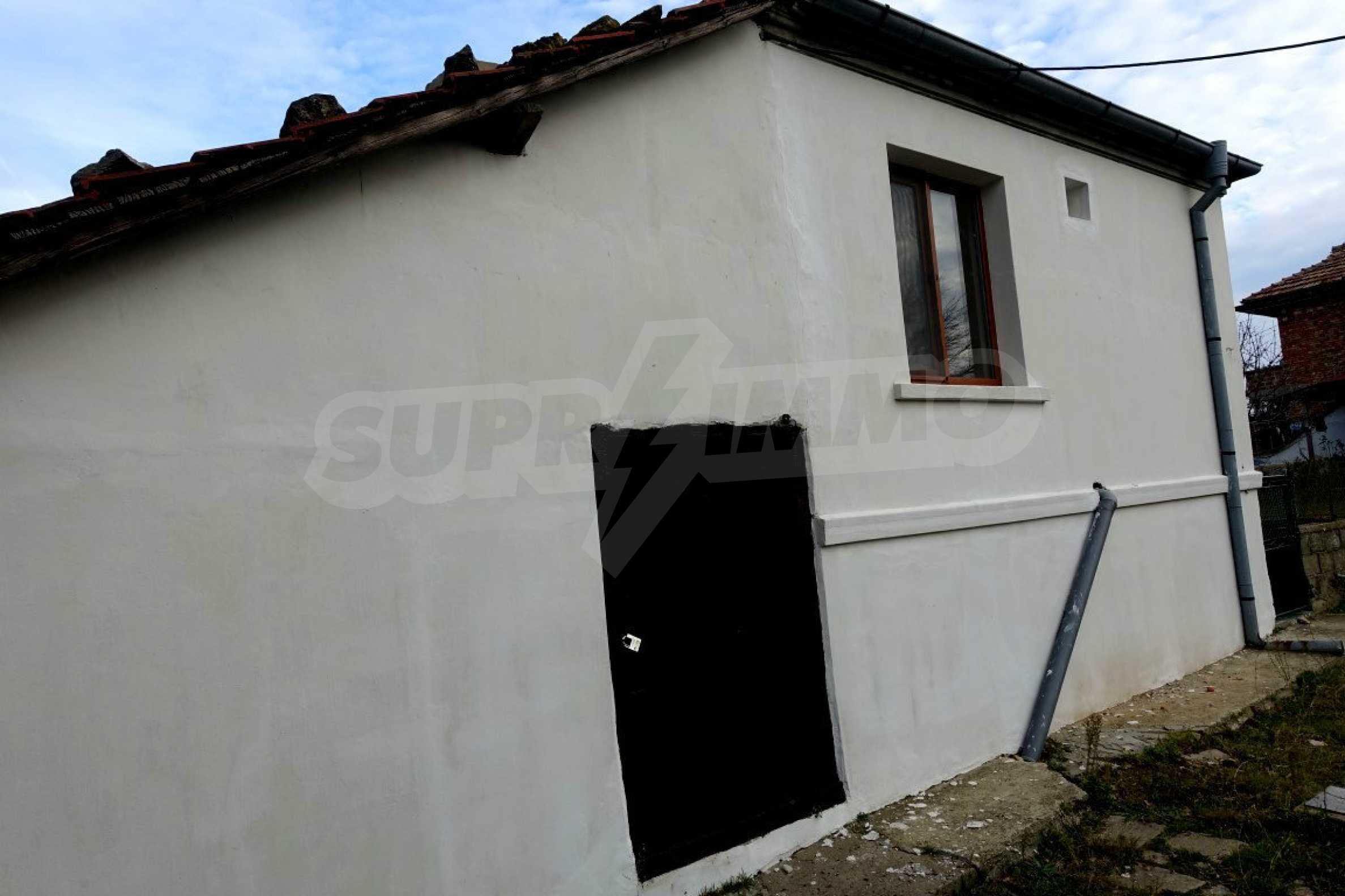 Дом площадью 80 кв.м. Отопление на дровах и отопление на электрических радиаторах. Деревянные оконные рамы, деревянные полы, окна пвх, покрашенные стены и терракотовый пол имеются в предлагаемой недвижимости. Недвижимость включает следующую меблировку и оборудование: душевая, меблировку и оборудованная ванная комната. Из основных коммуникаций обеспечены электричество и вода. Ванная комната с туалетом, внешний туалет, внутренняя ванная и гараж имеются в наличии среди прочих отличительных перечисленных характеристик предлагаемого объекта, что обеспечит дополнительный комфорт для пользования. Виды на внутренний двор и виды на горы открываются с недвижимости, раскрывая часть красот живописной Болгарии.
