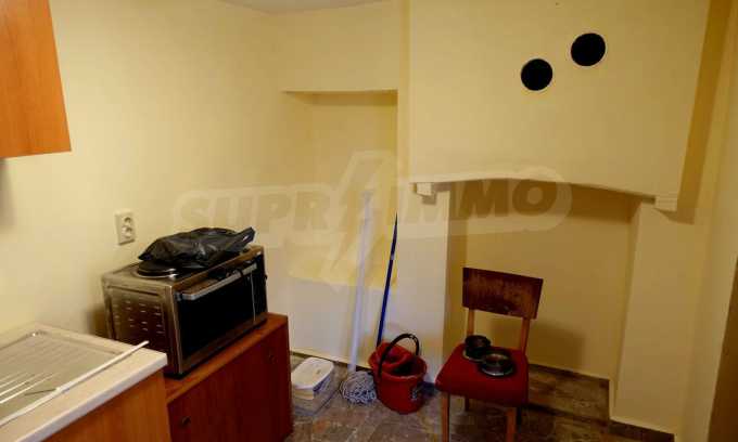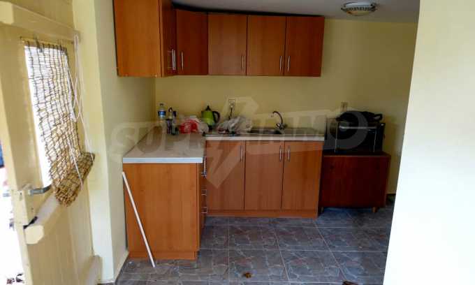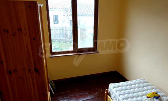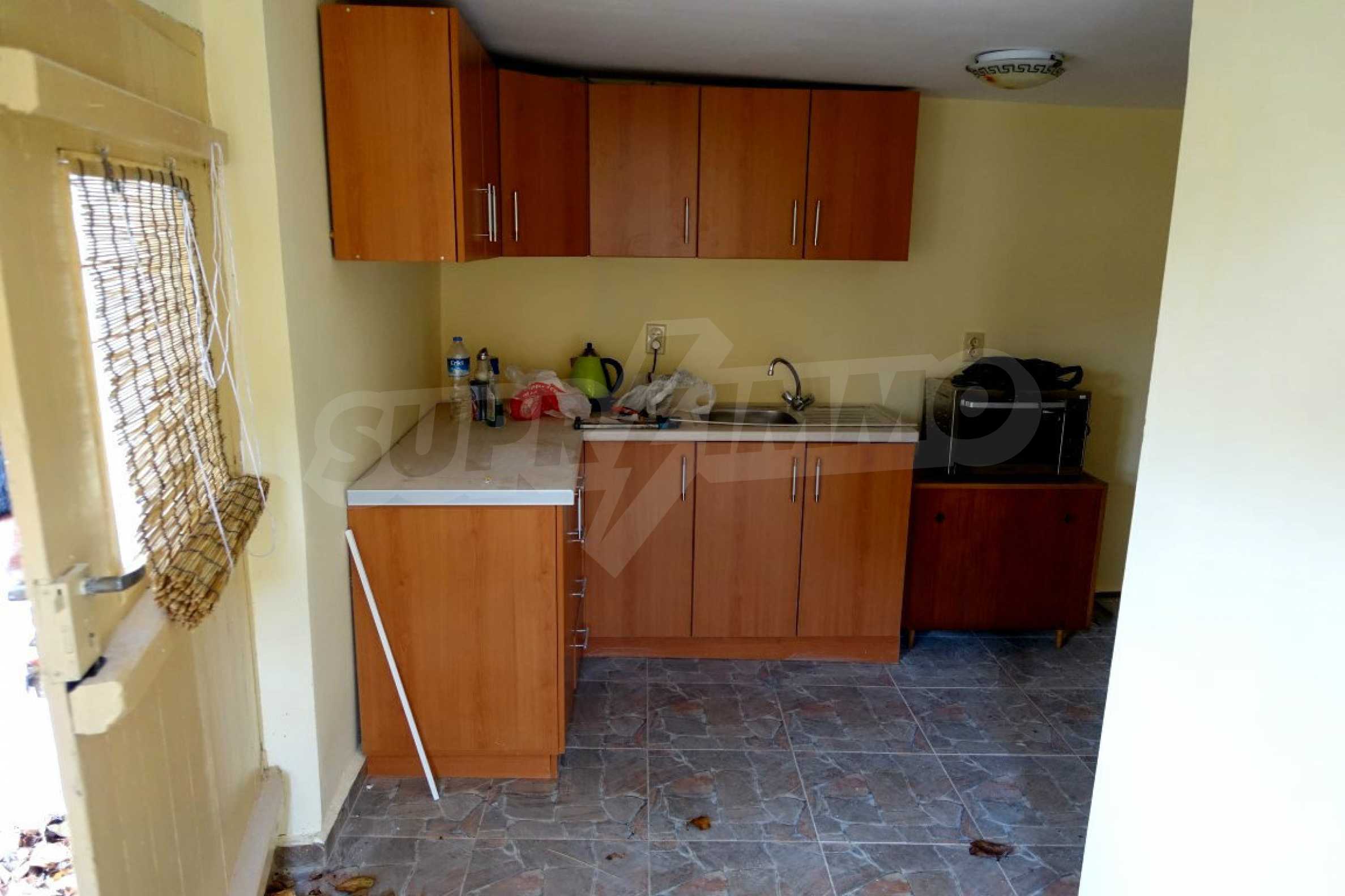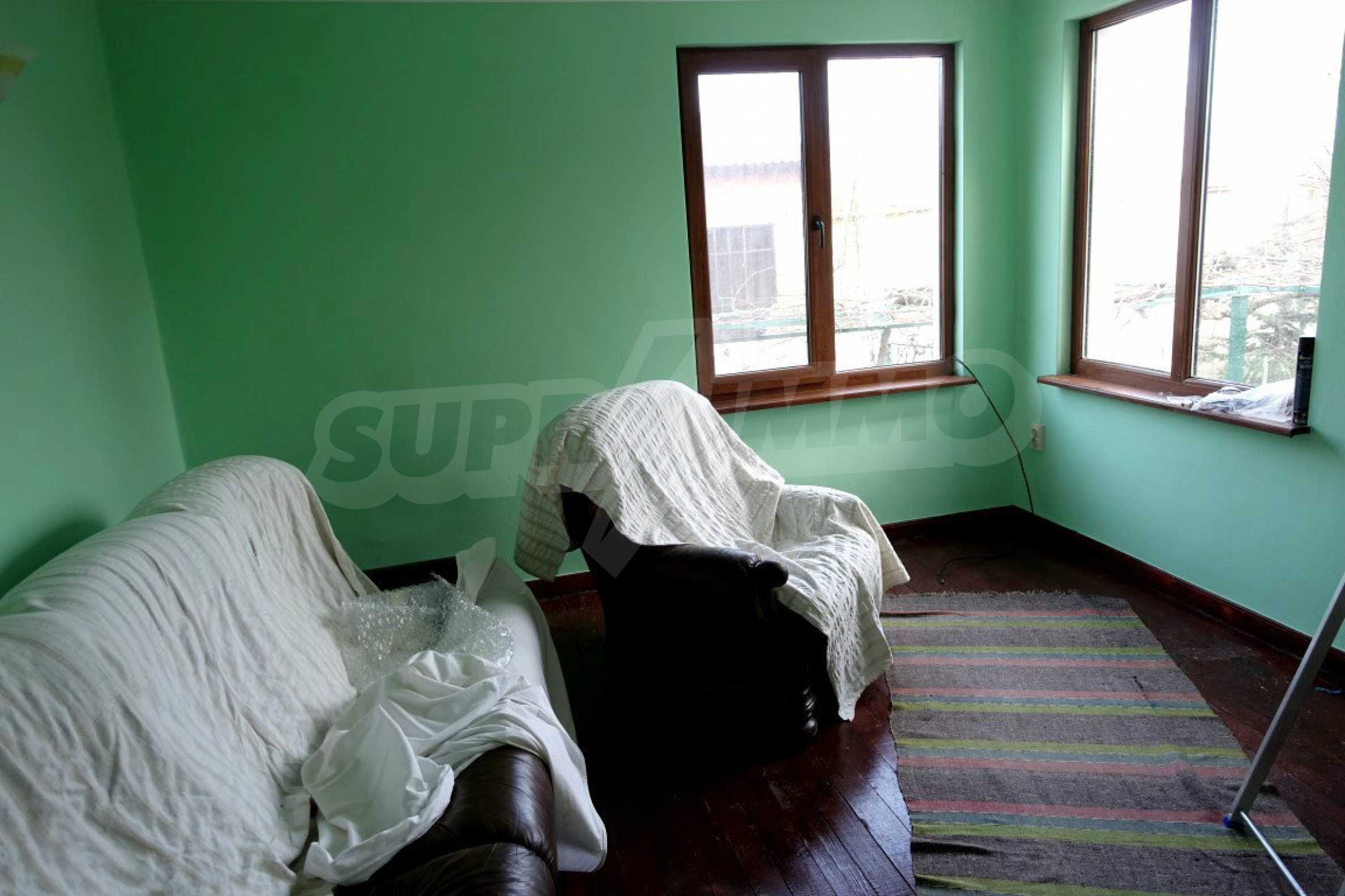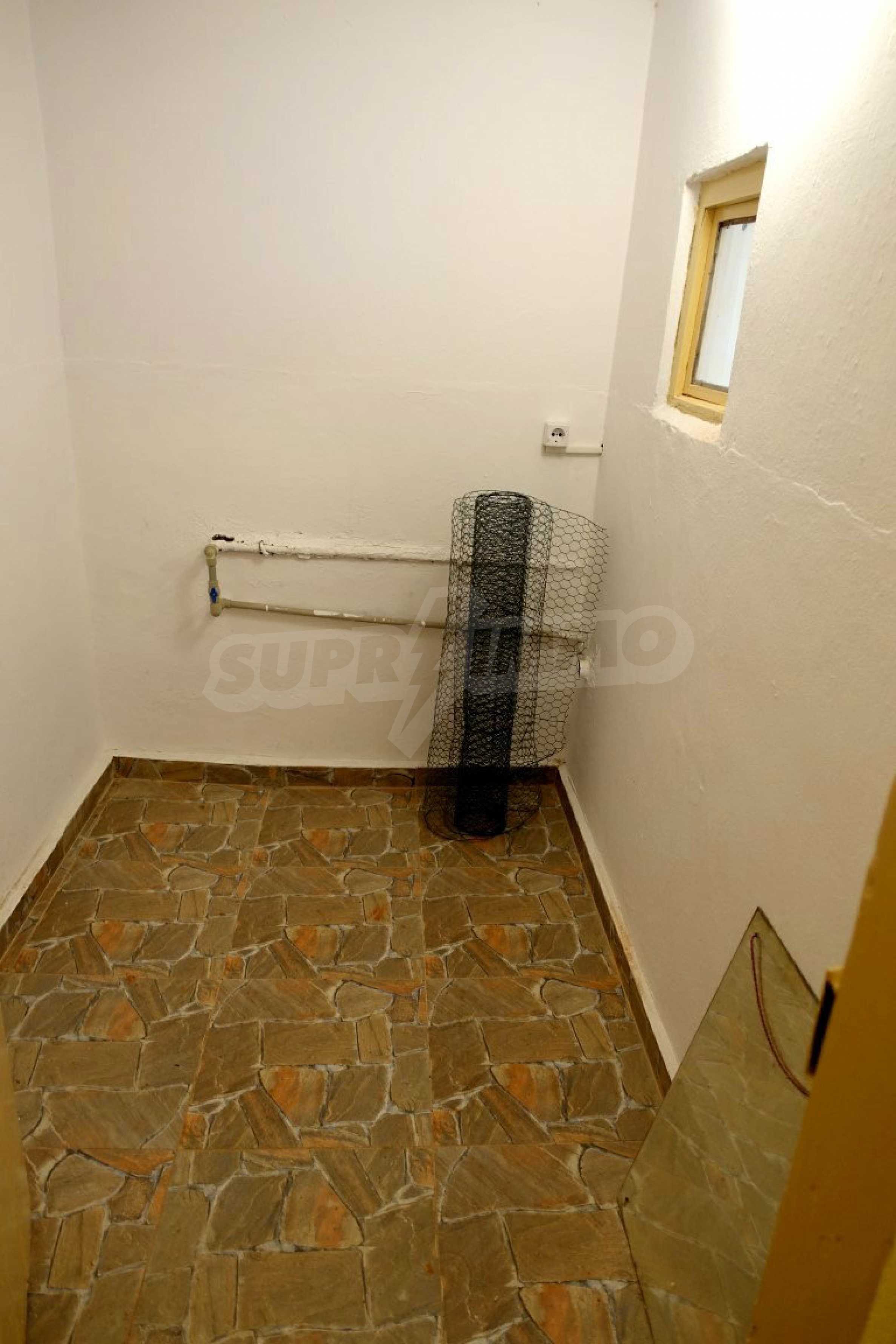 Дом площадью 80 кв.м. Отопление на дровах и отопление на электрических радиаторах. Деревянные оконные рамы, деревянные полы, окна пвх, покрашенные стены и терракотовый пол имеются в предлагаемой недвижимости. Недвижимость включает следующую меблировку и оборудование: душевая, меблировку и оборудованная ванная комната. Из основных коммуникаций обеспечены электричество и вода. Ванная комната с туалетом, внешний туалет, внутренняя ванная и гараж имеются в наличии среди прочих отличительных перечисленных характеристик предлагаемого объекта, что обеспечит дополнительный комфорт для пользования. Виды на внутренний двор и виды на горы открываются с недвижимости, раскрывая часть красот живописной Болгарии.