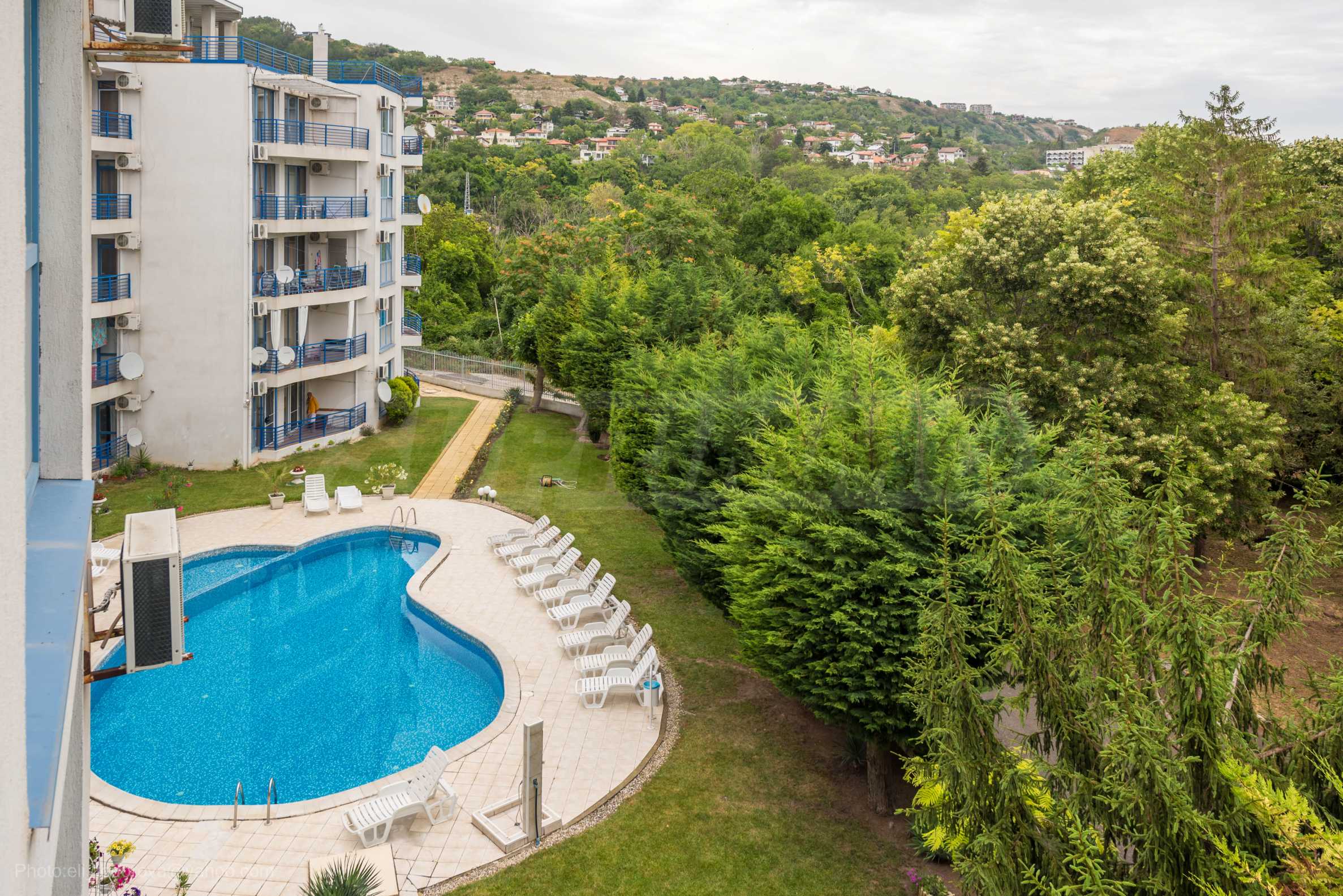 Комплекс, в котором расположена предлагаемая недвижимость, состоит из двух зеркальных зданий, построенных на участке площадью 2950 кв. метров. Общее количество квартир — 84, а дополнительный комфорт включают открытый бассейн, фитнес-центр и бар.