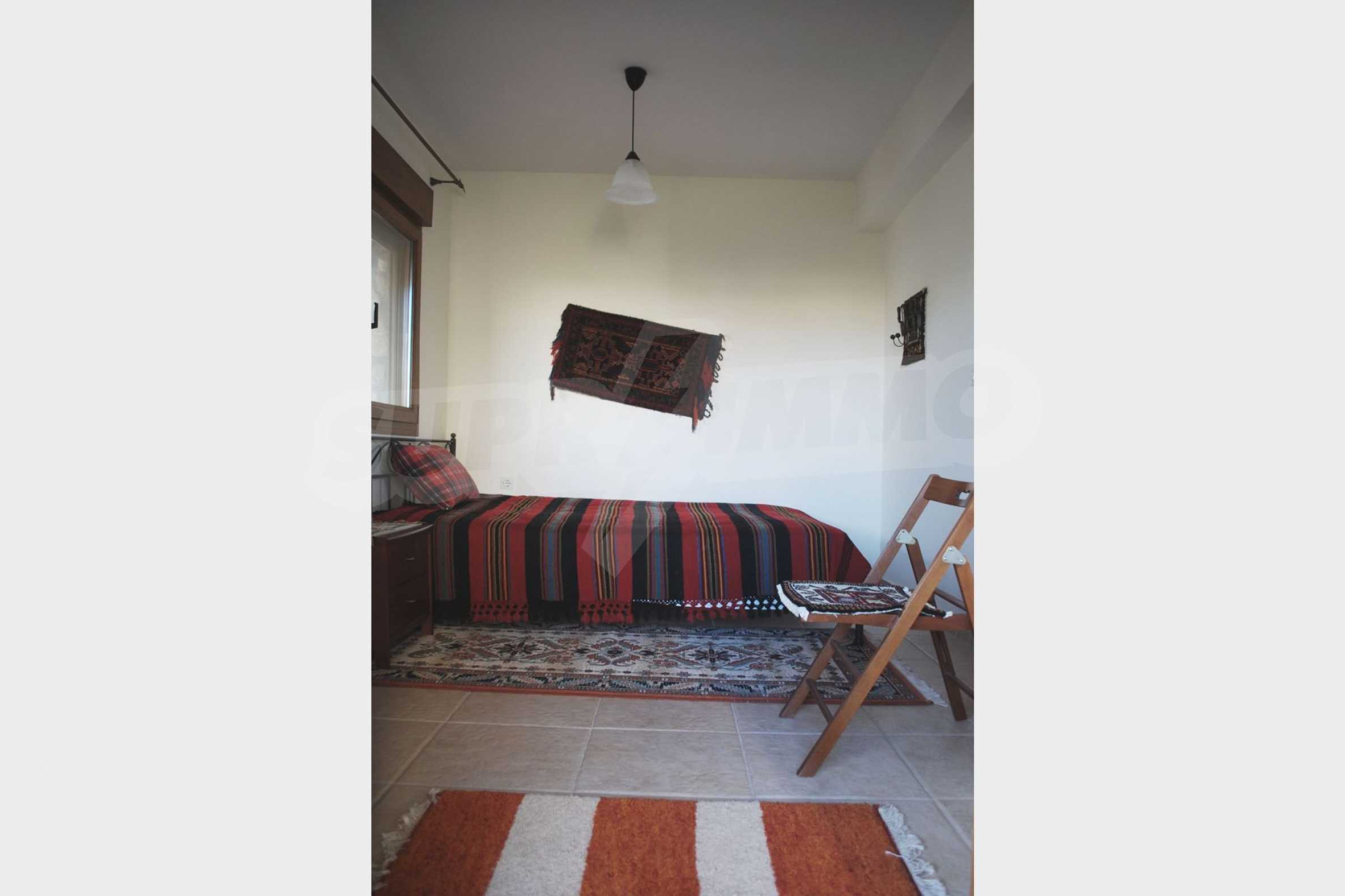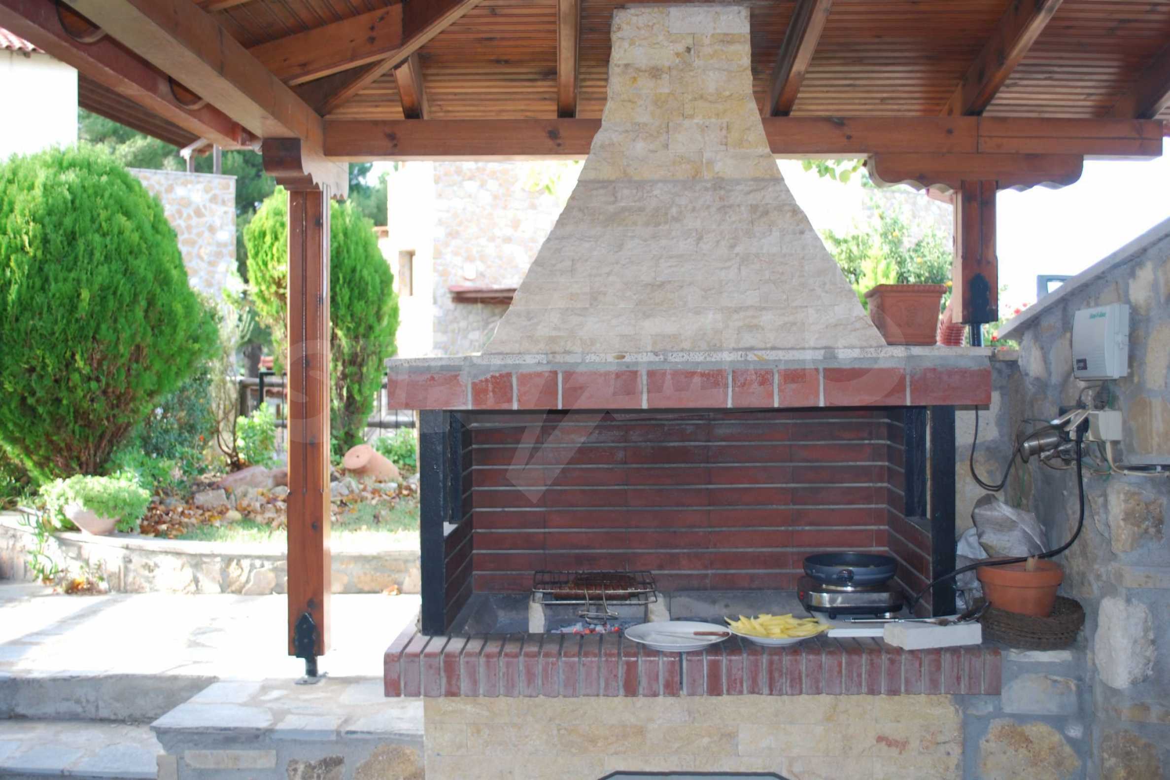 Дом площадью 130 кв.м. Предлагаемая недвижимость построена в 2004. Камин и локальное отопление. Обеспечено кондиционирование следующего типа: система кондиционирования. Армированная входная дверь имеются в предлагаемой недвижимости. Недвижимость включает следующую меблировку и оборудование: встроенная кухня, кондиционер и меблировку. Из основных коммуникаций обеспечены центральная канализация. Ванная комната с туалетом, кладовая, обозначенная стоянка, терраса, заасфальтированная дорога и система охранной сигнализации имеются в наличии среди прочих указанных характеристик предлагаемого объекта, что обеспечит дополнительные удобства для пользования.
