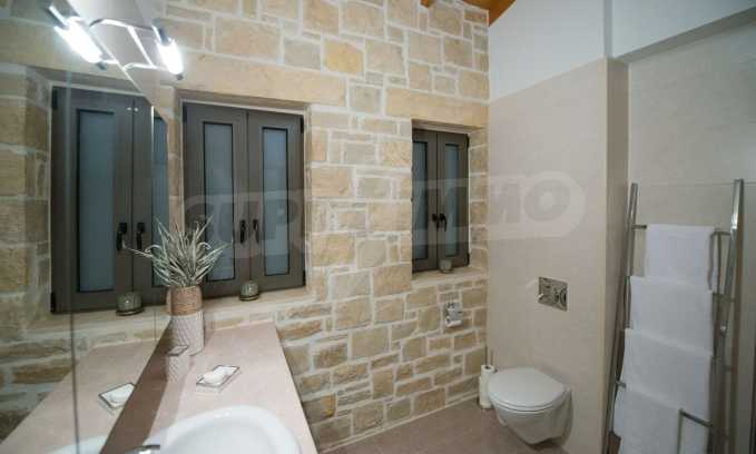 Первый этаж: Встроенная кухня и просторная гостиная открытой планировки и столовая. Две двухместные спальни со встроенными шкафами и две ванные комнаты. Есть прямой выход на большую террасу с каменными арками и к беседке. На участке имеется шикарный бассейн площадью 23 кв., а также чудесный сад с различными экзотическими растениями.