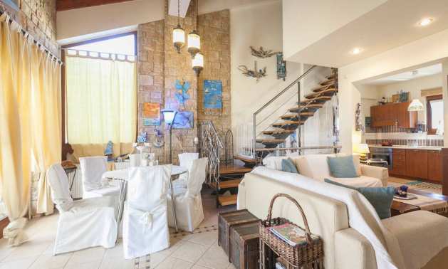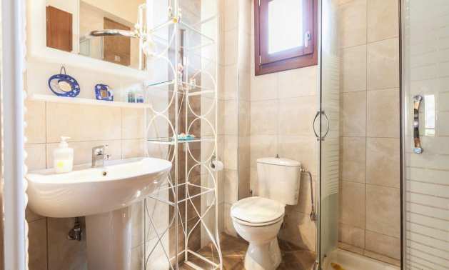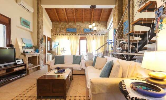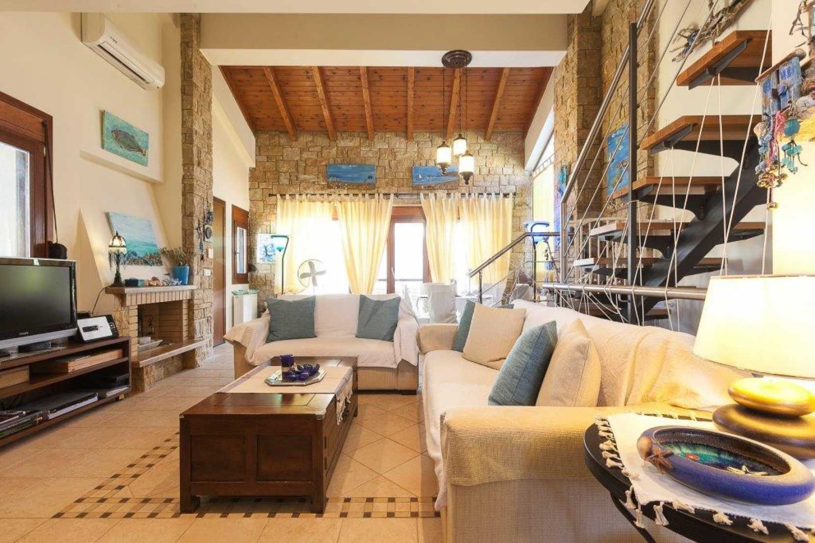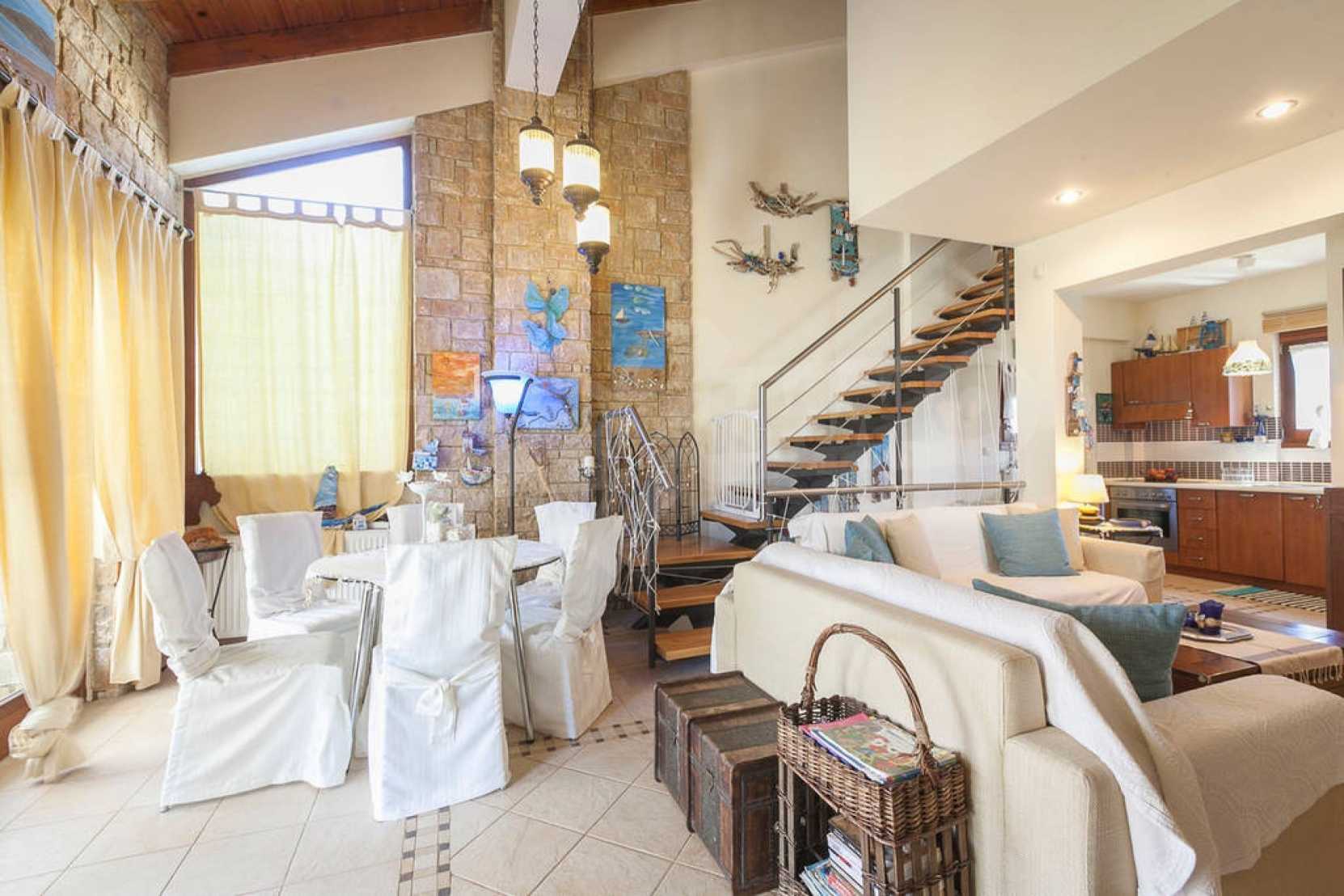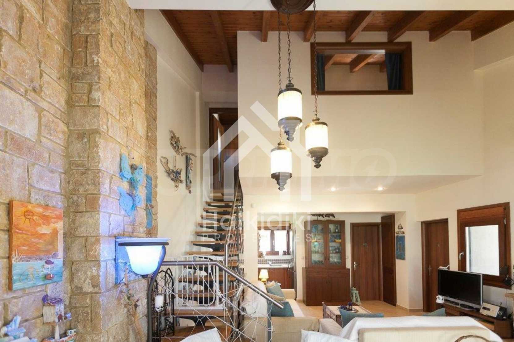 Продается роскошная трехэтажная вилла на полуострове Кассандра площадью 117 кв. метров. Комплекс состоит из 4-х частных вилл и общего бассейна. Дом состоит из трех уровней площадью 40 кв. метров. На цокольном этаже находится большая гостевая комната с двумя диванами и шкафом, где смогут расположится четыре человека, котельни и кладовой. На первом этаже находится спальня с двуспальной кроватью, гостиная, кухня, столовая, камин, телевизор, посудомоечная машина, все кухонные приборы, посуда и т.д. На втором этаже есть еще одна комната с двуспальной кроватью. В каждой комнате установлены кондиционеры и телевизор, на каждом этаже есть ванная комната с душевой кабиной. На веранде есть обеденный уголок со столом для шести человек. В доме есть wifi. В саду есть барбекю, четыре шезлонга и навес для бассейна. Размеры бассейна составляют 5x12м и глубиной 0,90 - 2,20 м. Существует парковка для двух машин.