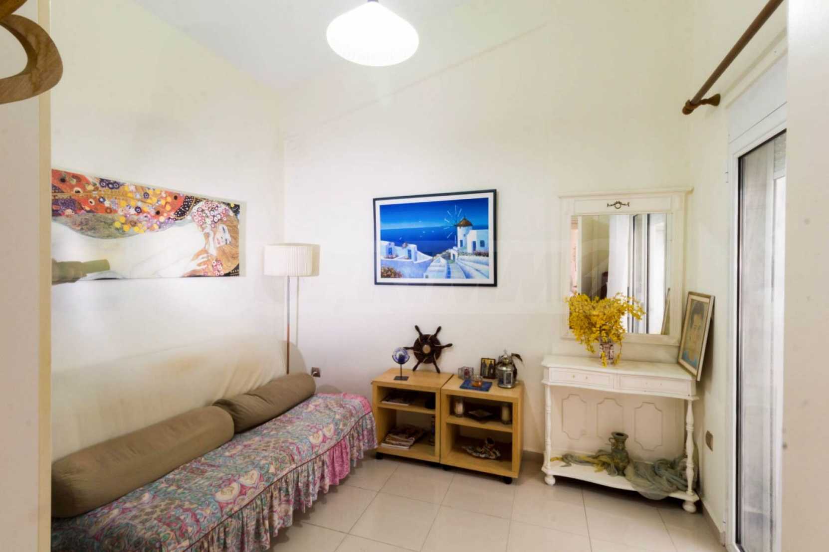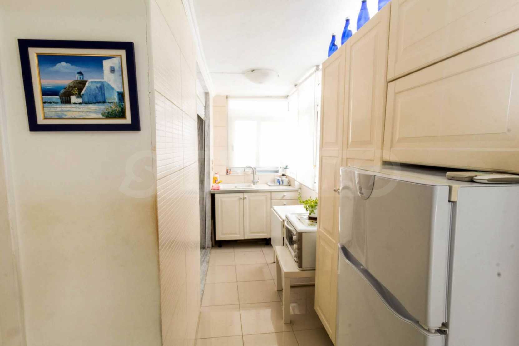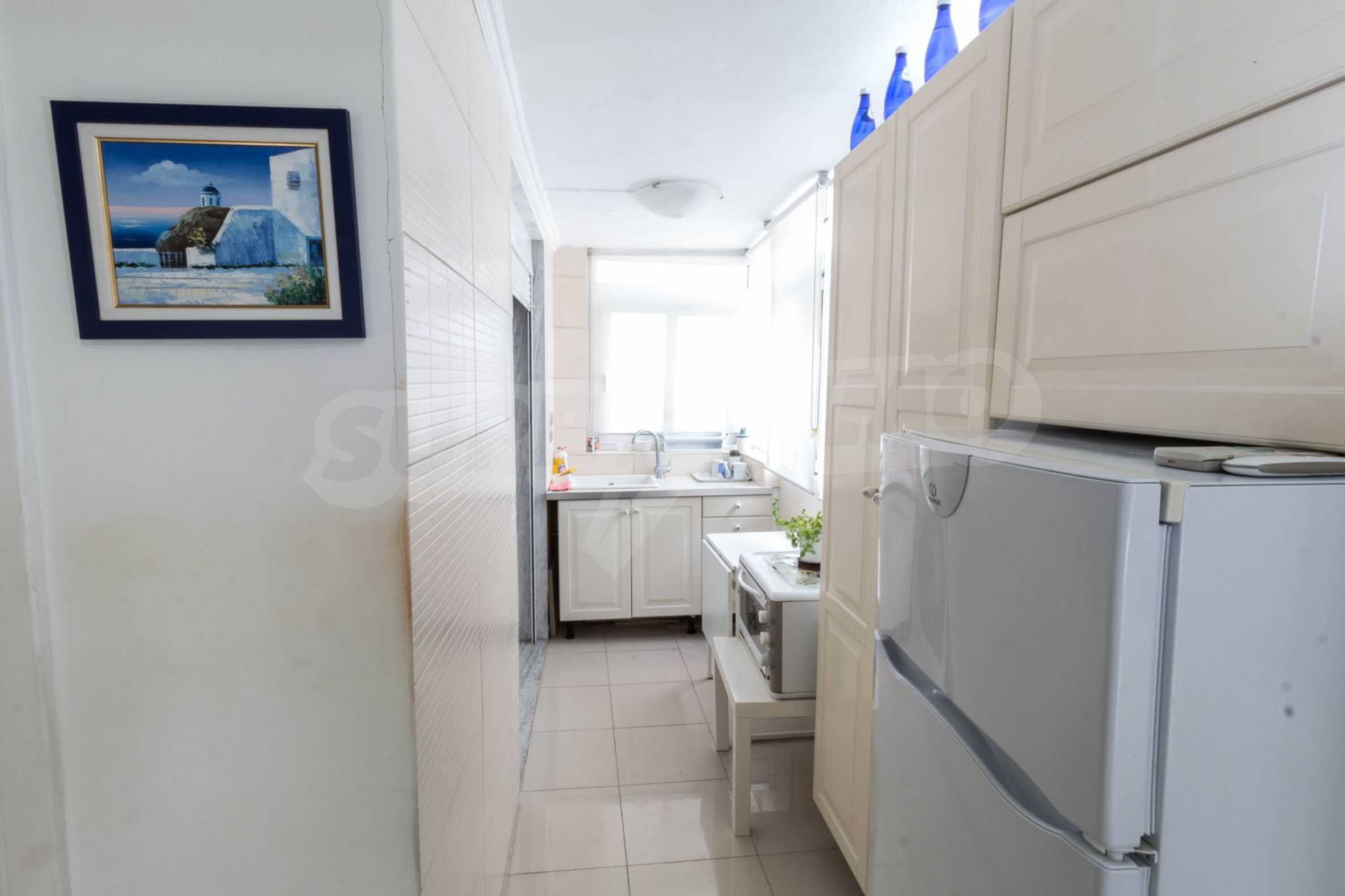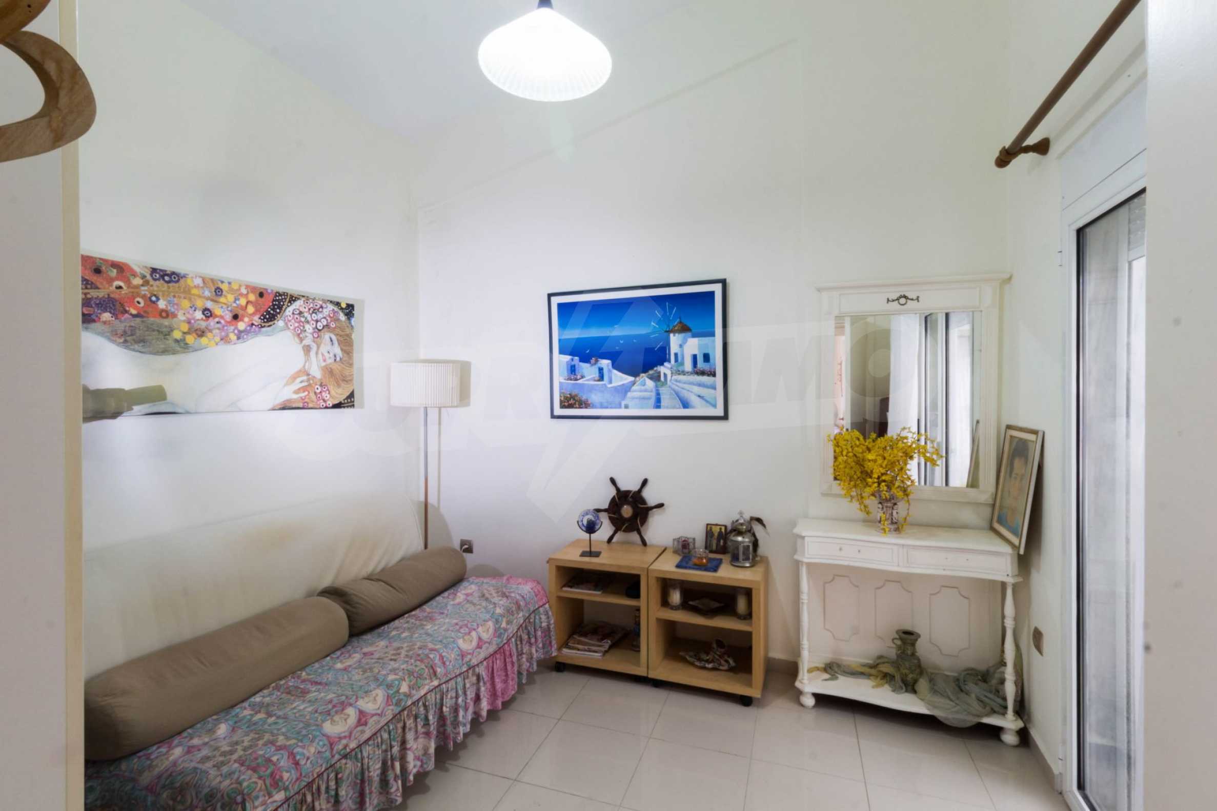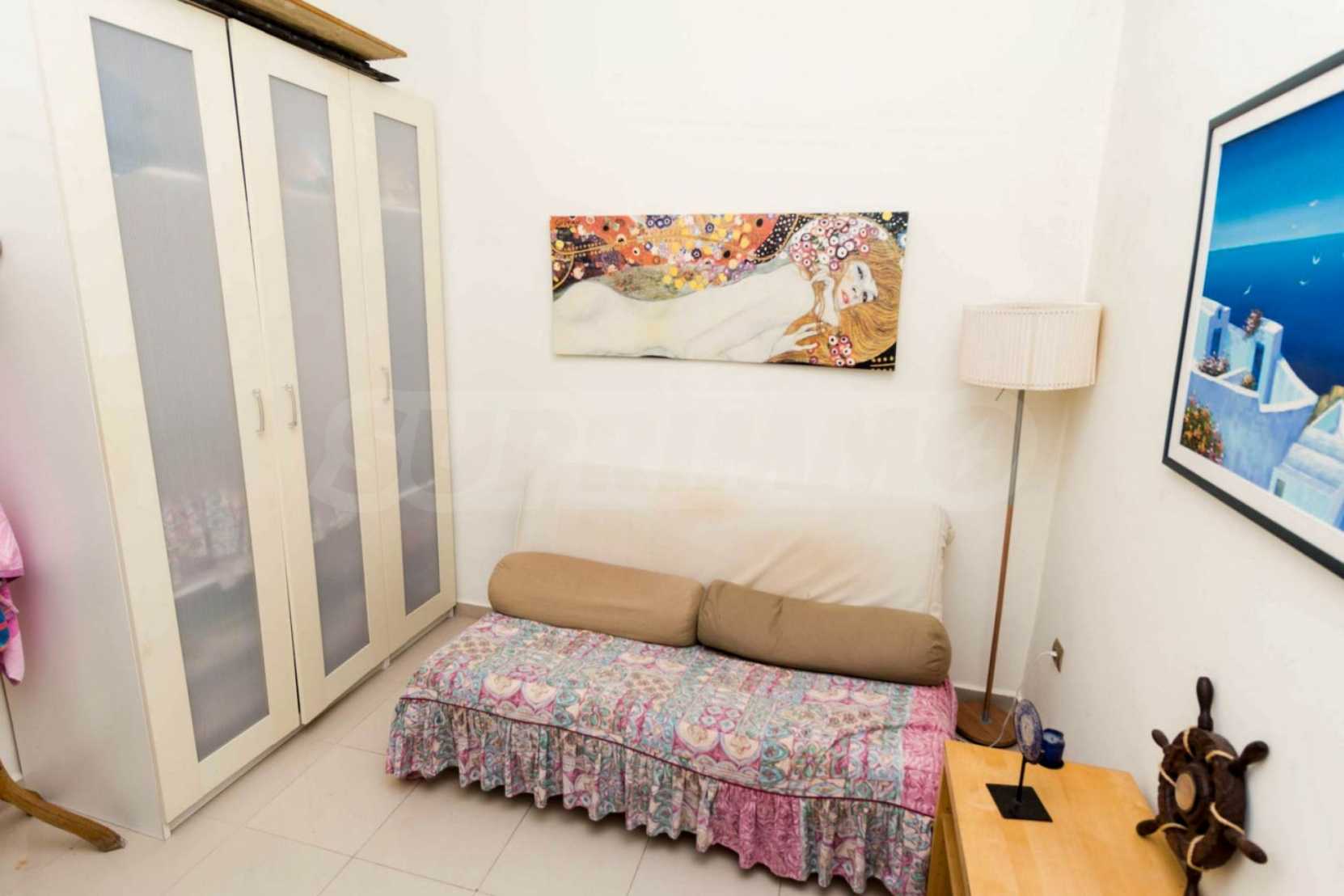 Квартира площадью 65 кв. метров. Предлагаемая недвижимость построена в 1990. Камин, отопление на электричестве и паровое отопление на электричестве. Обеспечено кондиционирование следующего типа: система кондиционирования. Алюминиевые окна и армированная входная дверь имеются в предлагаемой недвижимости. Недвижимость включает следующую мебель и оборудование: бойлер электрический, кондиционер и мебель. Из основных коммуникаций обеспечены септическая яма. Ванная комната с туалетом, терраса, заасфальтированная дорога и система охранной сигнализации имеются в наличии среди прочих обозначенных характеристик предлагаемого объекта, что обеспечит дополнительные удобства для пользования. Виды на море открываются с недвижимости, раскрывая часть красот живописной Болгарии.