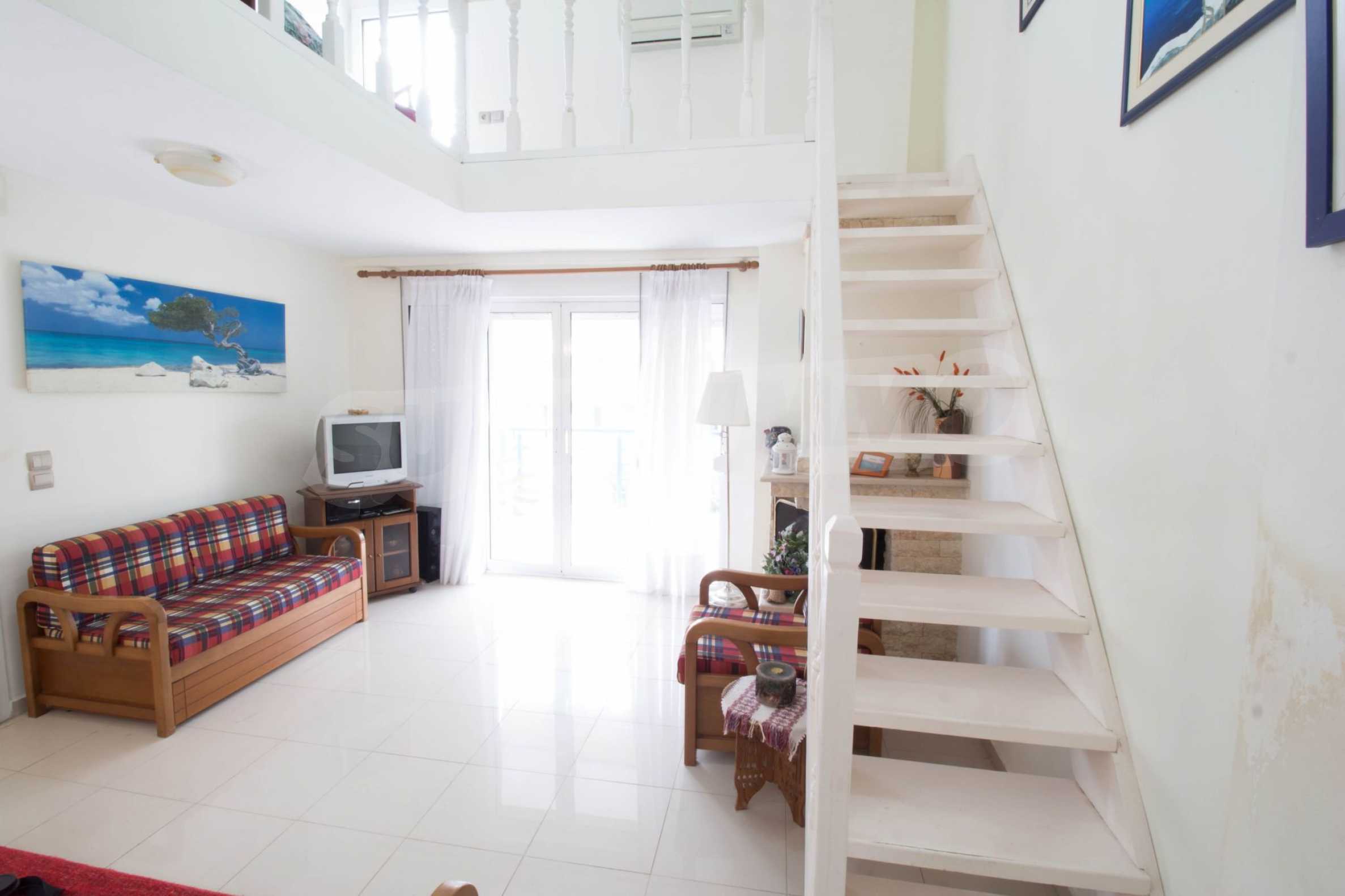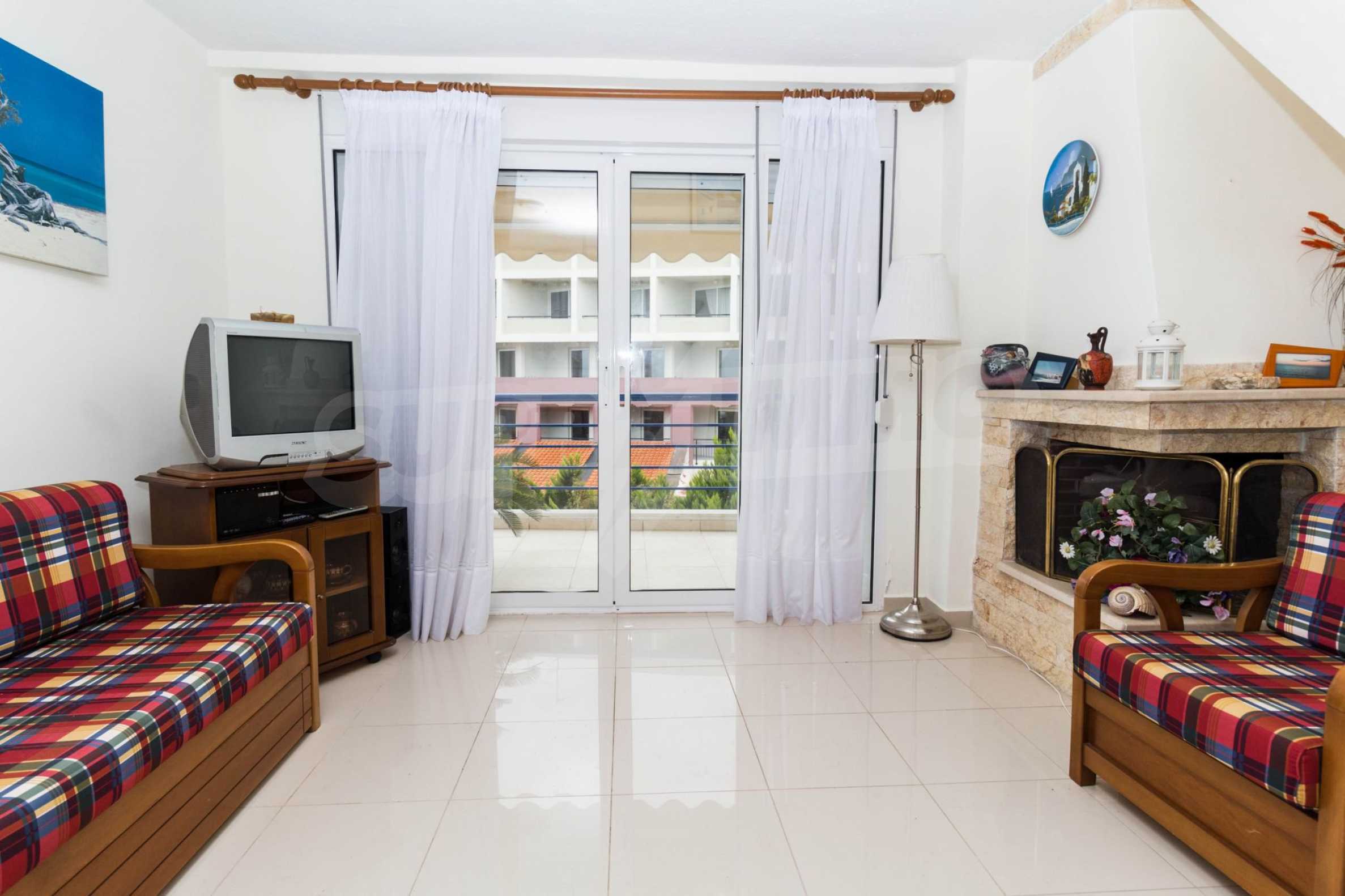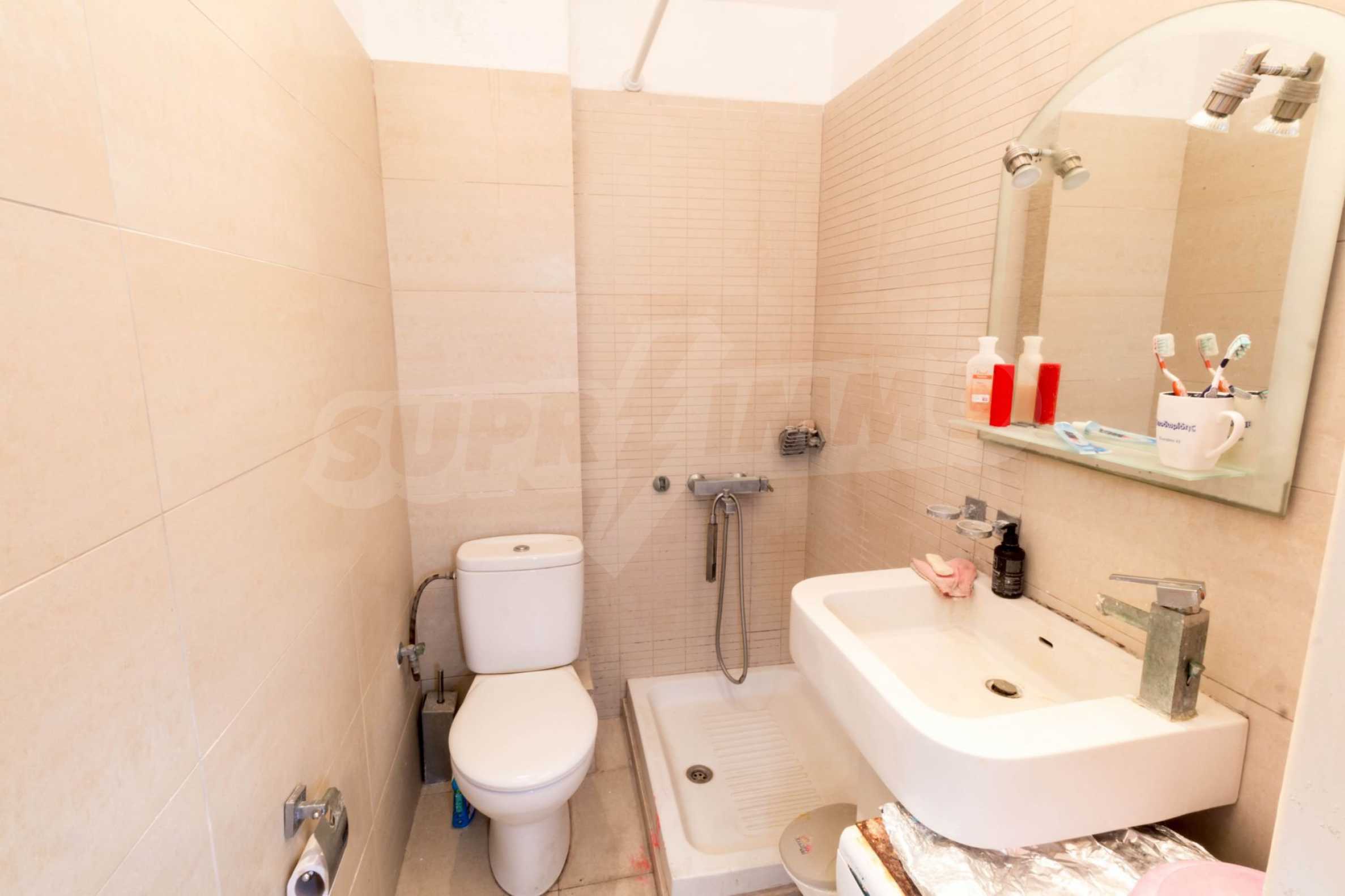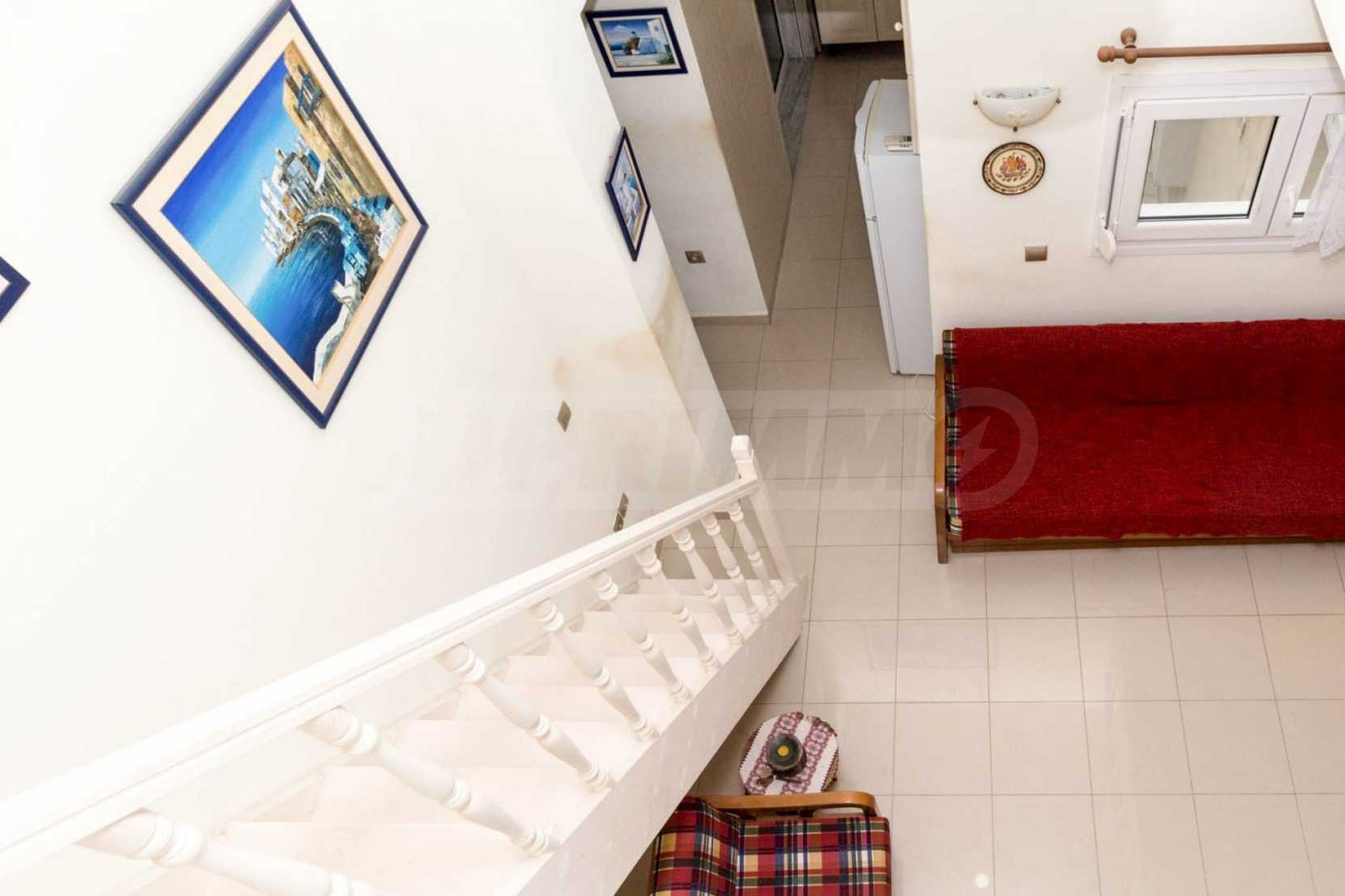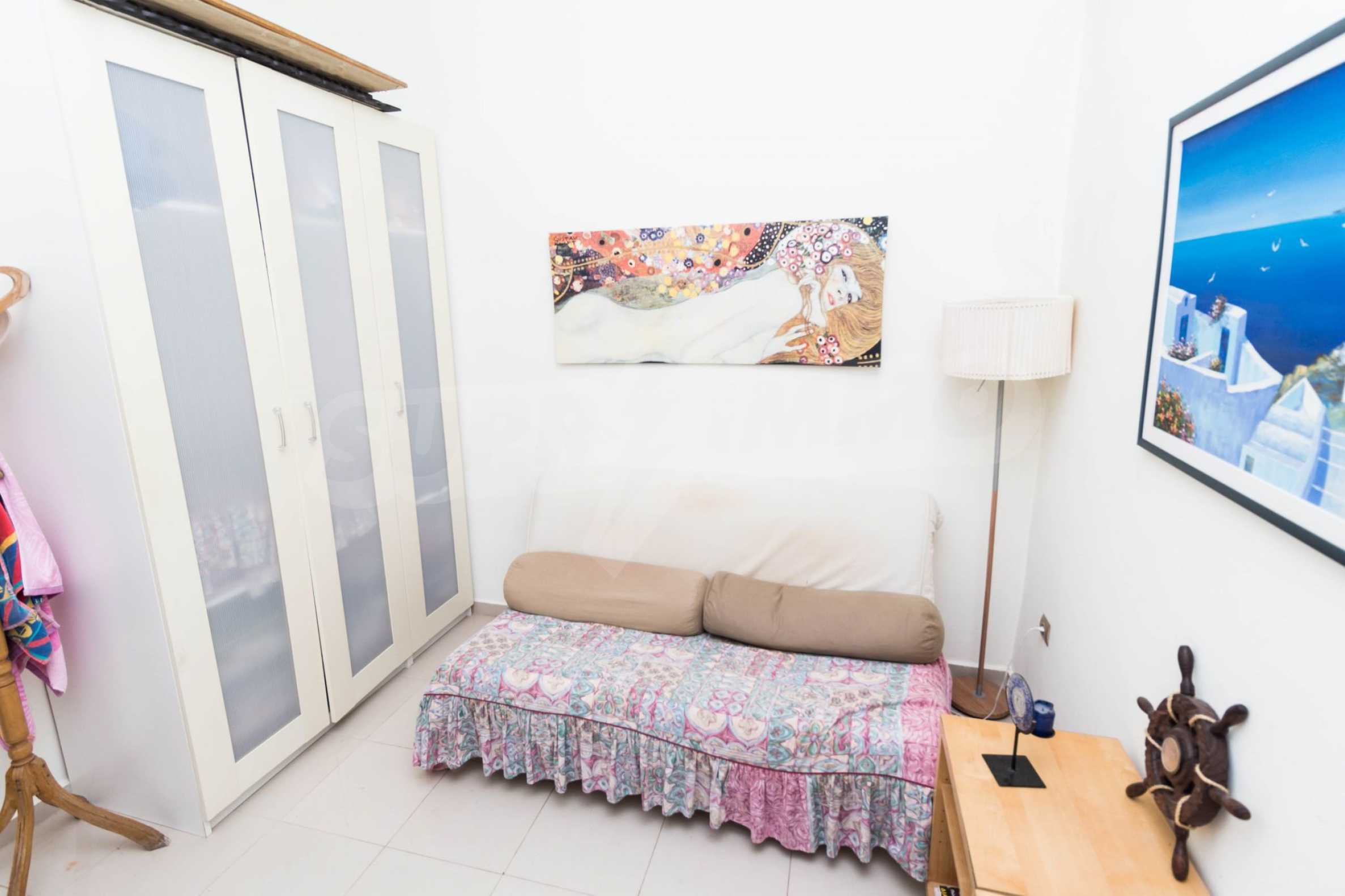Квартира площадью 65 кв. метров. Предлагаемая недвижимость построена в 1990. Камин, отопление на электричестве и паровое отопление на электричестве. Обеспечено кондиционирование следующего типа: система кондиционирования. Алюминиевые окна и армированная входная дверь имеются в предлагаемой недвижимости. Недвижимость включает следующую мебель и оборудование: бойлер электрический, кондиционер и мебель. Из основных коммуникаций обеспечены септическая яма. Ванная комната с туалетом, терраса, заасфальтированная дорога и система охранной сигнализации имеются в наличии среди прочих обозначенных характеристик предлагаемого объекта, что обеспечит дополнительные удобства для пользования. Виды на море открываются с недвижимости, раскрывая часть красот живописной Болгарии.