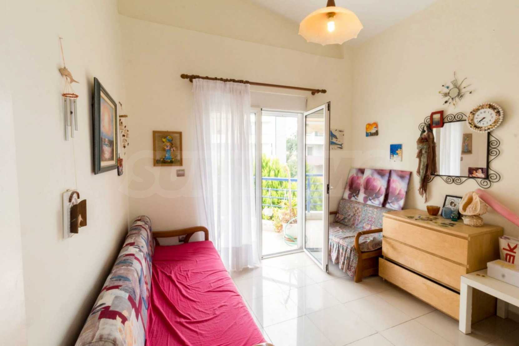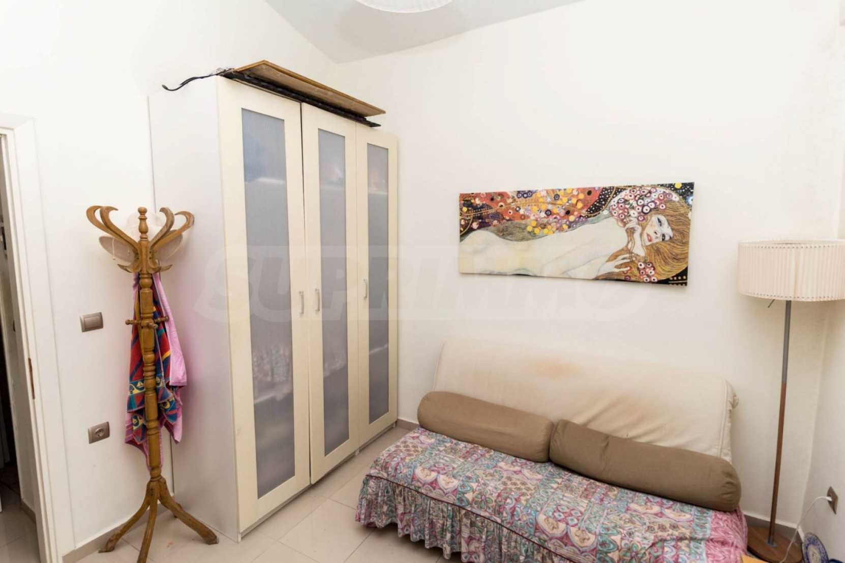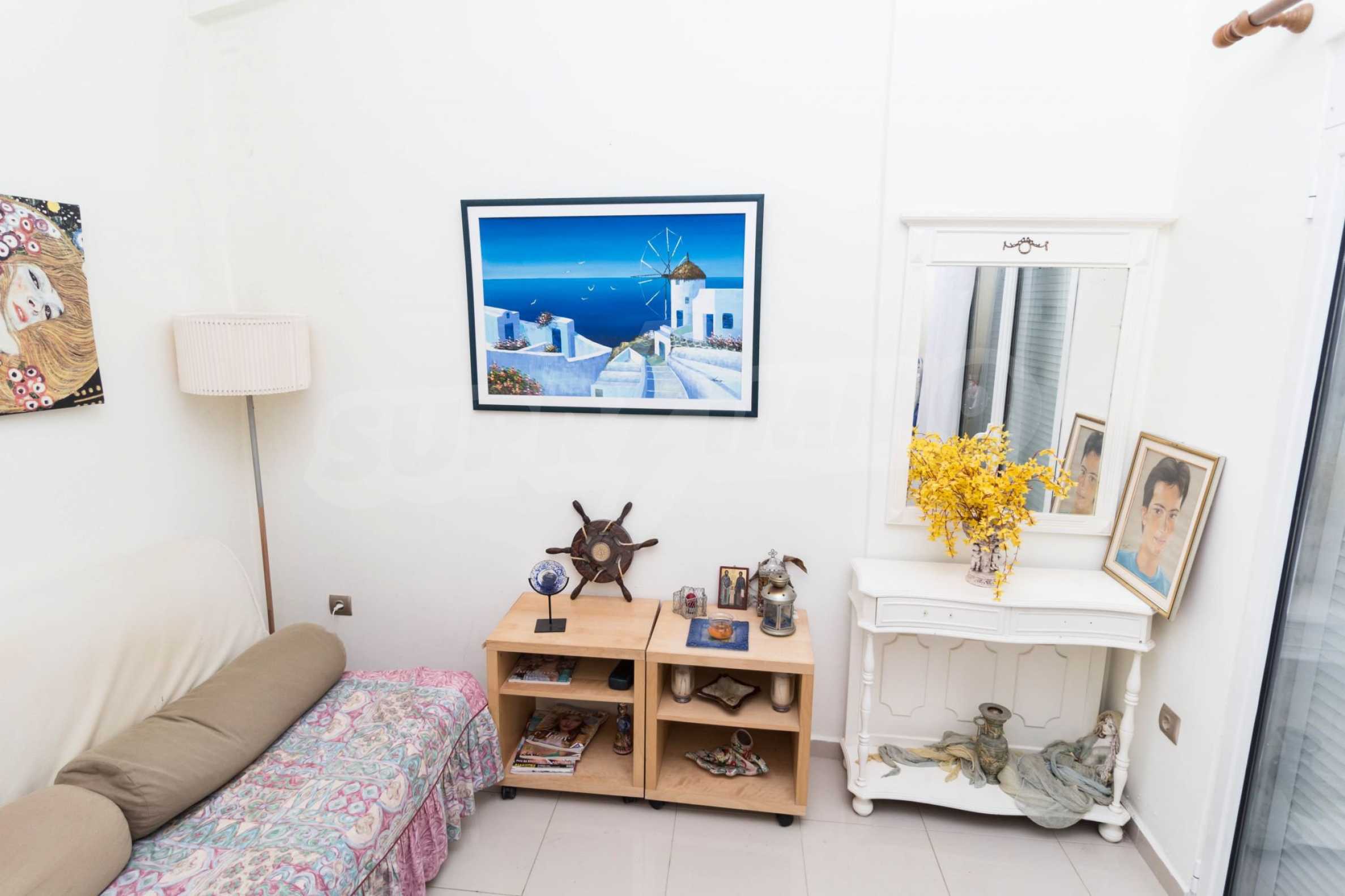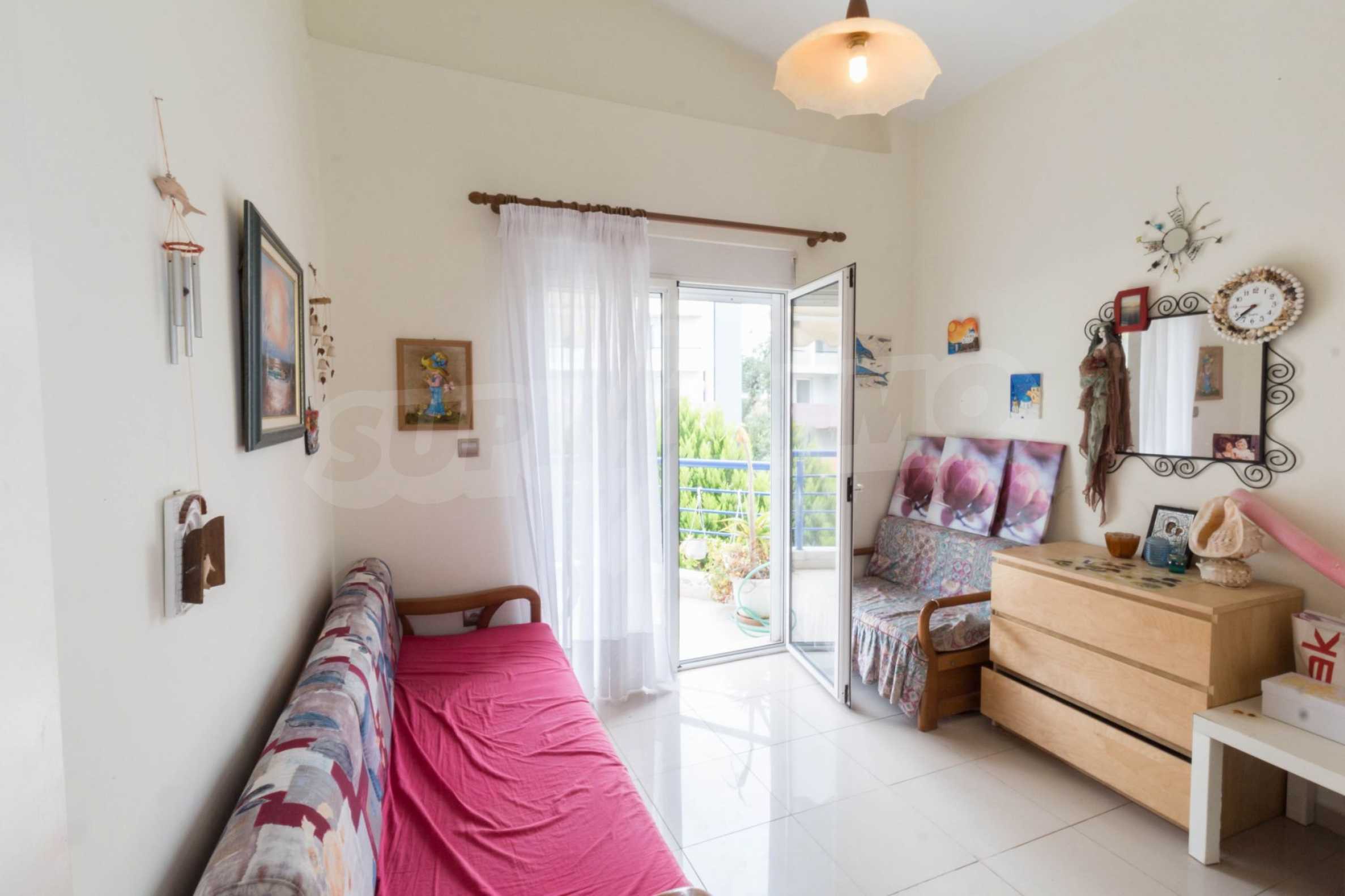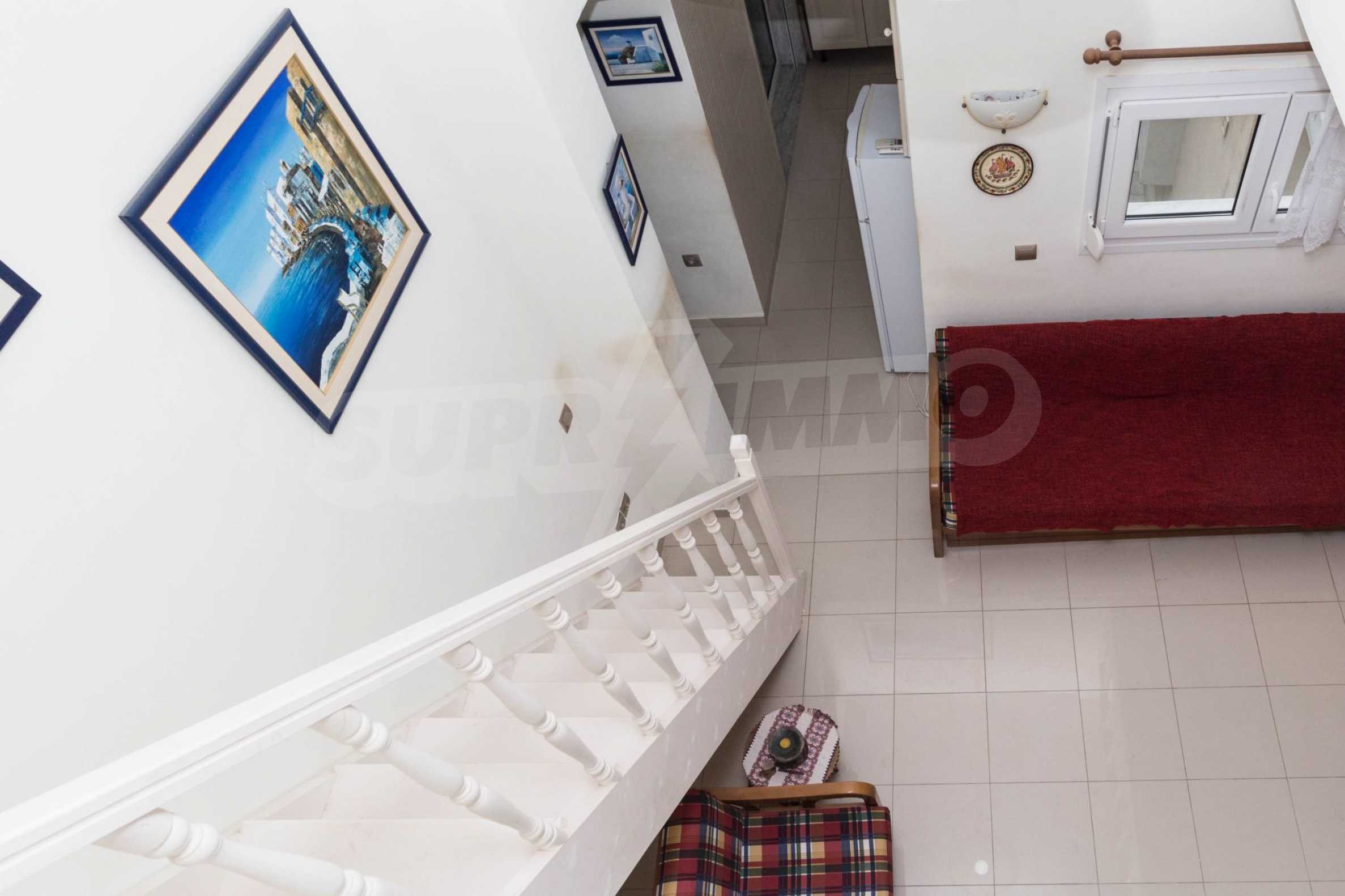 Квартира площадью 65 кв. метров. Предлагаемая недвижимость построена в 1990. Камин, отопление на электричестве и паровое отопление на электричестве. Обеспечено кондиционирование следующего типа: система кондиционирования. Алюминиевые окна и армированная входная дверь имеются в предлагаемой недвижимости. Недвижимость включает следующую мебель и оборудование: бойлер электрический, кондиционер и мебель. Из основных коммуникаций обеспечены септическая яма. Ванная комната с туалетом, терраса, заасфальтированная дорога и система охранной сигнализации имеются в наличии среди прочих обозначенных характеристик предлагаемого объекта, что обеспечит дополнительные удобства для пользования. Виды на море открываются с недвижимости, раскрывая часть красот живописной Болгарии.