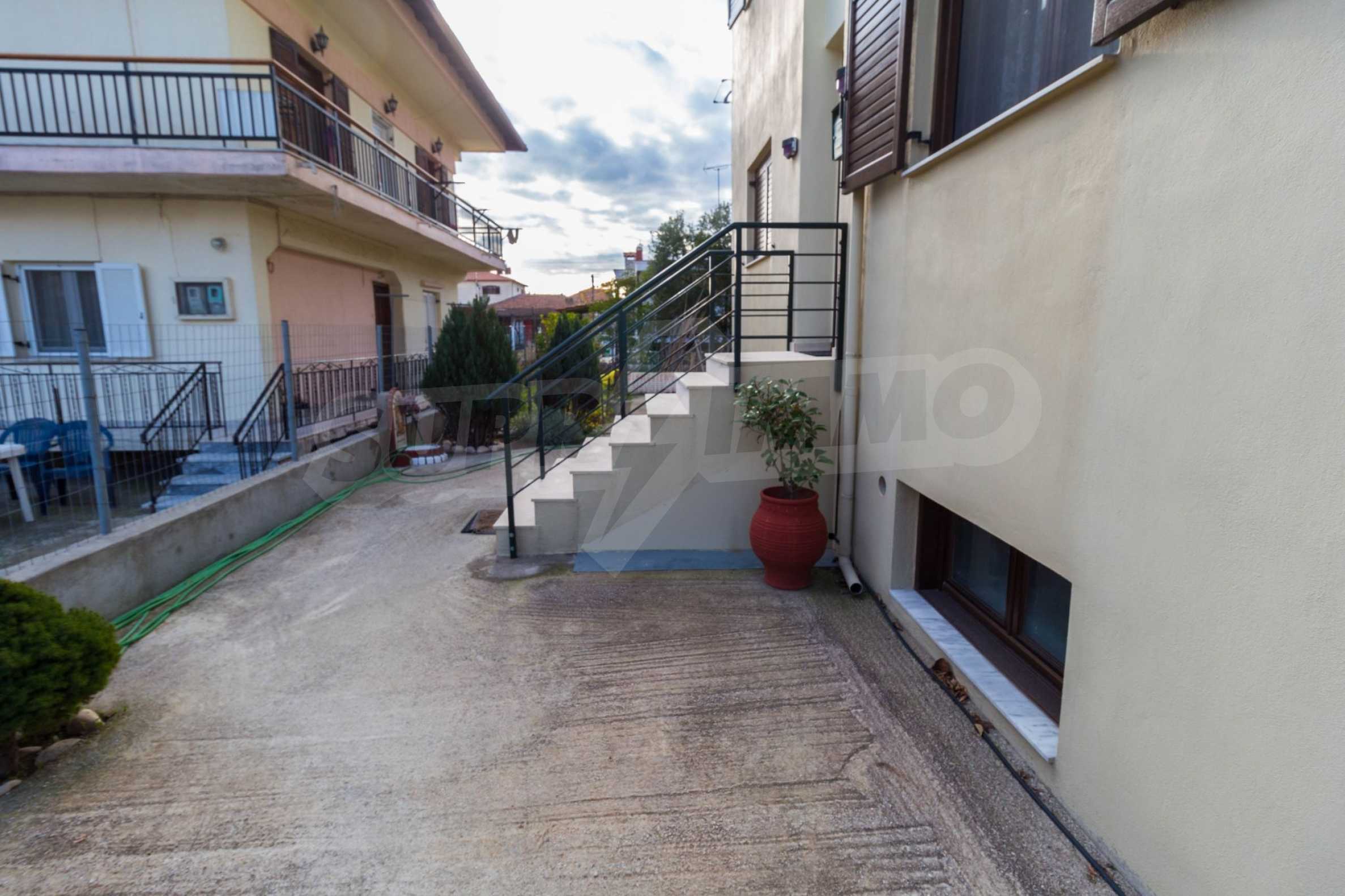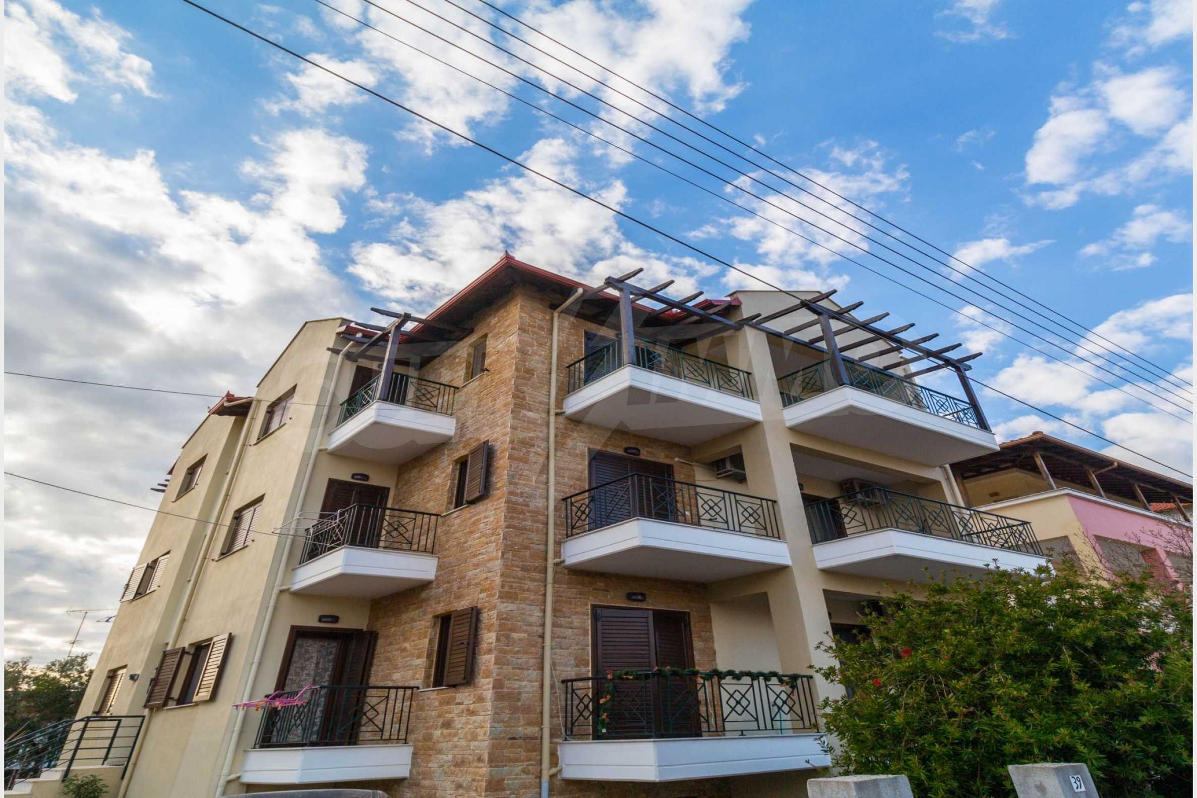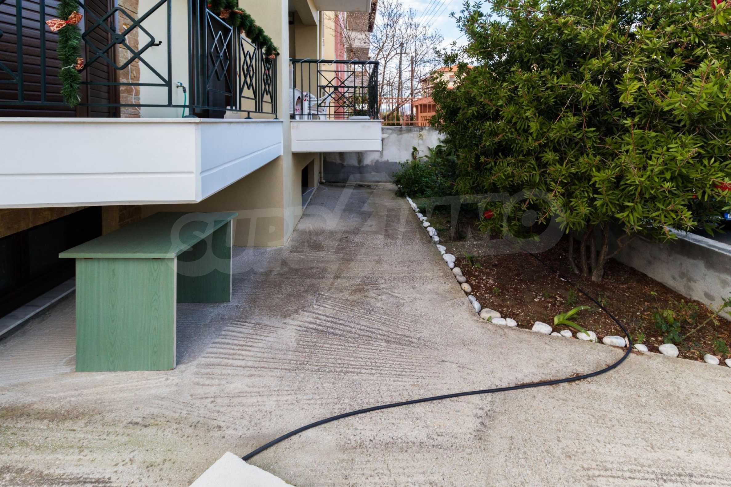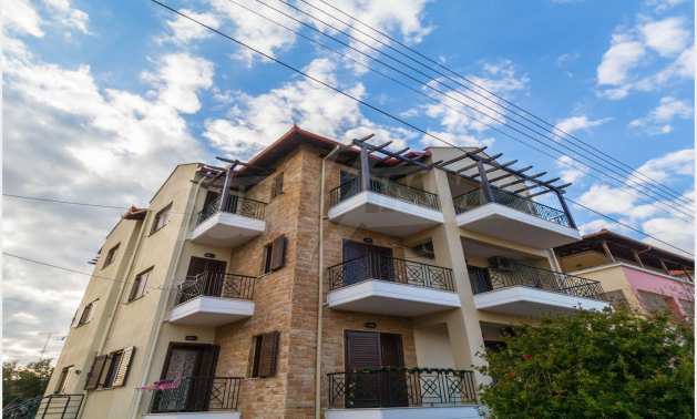 Предлагаем вашему вниманию новый частный дом в муниципалитете Афон на Халкидиках общей площадью 620 кв. метров в прекрасном районе в двух шагах от моря и центра поселка. Дом состоит из шести квартир, по две на каждом уровне, каждая квартира площадью 75 кв. метров и состоит из гостиной, двух спален и ванной комнаты. В подвале есть кладовая и котельня.