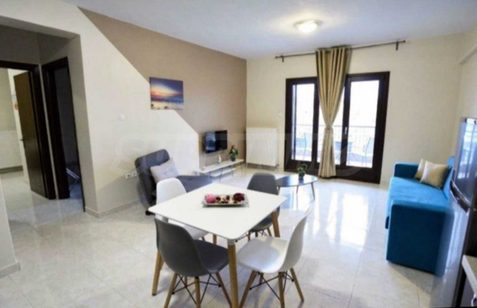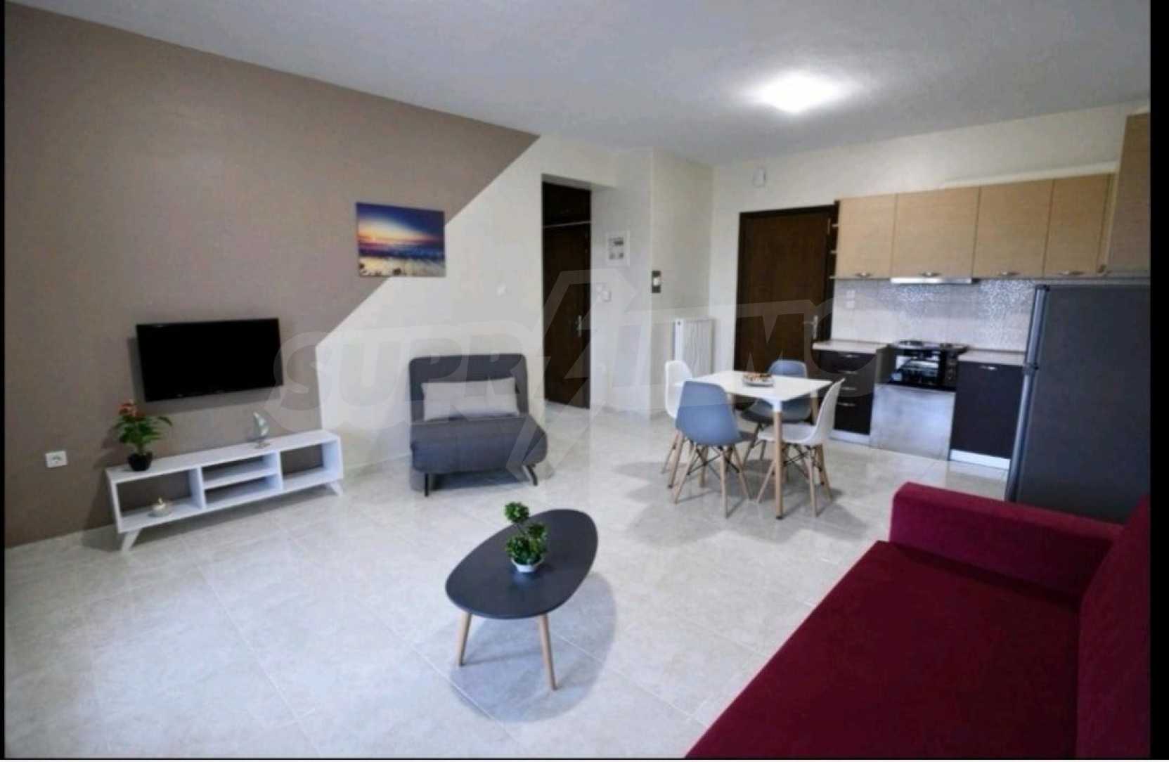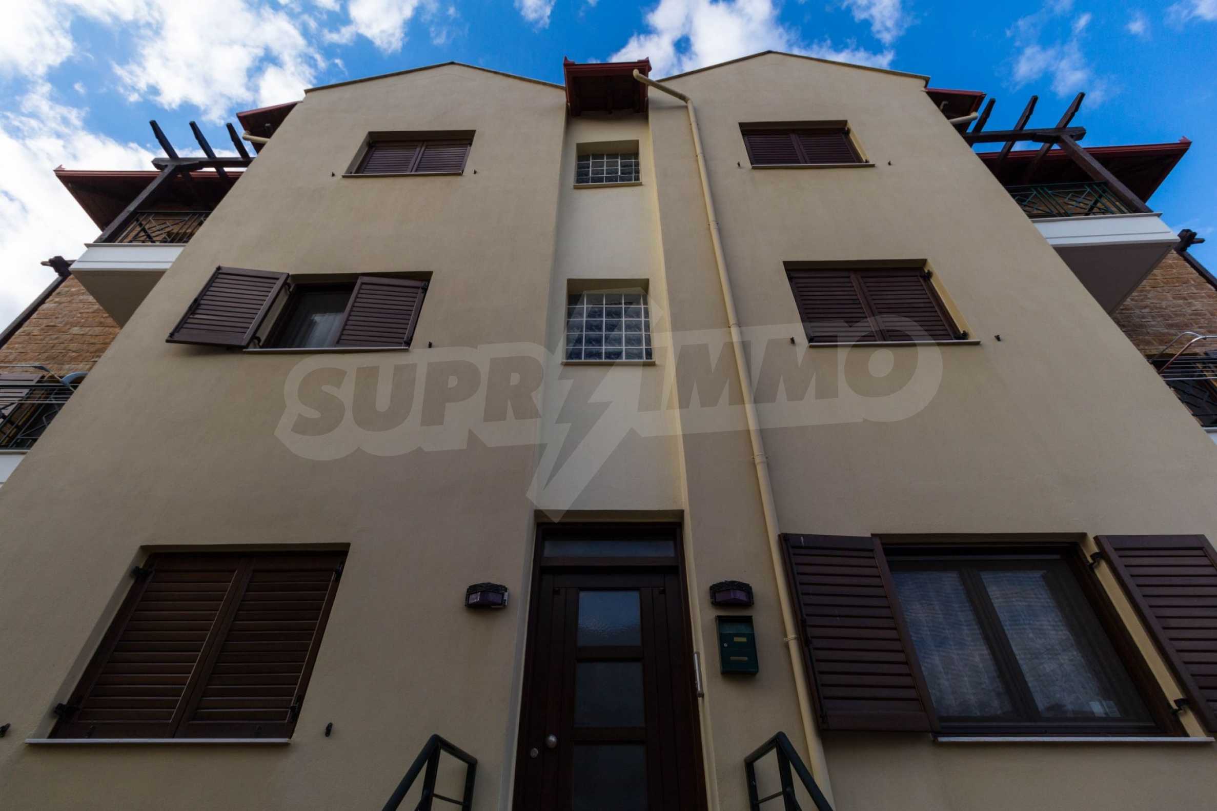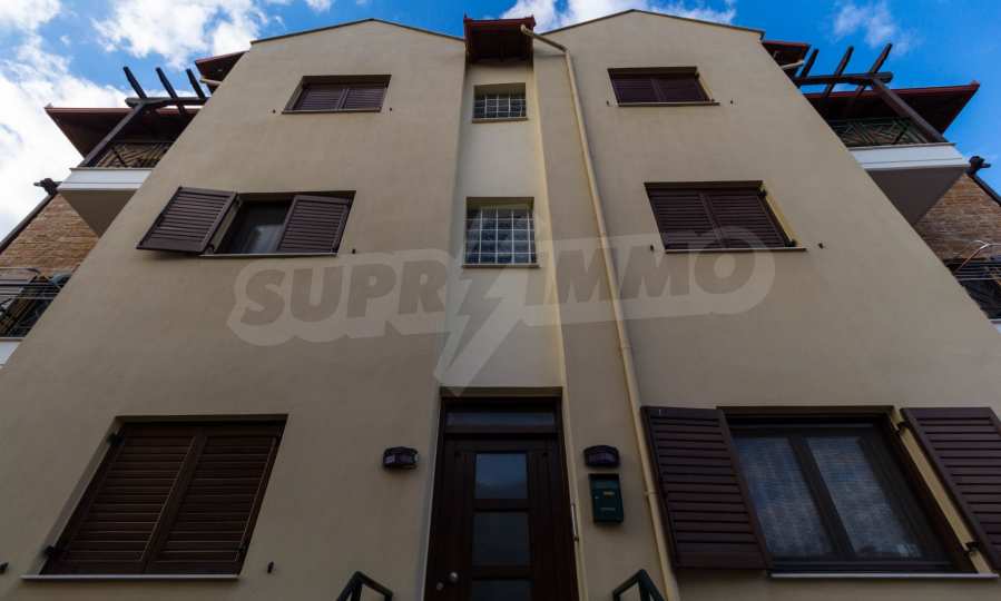 Предлагаем вашему вниманию новый частный дом в муниципалитете Афон на Халкидиках общей площадью 620 кв. метров в прекрасном районе в двух шагах от моря и центра поселка. Дом состоит из шести квартир, по две на каждом уровне, каждая квартира площадью 75 кв. метров и состоит из гостиной, двух спален и ванной комнаты. В подвале есть кладовая и котельня.