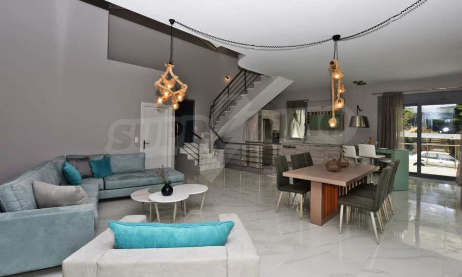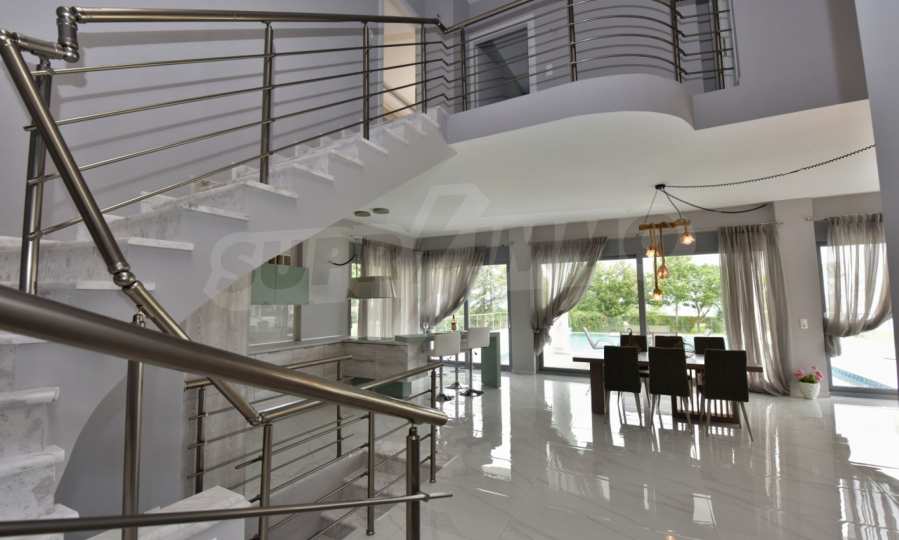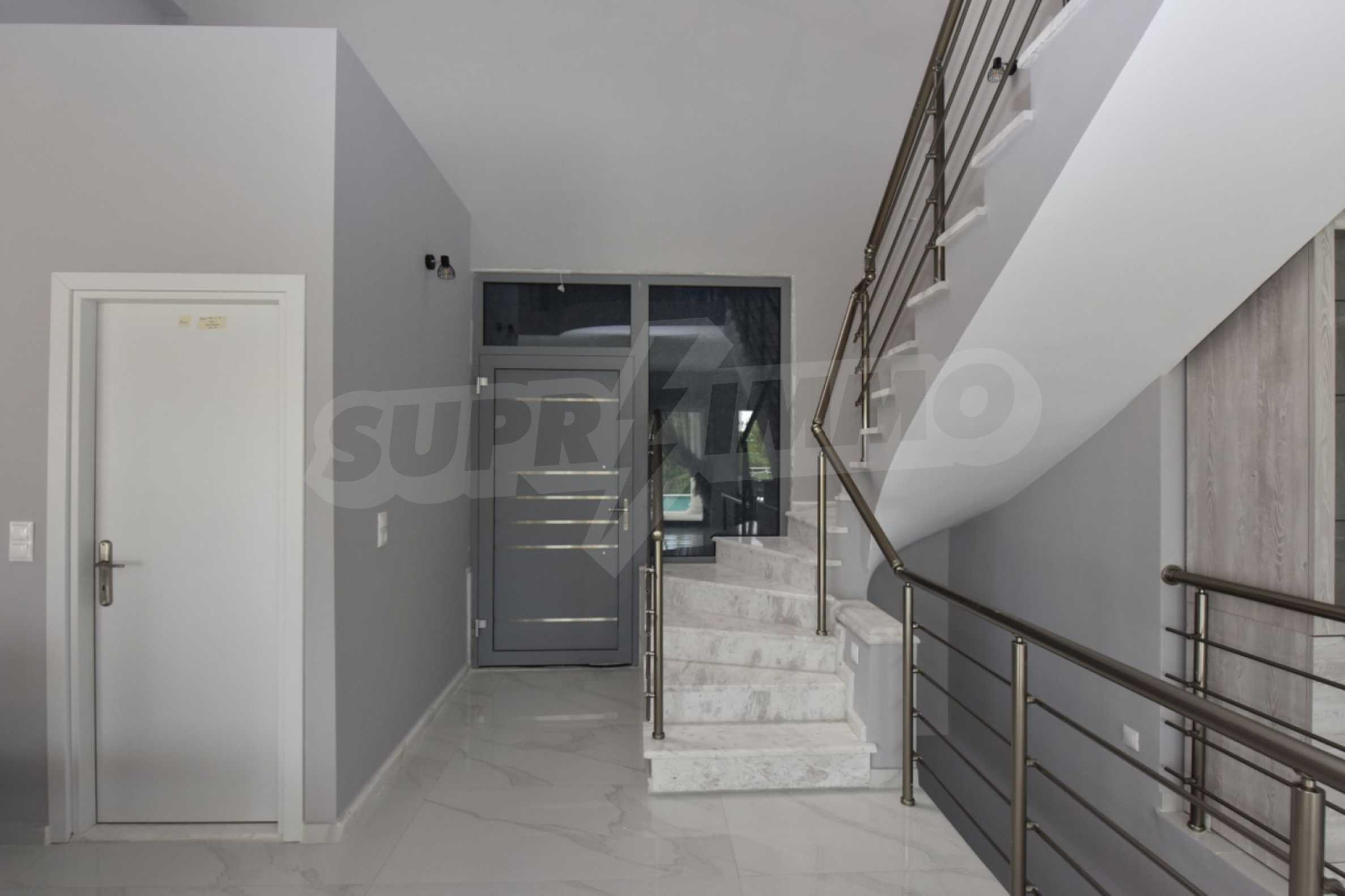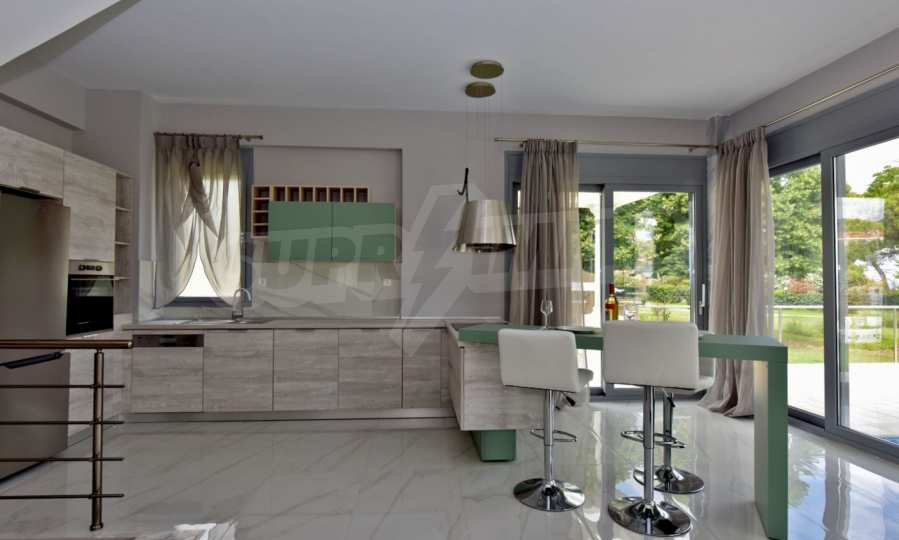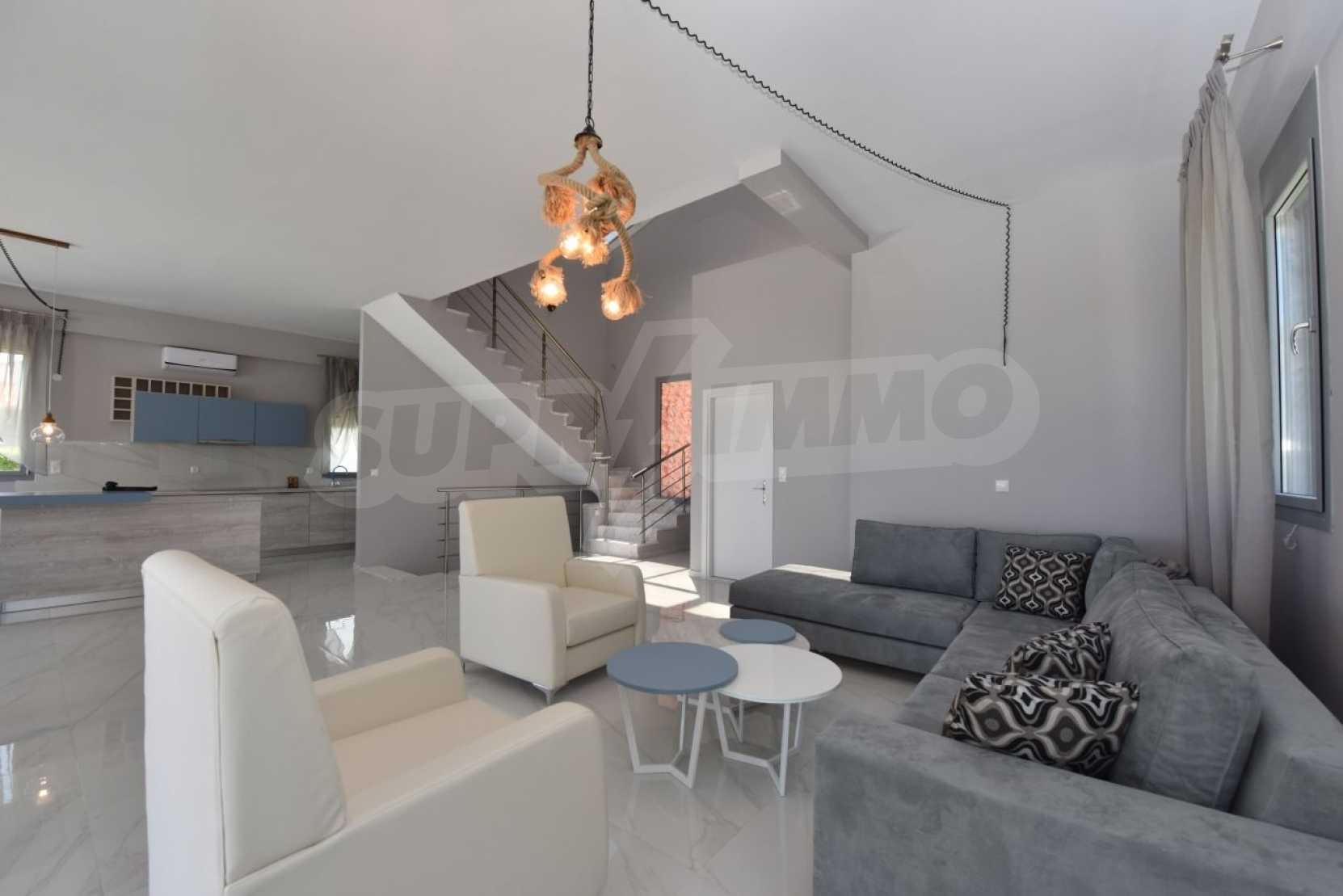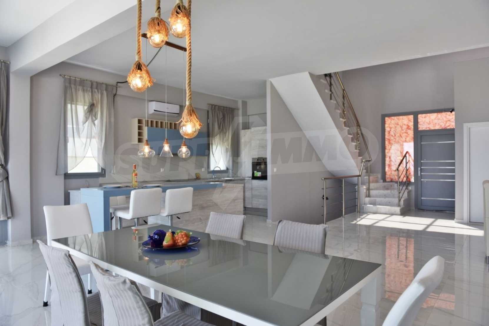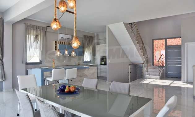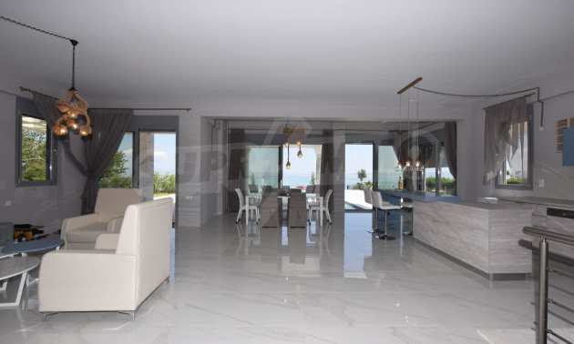 Вилла площадью 350 кв.м. Предлагаемая недвижимость построена в 2017. Камин и локальное отопление. Алюминиевые окна имеются в предлагаемой недвижимости. Недвижимость включает следующую мебель и оборудование: бойлер электрический. Из основных коммуникаций обеспечены центральная канализация. Ванная комната с туалетом, кладовая, обозначенная стоянка, подвал, терраса и заасфальтированная дорога имеются в наличии среди прочих перечисленных характеристик предлагаемого объекта, что обеспечит дополнительный комфорт для пользования. Виды на море открываются с недвижимости, раскрывая часть красот живописной Болгарии.