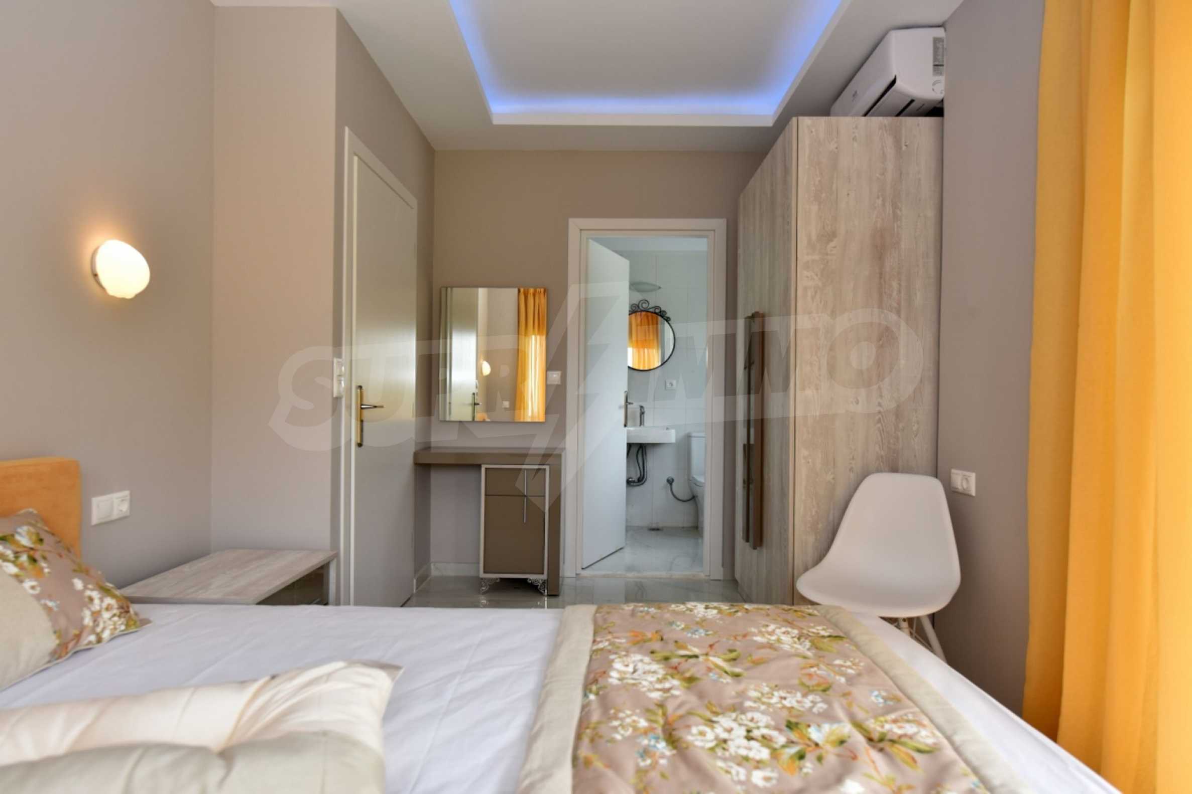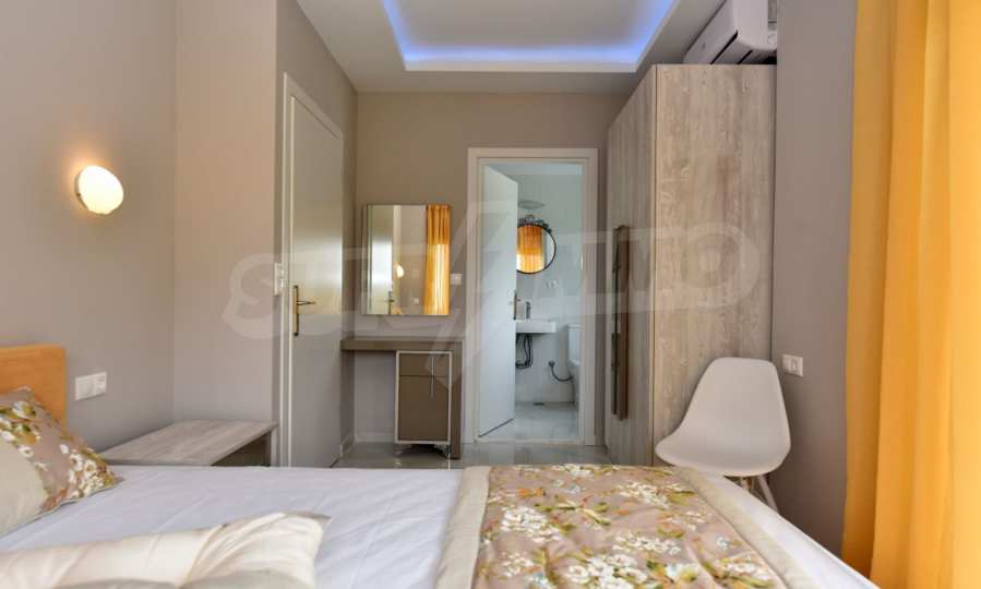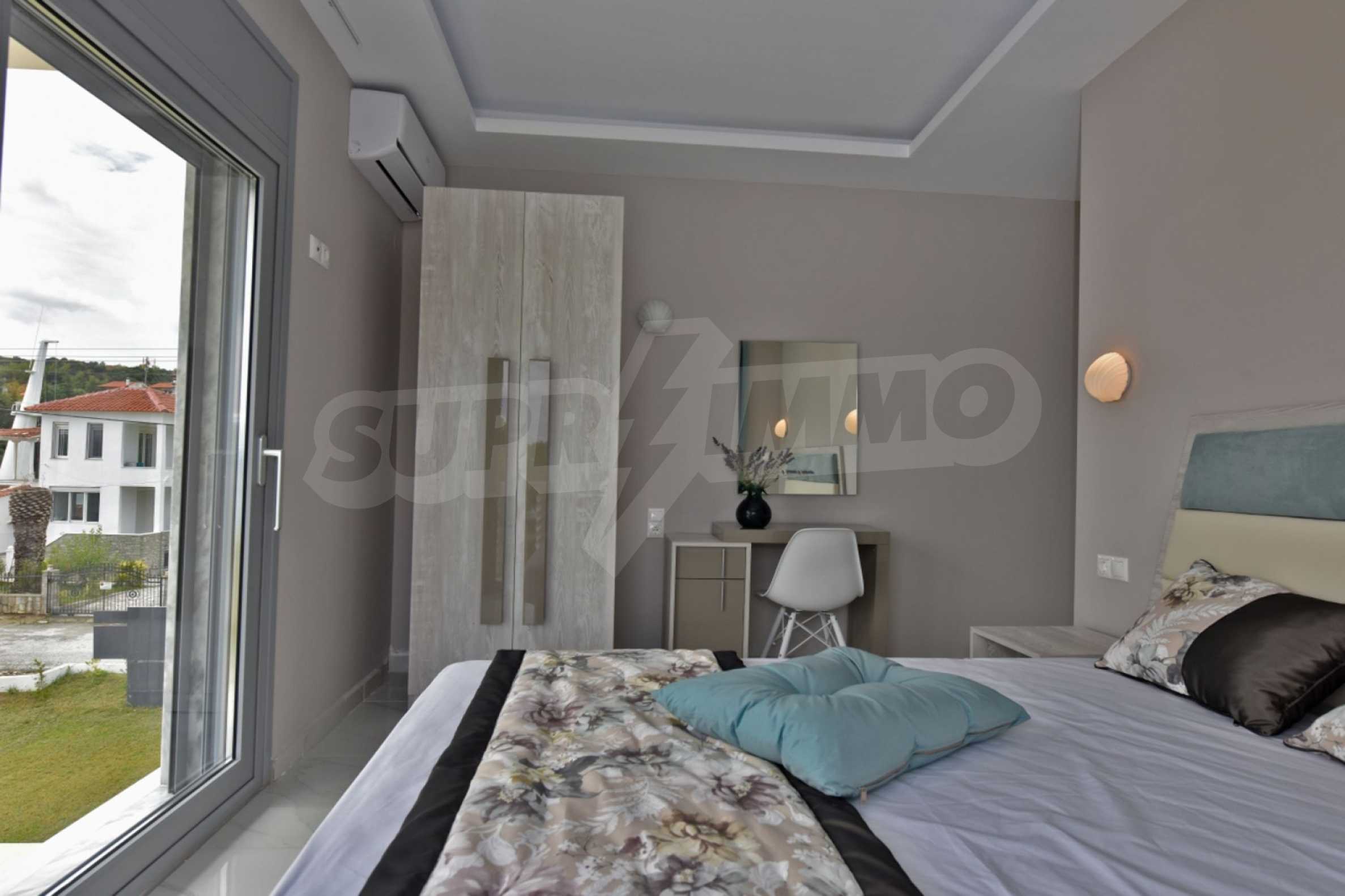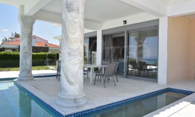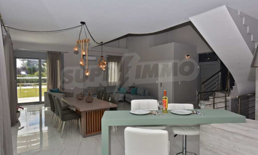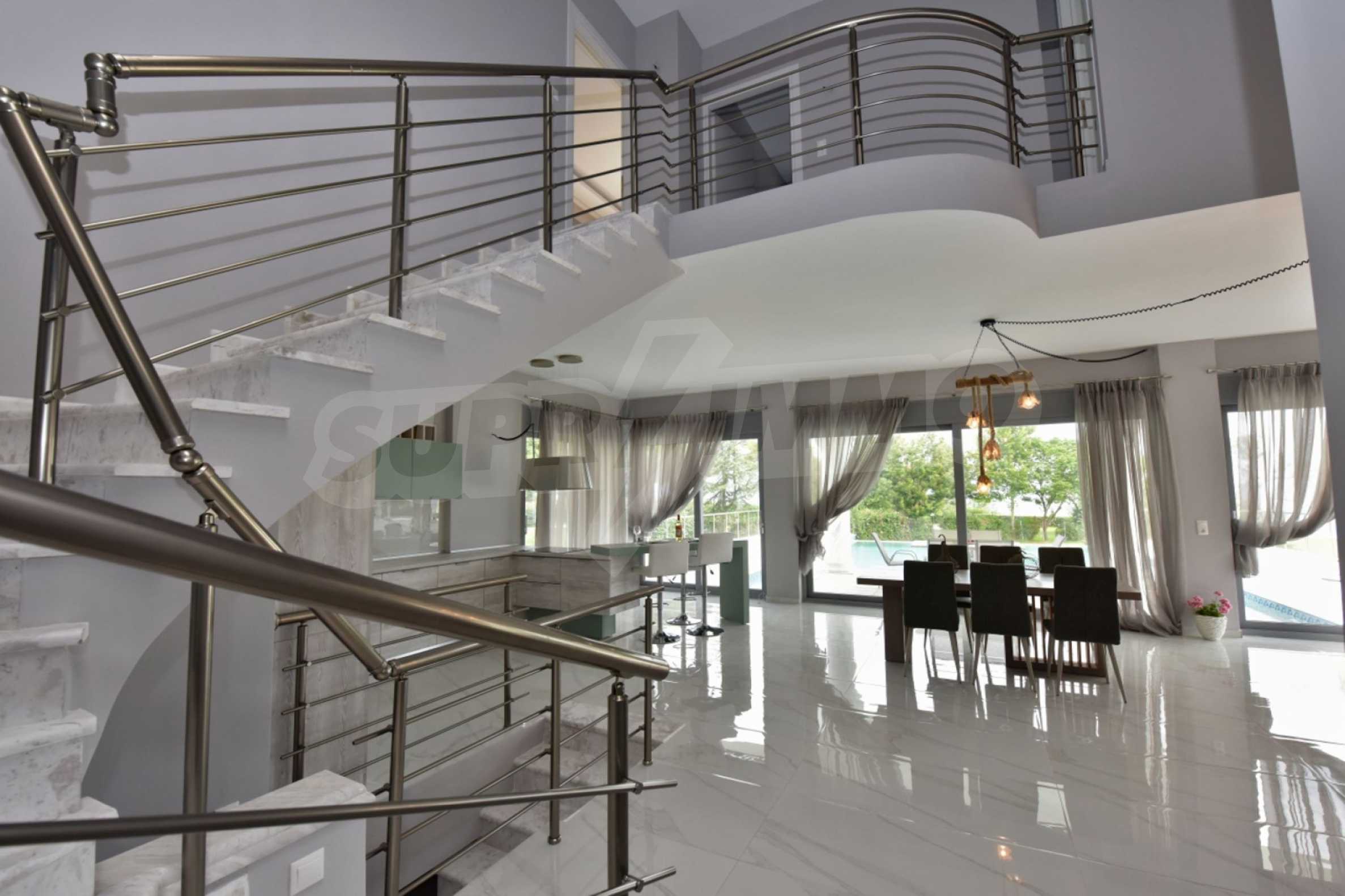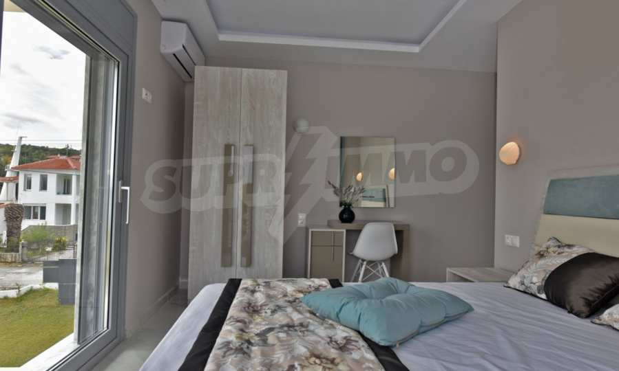 Вилла площадью 350 кв.м. Предлагаемая недвижимость построена в 2017. Камин и локальное отопление. Алюминиевые окна имеются в предлагаемой недвижимости. Недвижимость включает следующую мебель и оборудование: бойлер электрический. Из основных коммуникаций обеспечены центральная канализация. Ванная комната с туалетом, кладовая, обозначенная стоянка, подвал, терраса и заасфальтированная дорога имеются в наличии среди прочих перечисленных характеристик предлагаемого объекта, что обеспечит дополнительный комфорт для пользования. Виды на море открываются с недвижимости, раскрывая часть красот живописной Болгарии.