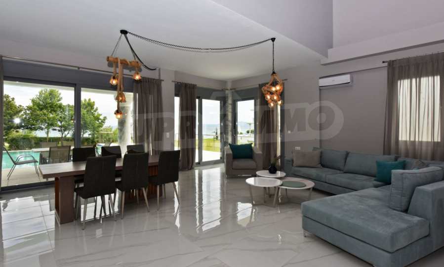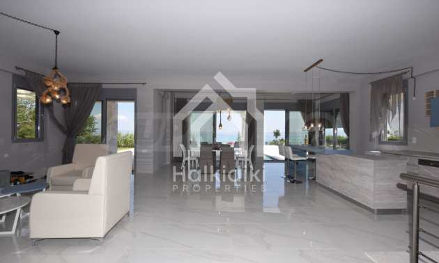 Продается вилла на Кассандре, п-ов Халкидики в очень удобном месте с прекрасным видом на море и сад в нескольких метрах от прекрасного пляжа. Дом площадью 350 кв.м на территории 2700 кв.м. Трехэтажный дом состоит из большой гостиной, кухни, трех спален, двух ванных комнат. На цокольном этаже есть помещения для стирки, джакузи и кладовая. На первом этаже находится гостиная, кухня и ванная комната, на втором этаже расположено три спальни и ванная комната. Прекрасный дом расположен на берегу моря, идеально подходит для семейного отдыха. Весь дом имеет пол с подогревом.