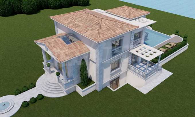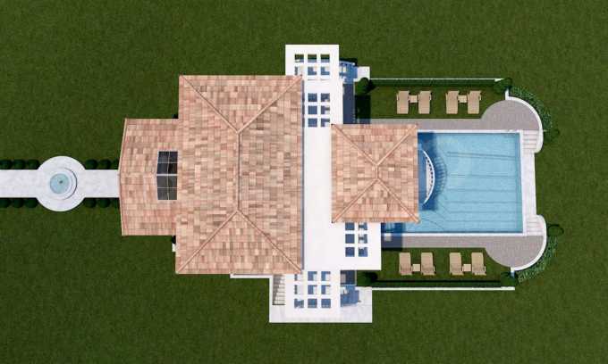 Вилла располагается на 3-х уровнях с общей застроенной площадью 250 кв.м. с окружающим ее частным двором площадью 1600 кв.м.