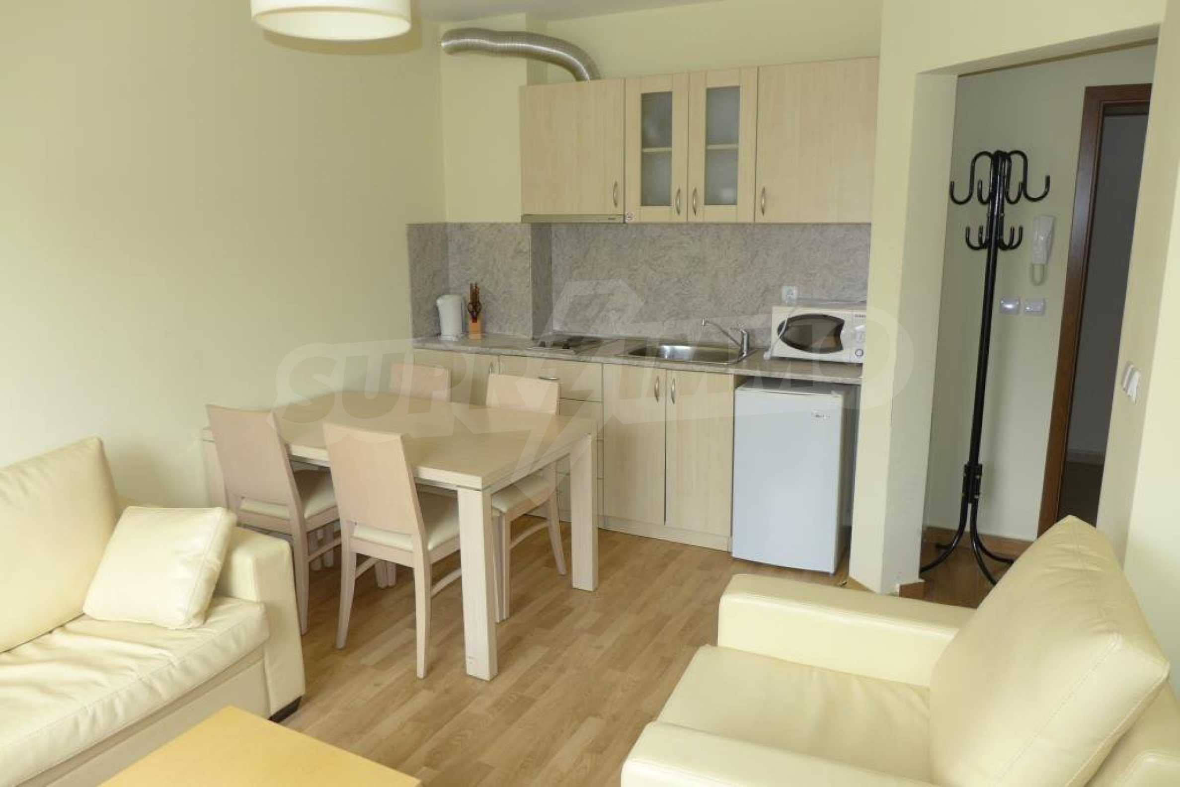 Двухкомнатная квартира площадью 55 кв. метров. Предлагаемая недвижимость построена в 2008. Отопление на электрических радиаторах, отопление на электричестве и отопление на электроконвекторах. Кирпичные стены, ламинированный пол, межкомнатные двери, окна пвх, стены покрашенные латексной краской и терракотовый пол имеются в предлагаемой недвижимости. Недвижимость включает следующую меблировку и оснащение: встроенная кухня, вытяжка, меблировку, оборудованная ванная комната, телевизор и холодильник. Из основных коммуникаций обеспечены электричество, центральное водоснабжение и центральная канализация. Стоянка, терраса, лифт, заасфальтированная дорога, интернет, интернет Wi-Fi и кабельное телевидение имеются в наличии среди прочих упомянутых отличительных указанных упомянутых указанных упомянутых перечисленных упомянутых отличительных перечисленных указанных указанных отличительных отличительных указанных перечисленных упомянутых характеристик предлагаемого объекта, что обеспечит дополнительный комфорт для пользования. Виды на внутренний двор открываются с недвижимости, раскрывая часть красот живописной Болгарии.