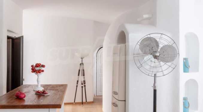 Вилла площадью 150 кв. метров. Предлагаемая недвижимость построена в 2014. Отопление кондиционером. Двойной стеклопакет, деревянные оконные рамы, межкомнатные двери, паркетный пол, стены покрашенные латексной краской и терракотовый пол имеются в предлагаемой недвижимости. Недвижимость включает следующую меблировку и оснащение: встроенная кухня, вытяжка, духовка, душевая, кондиционер, меблировку, оборудованная ванная комната, посудомоечная машина, стиральная машина, телевизор и холодильник. Из основных коммуникаций обеспечены электричество и вода. Ванная комната с туалетом, веранда, терраса, туалет, заасфальтированная дорога, интернет, интернет Wi-Fi, кабельное телевидение и система охранной сигнализации имеются в наличии среди прочих перечисленных отличительных характеристик предлагаемого объекта, что обеспечит дополнительные удобства для пользования. Виды на бассейн, виды на внутренний двор, виды на залив, виды на море и виды на пляж открываются с недвижимости, раскрывая часть красот живописной Болгарии.