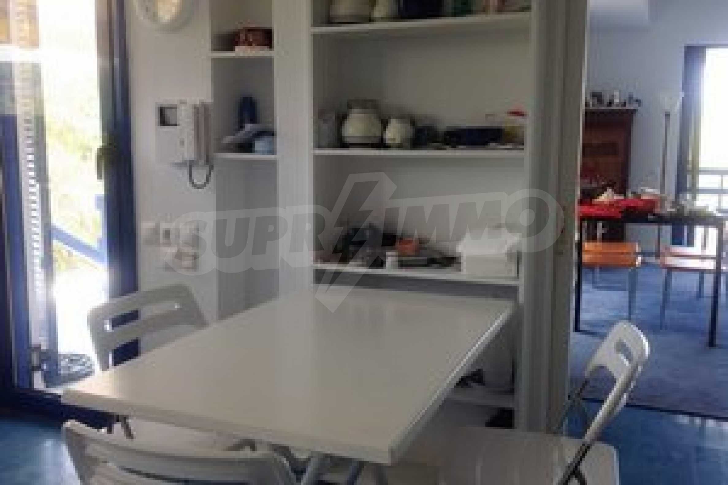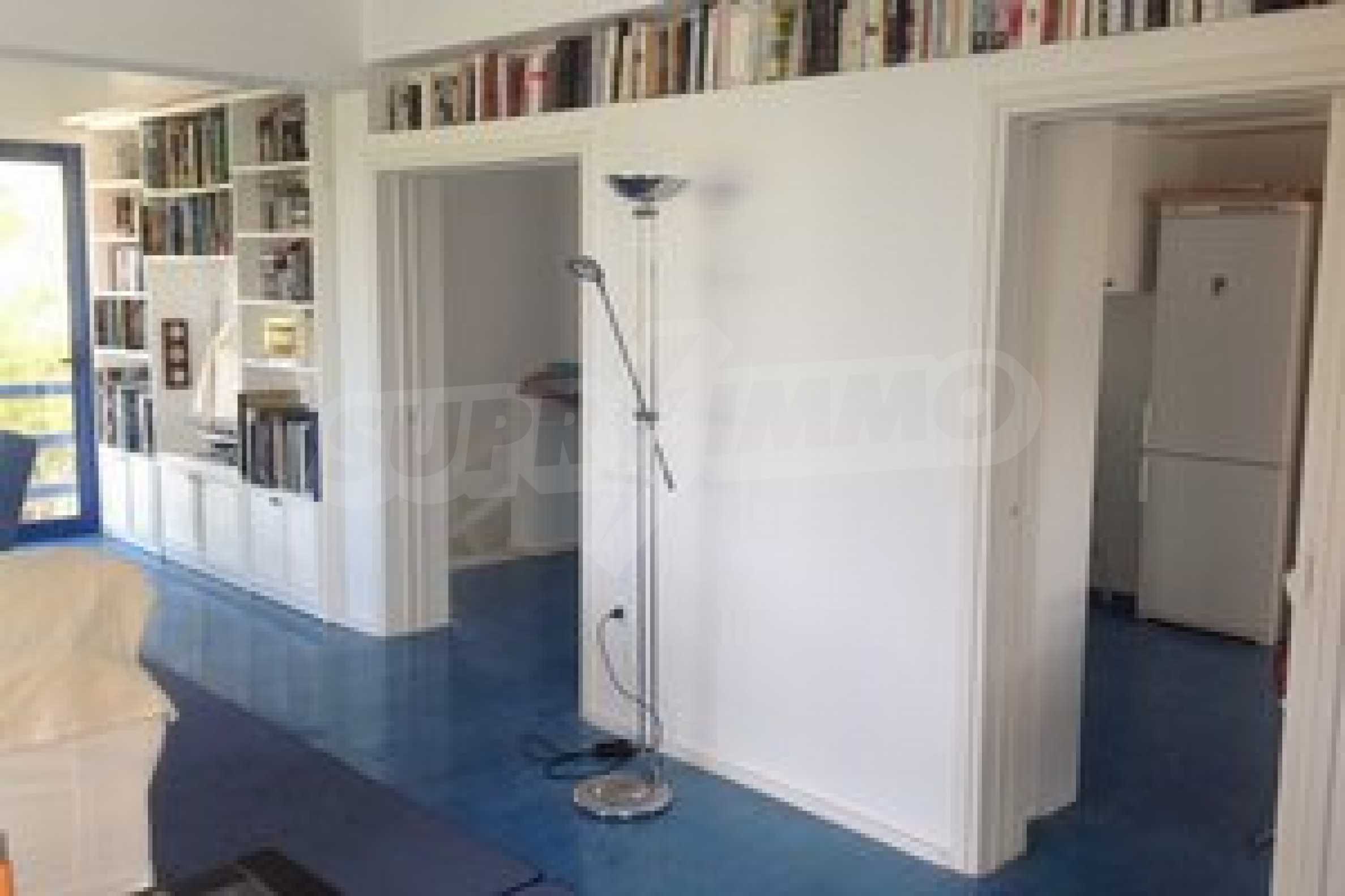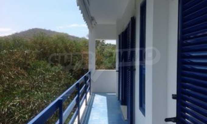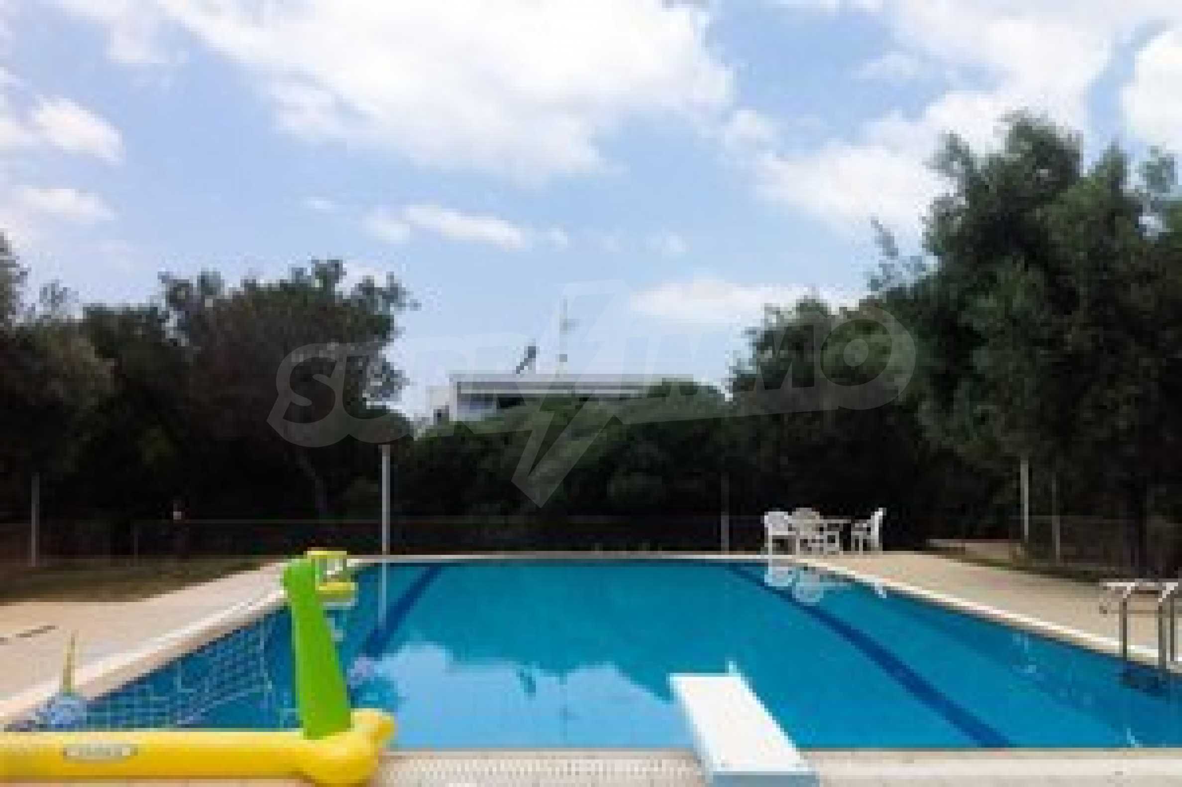 Дом площадью 140 кв. метров. Предлагаемая недвижимость построена в 1961. Камин и локальное отопление. Алюминиевые окна, межкомнатные двери, покрашенные стены и терракотовый пол имеются в предлагаемой недвижимости. Недвижимость включает следующую меблировку и оснащение: бойлер электрический, встроенная кухня, вытяжка, духовка, душевая, меблировку, оборудованная ванная комната и стиральная машина. Из основных коммуникаций обеспечены электричество и вода. Балконы, ванная комната с туалетом, веранда, внутренний туалет, внутренняя ванная, гараж, гардеробная, обозначенная стоянка, парковка вне дороги и туалет имеются в наличии среди прочих перечисленных указанных характеристик предлагаемого объекта, что обеспечит дополнительный комфорт для пользования. Виды на бассейн, виды на море и виды на пляж открываются с недвижимости, раскрывая часть красот живописной Болгарии.